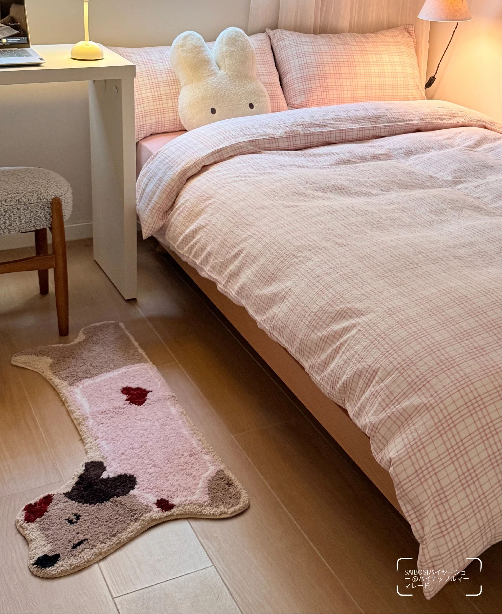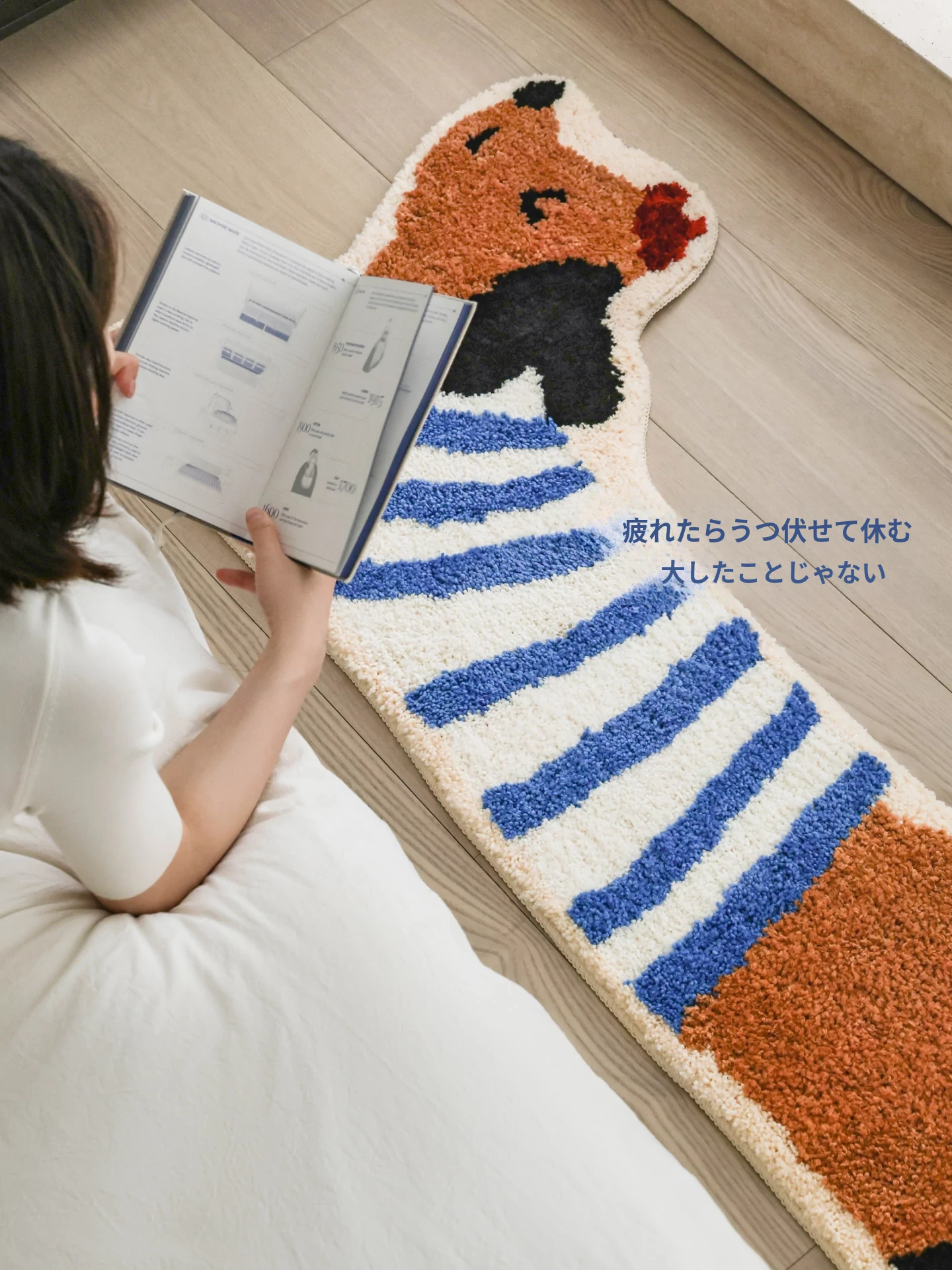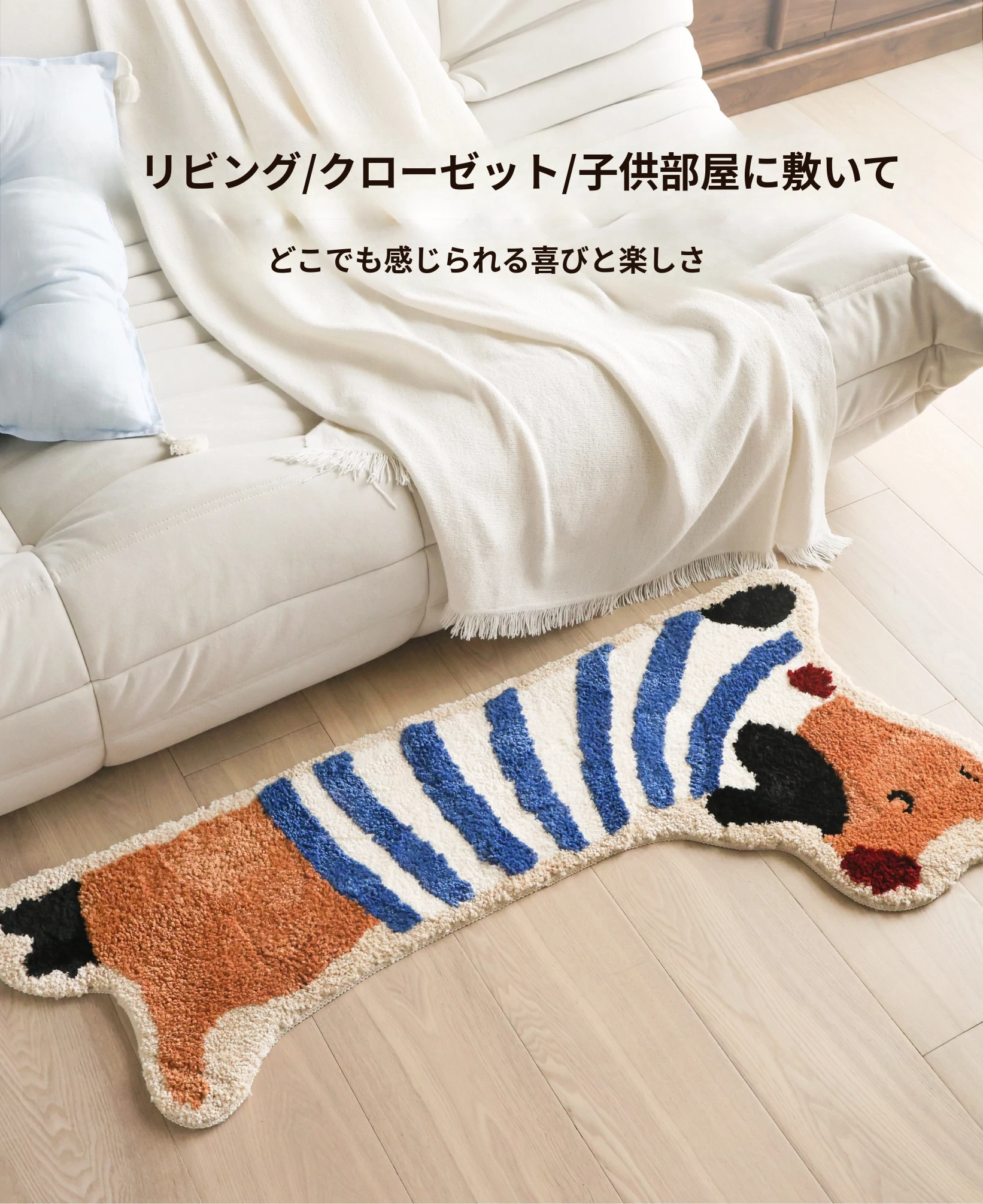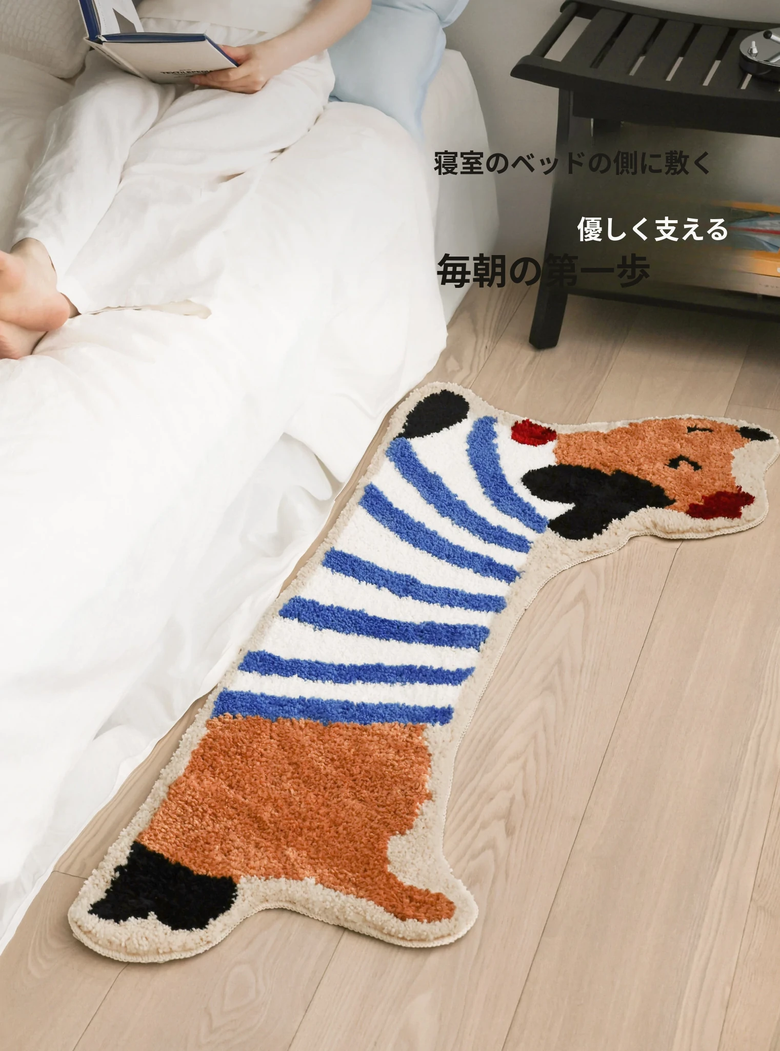 可愛いサイボス小犬デザインの異形ベッドサイドマット - 子供部屋にぴったりなドパミン効果のあるふわふわラグ!リビングや寝室の素敵なアクセントにも最適。