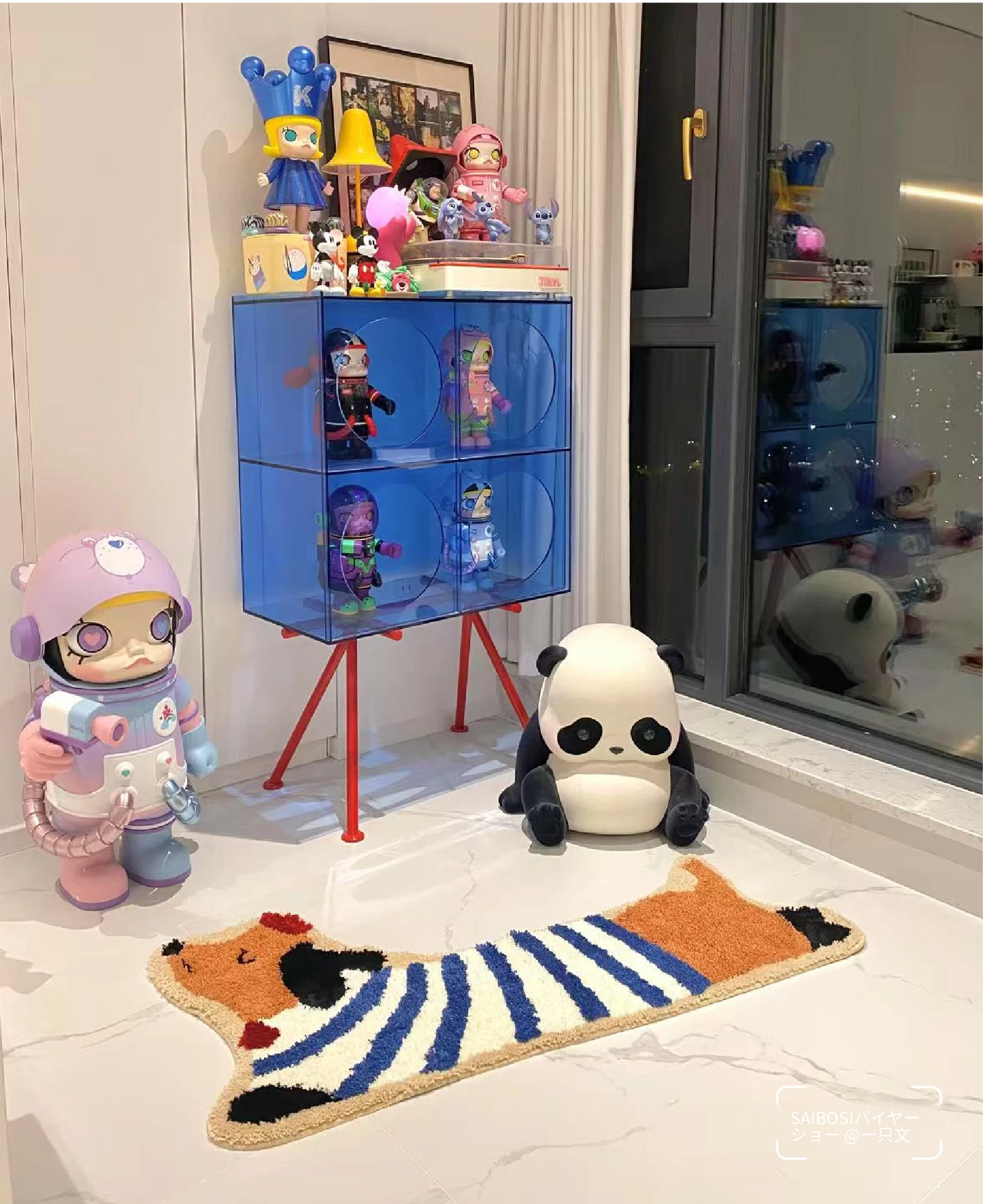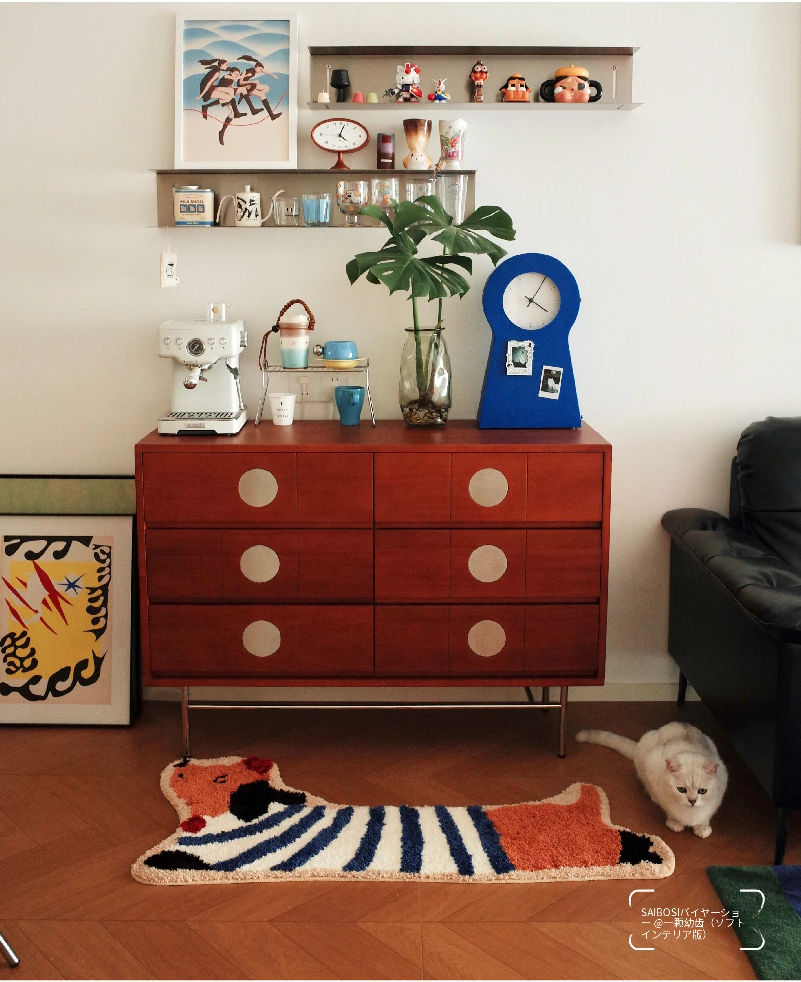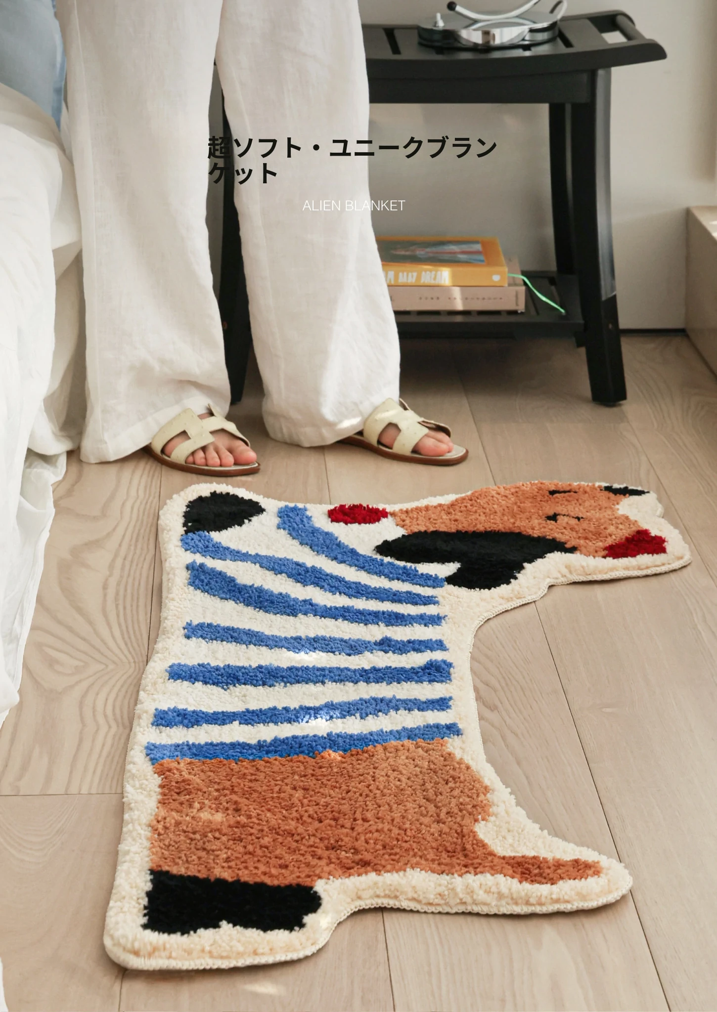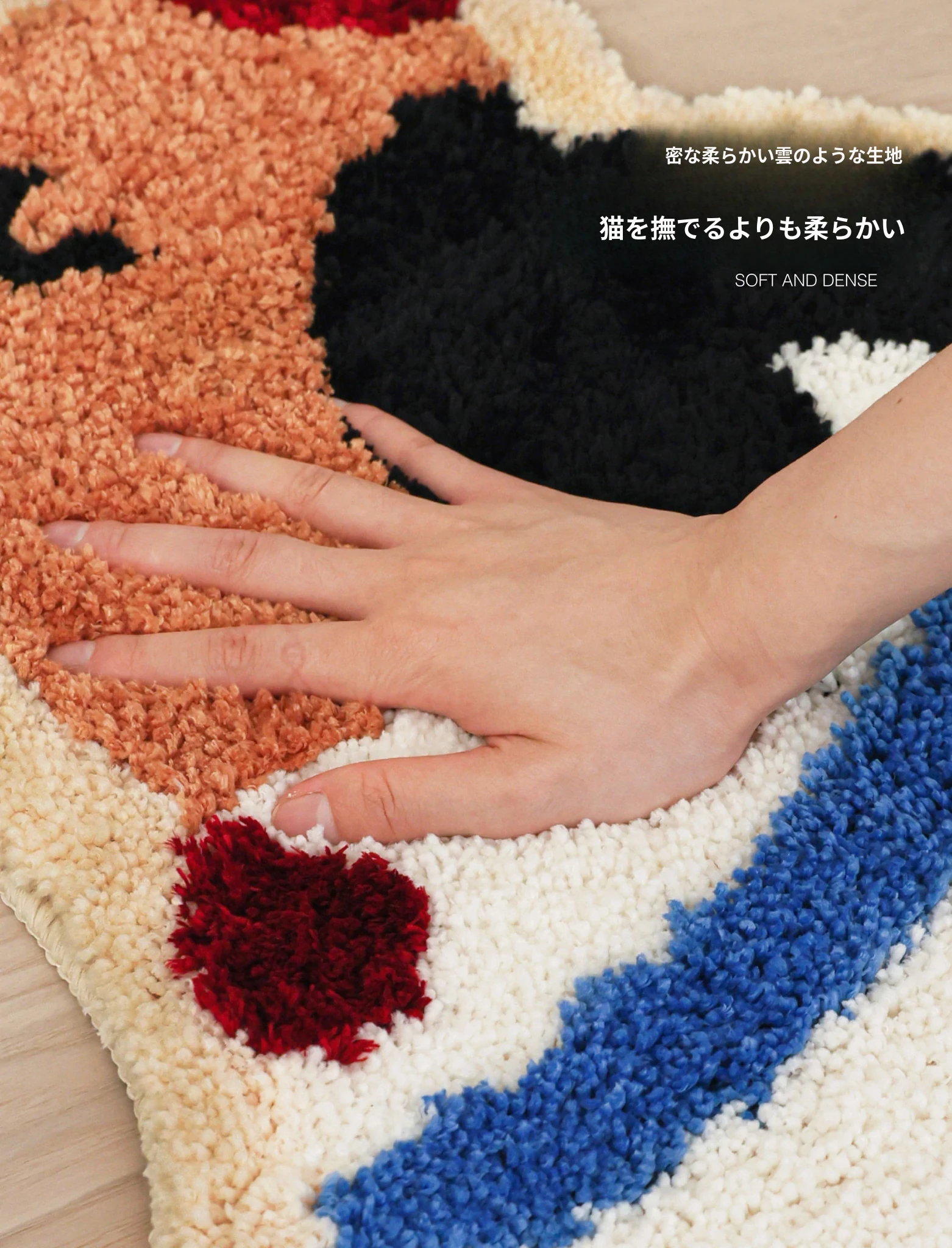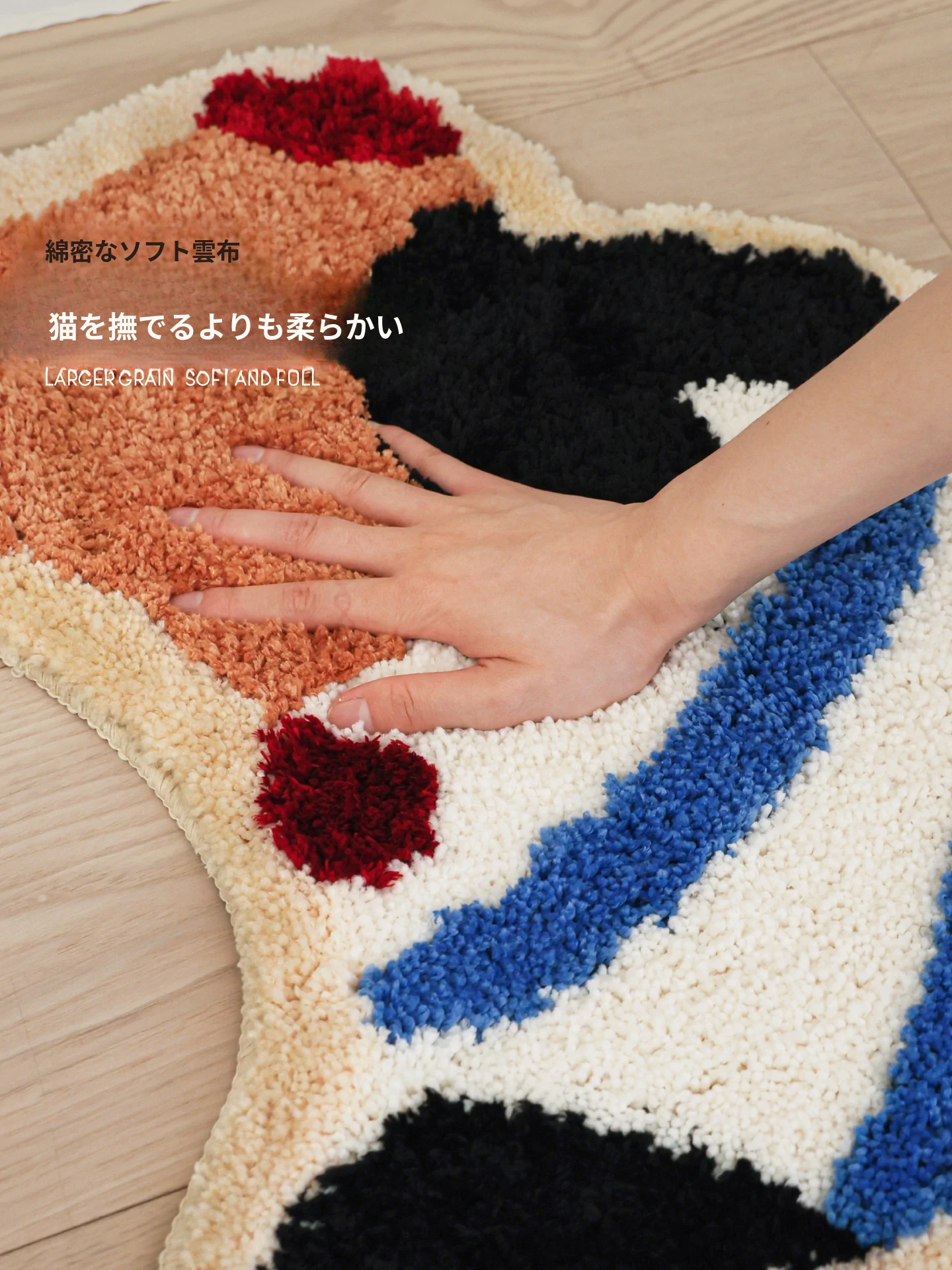 可愛いサイボス小犬デザインの異形ベッドサイドマット - 子供部屋にぴったりなドパミン効果のあるふわふわラグ!リビングや寝室の素敵なアクセントにも最適。