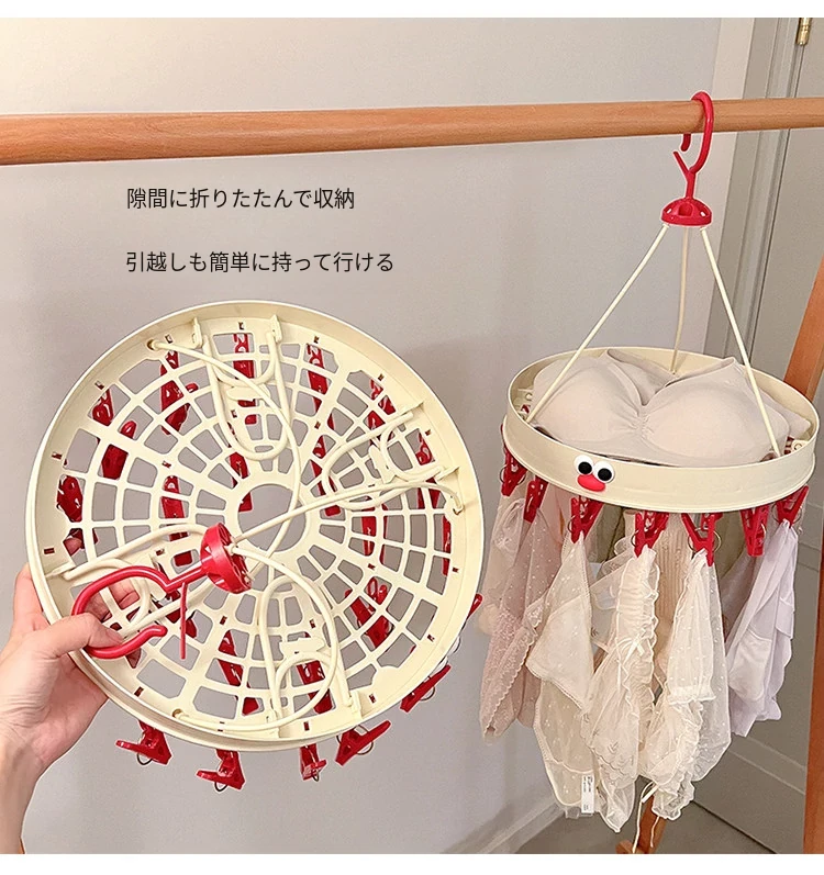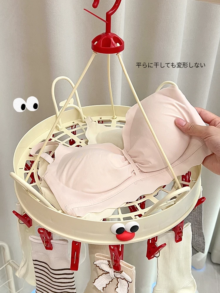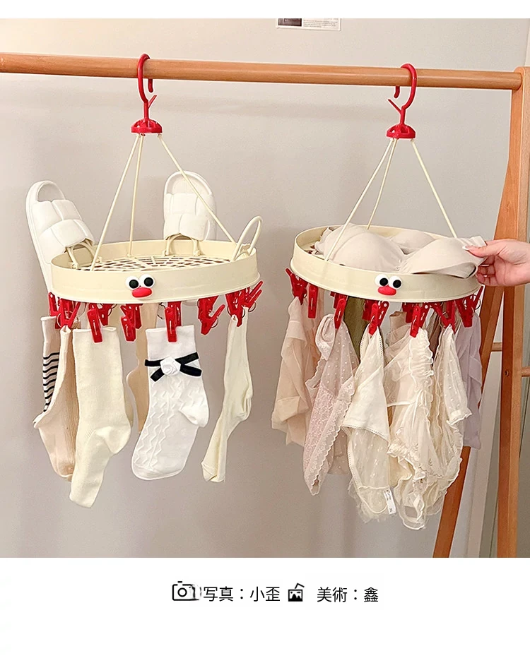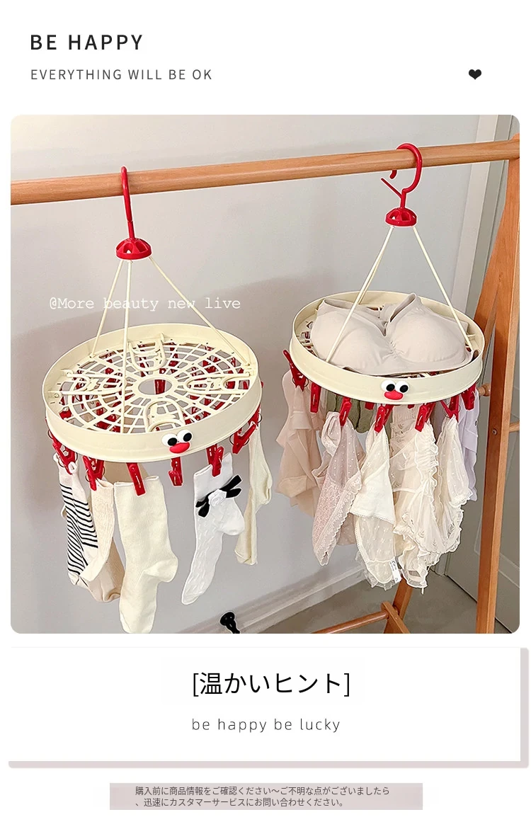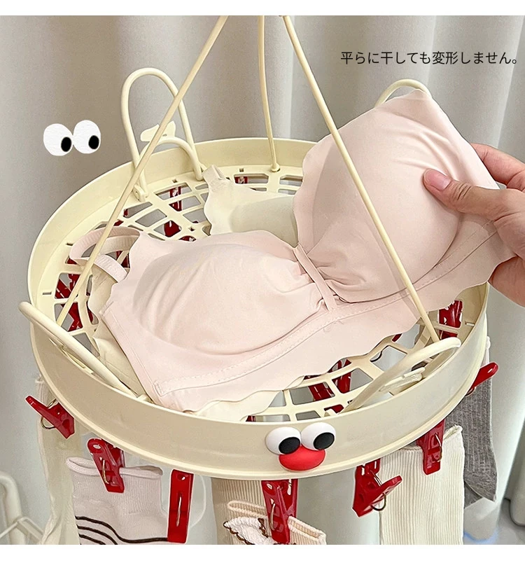 学生必見!多機能クリップ付き靴下干しハンガー - 下着や靴下をしっかりつかんで、スペースを節約しながら効率的に乾燥!寮生活を快適にする、おしゃれで実用的なアイテムです。