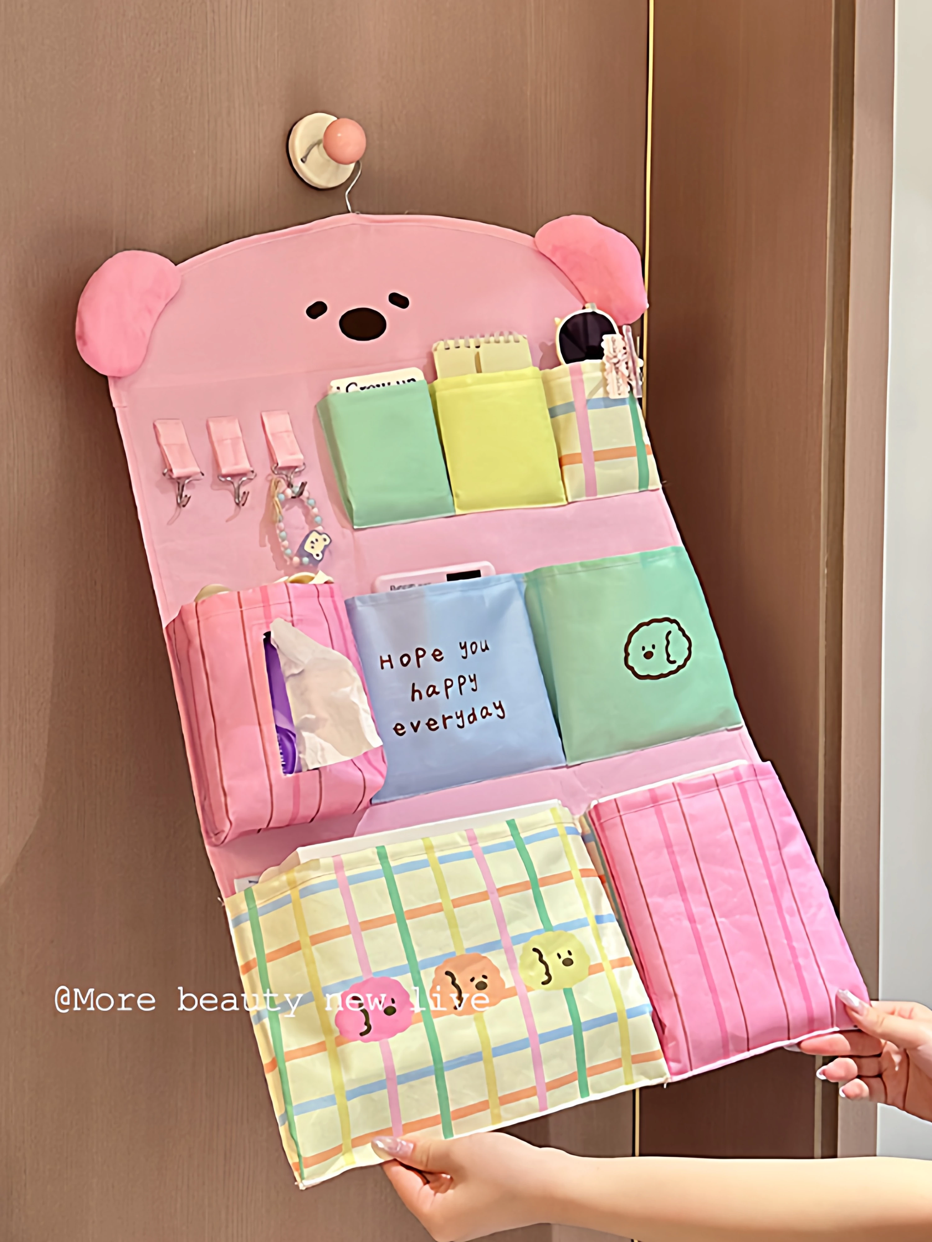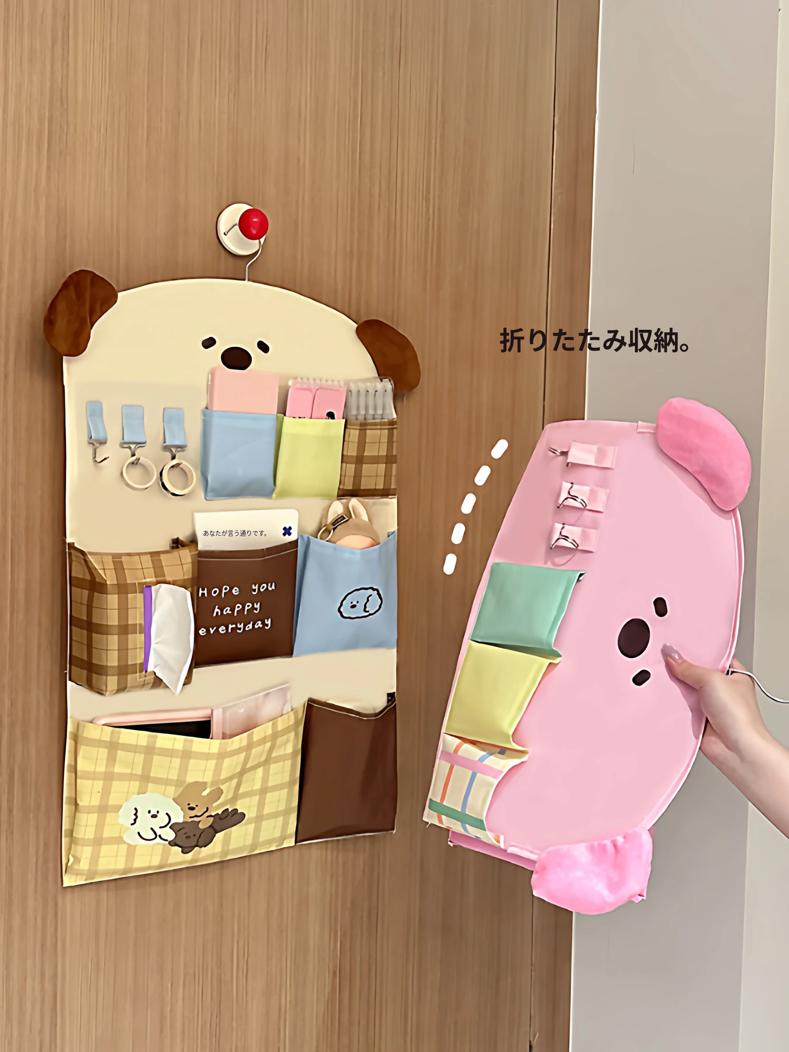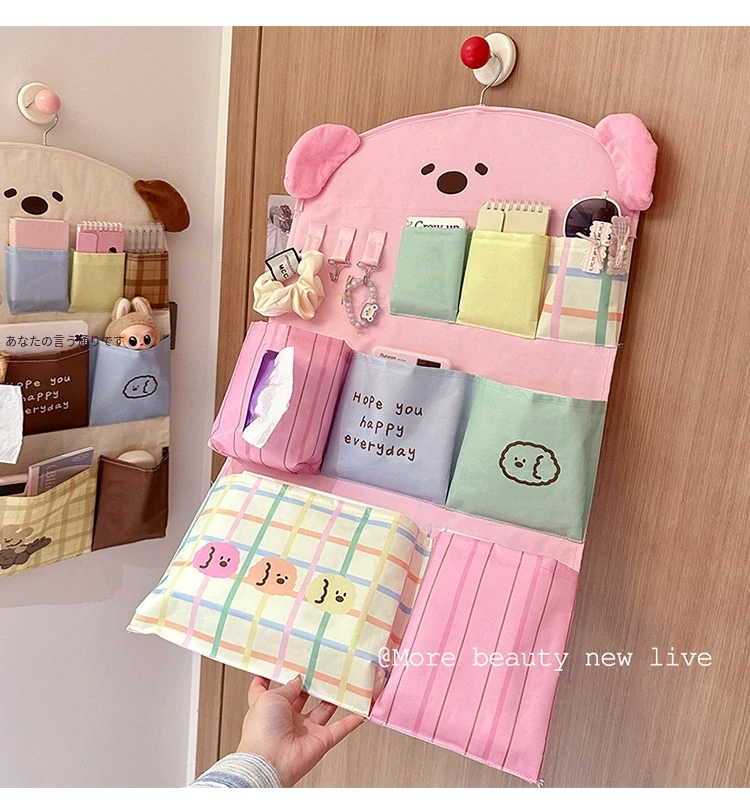 寮のベッド上に最適!便利な掛け式収納ポケット - 壁に掛けられるファブリックバッグでスマホや小物をスッキリ整理!お部屋をおしゃれに演出し、スペースを有効活用!