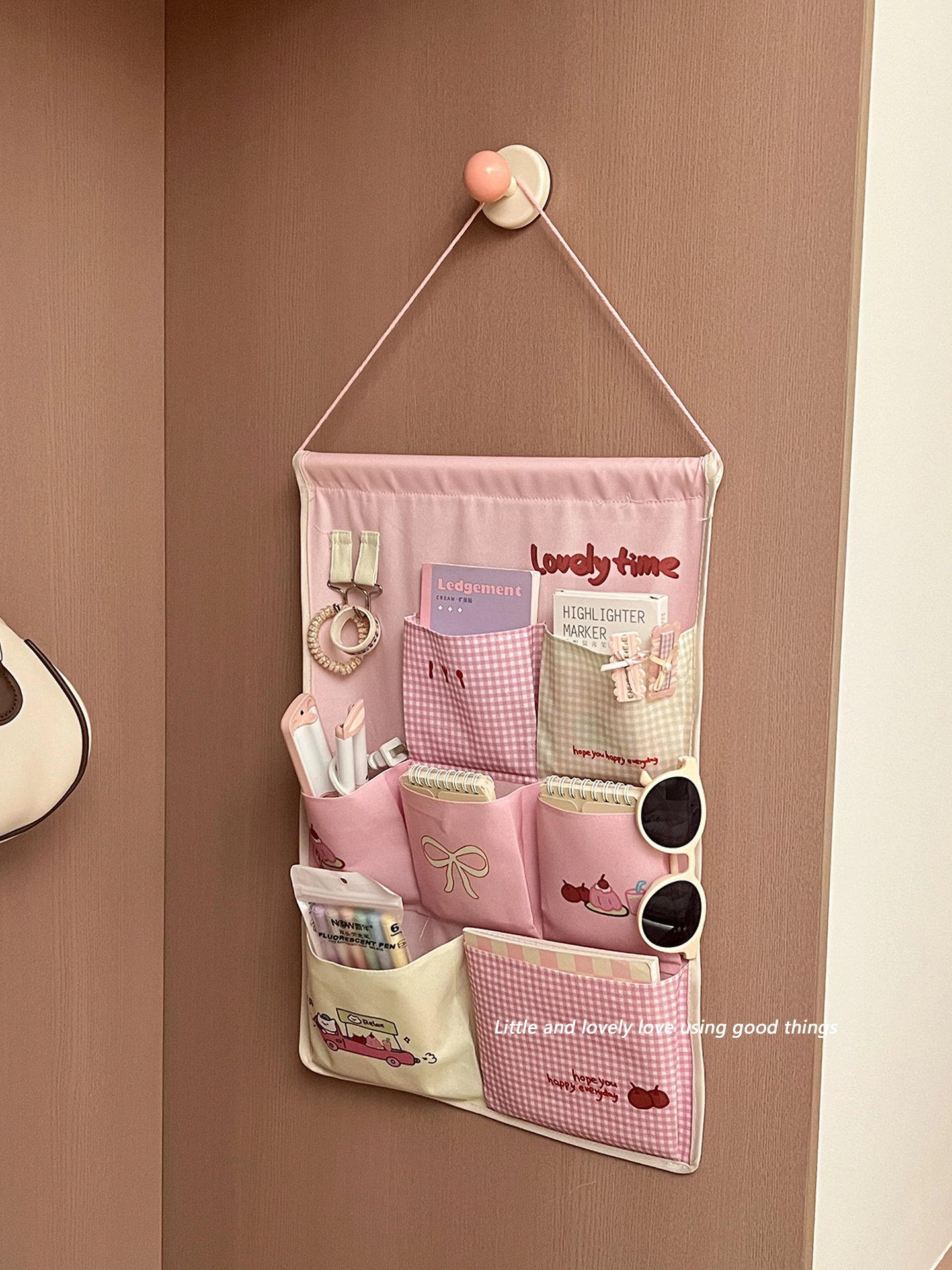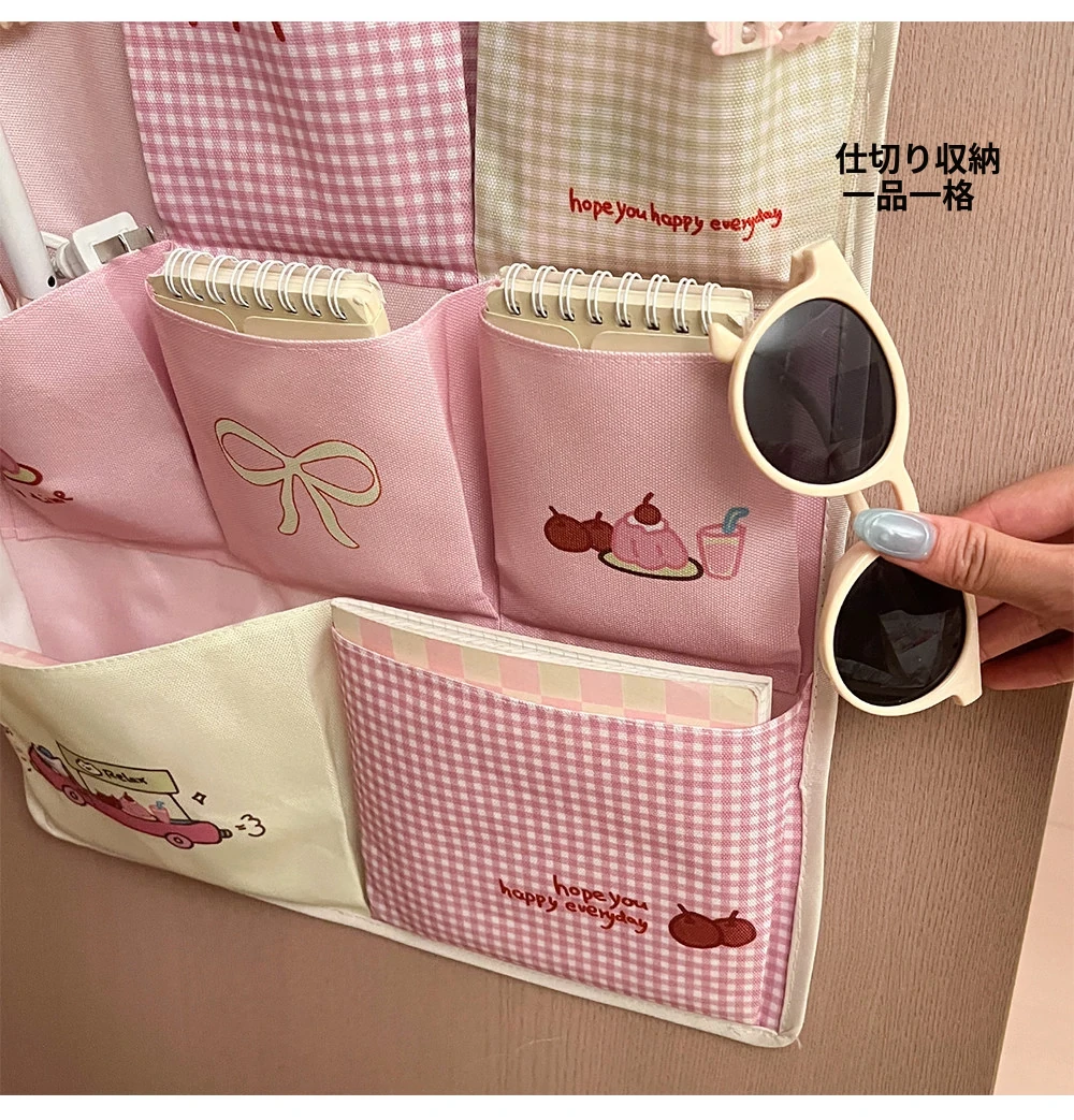 宿舎に最適!ベッドサイド収納ポケット - 上段ベッド用カーテンと連携した便利な携帯電話・小物収納バッグ、ドア裏や壁に掛けられてスペースを有効活用!