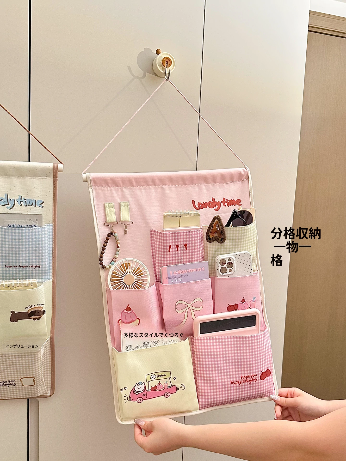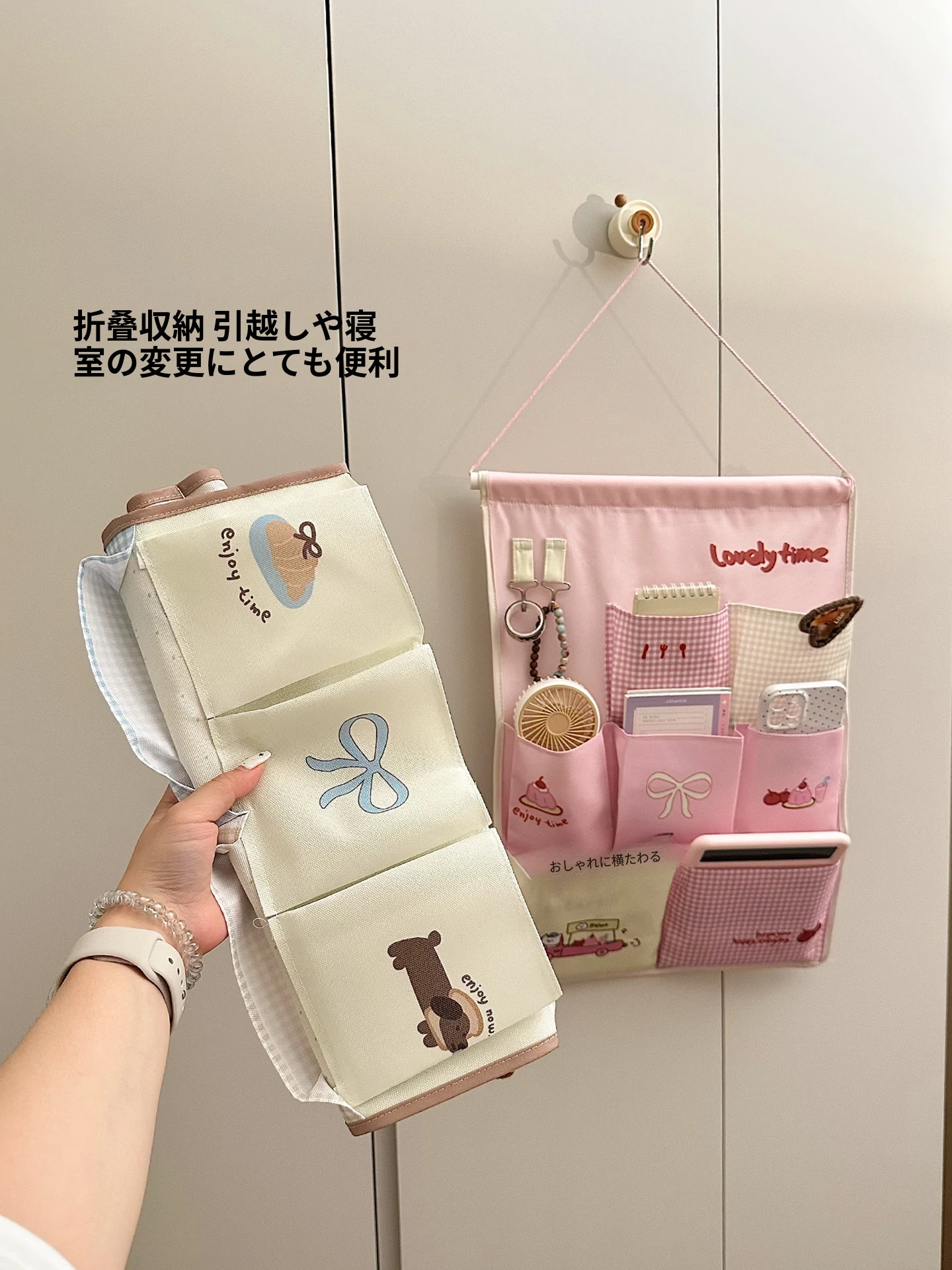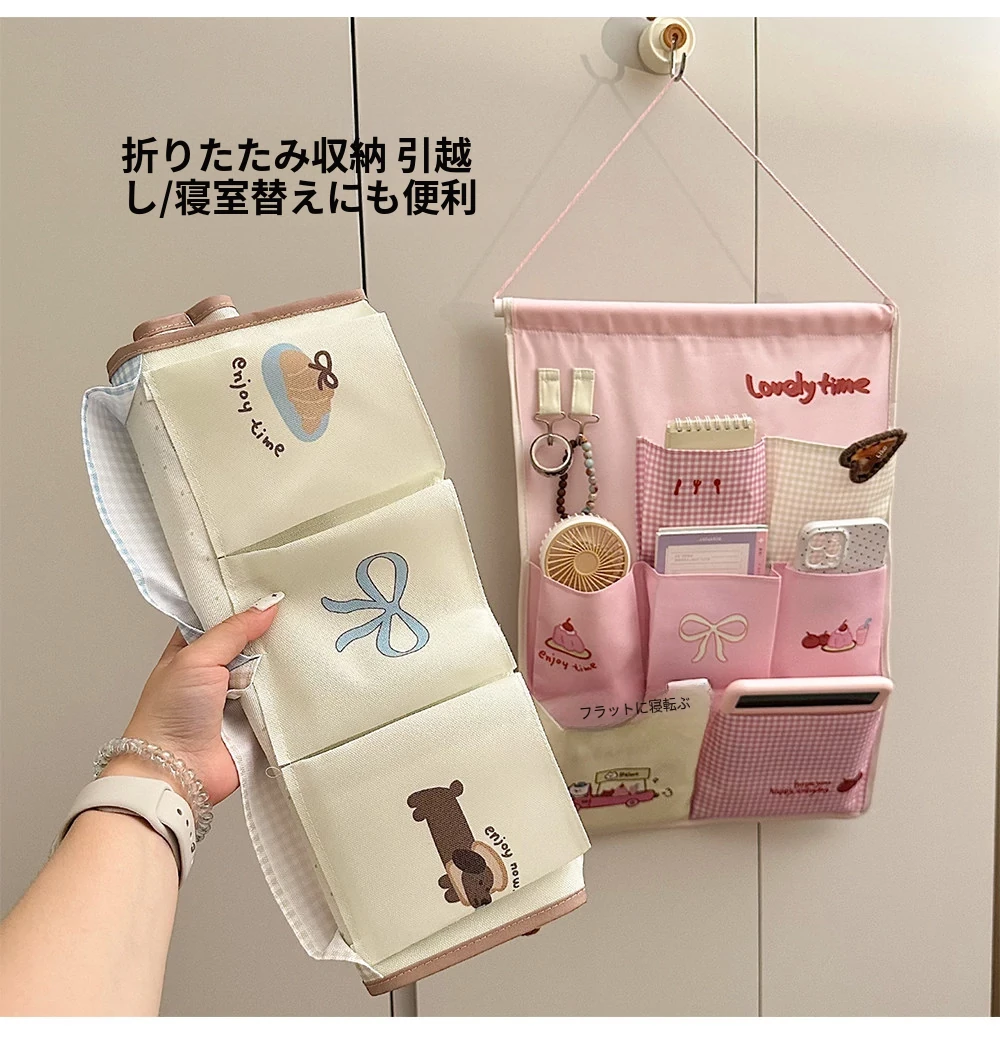 おしゃれで便利な壁掛け収納バッグ!寝室や寮に最適なスマホや小物の整理に最適。ドアの裏や壁に簡単に取り付けられて、スペースを有効活用!お部屋をすっきり整えましょう。