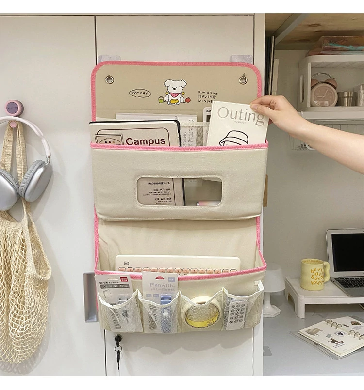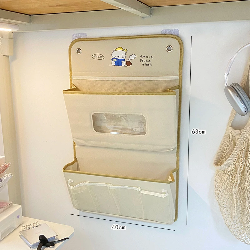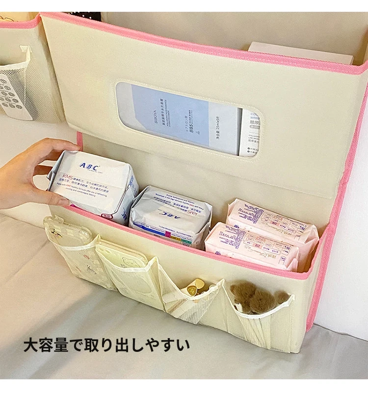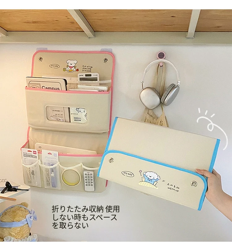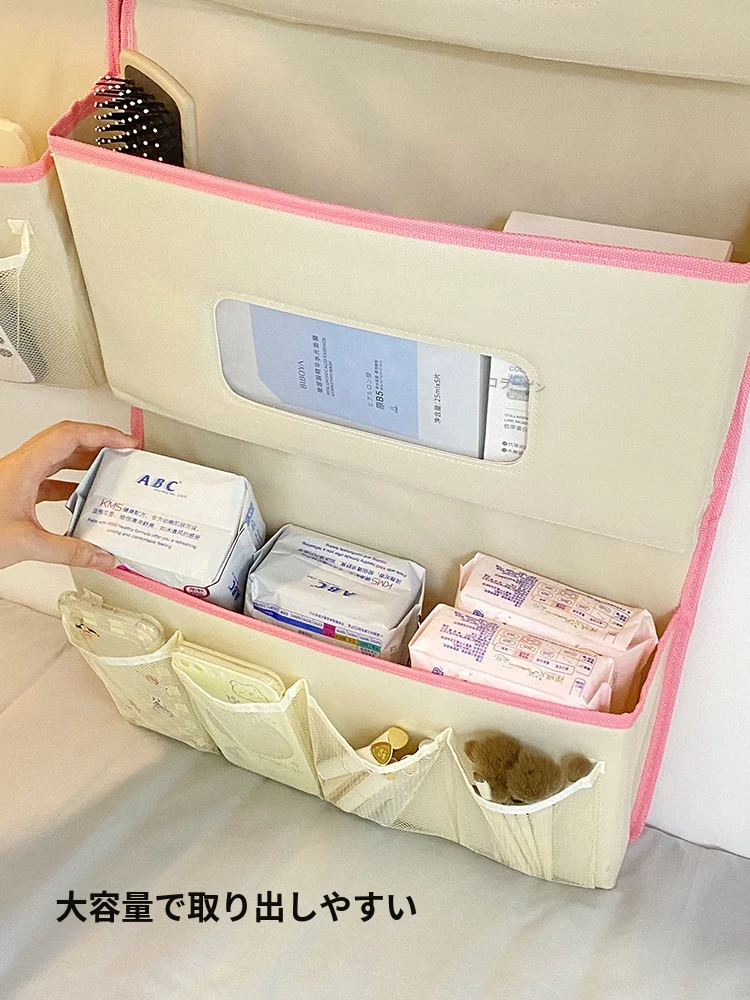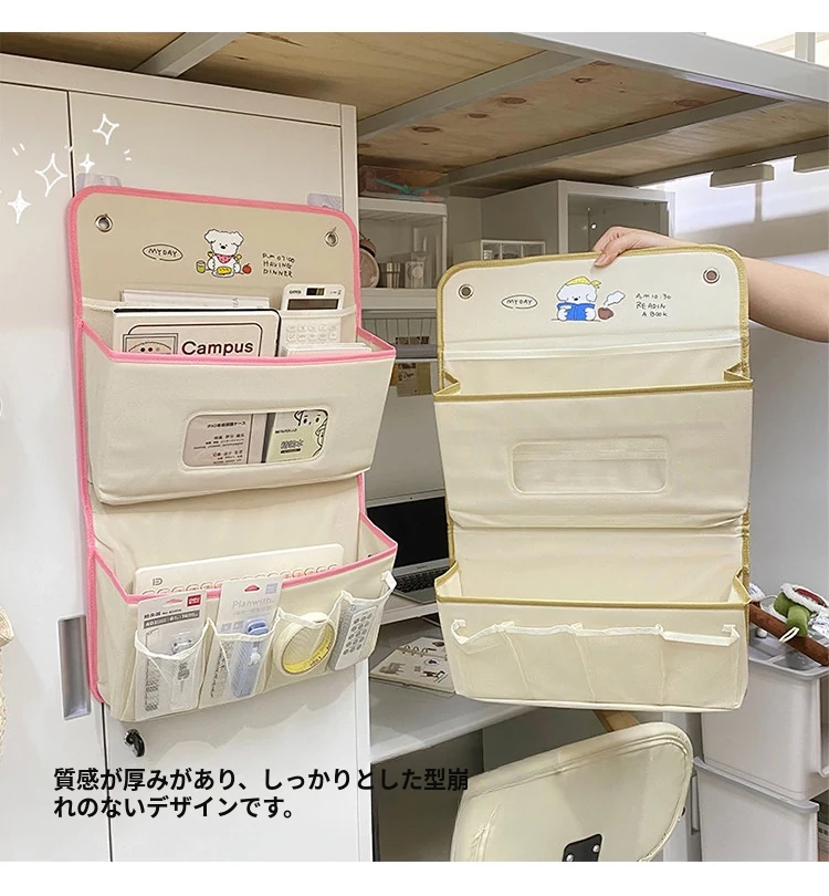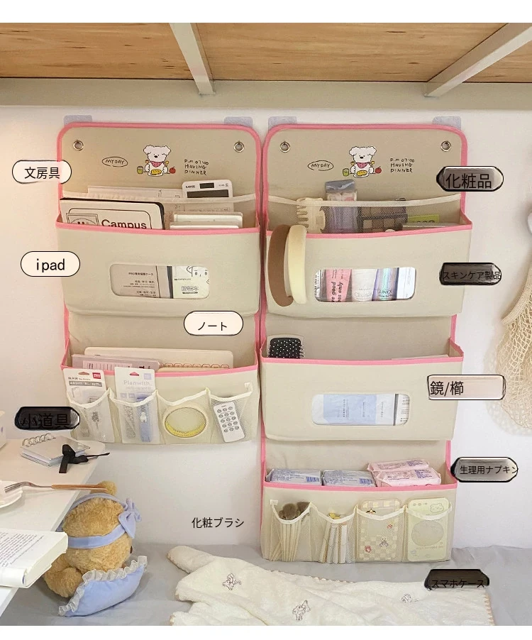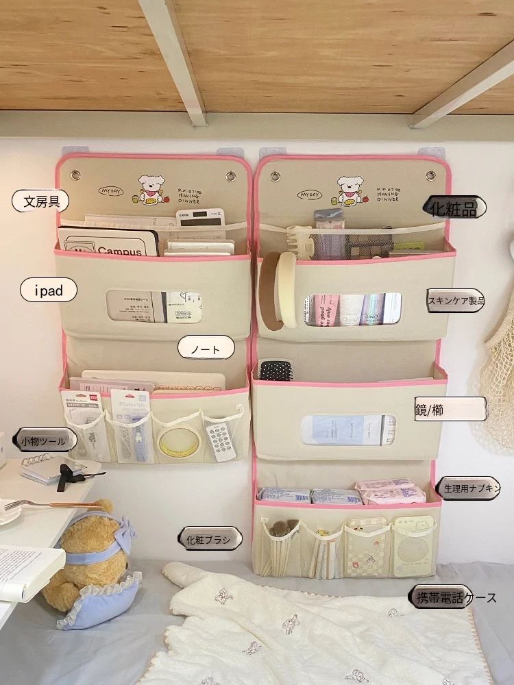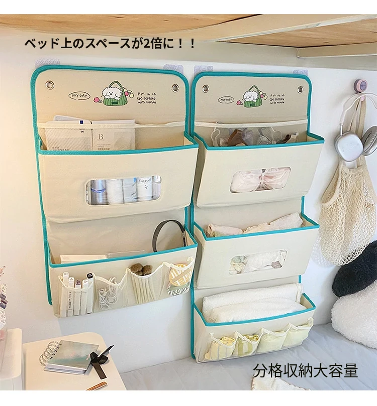 「驚きの収納力!壁掛け式インナー収納ポケット - 寮生活をスマートに!ベッド下やクローゼットのスペースを有効活用して、上下段の仕切りにも最適な便利アイテム」