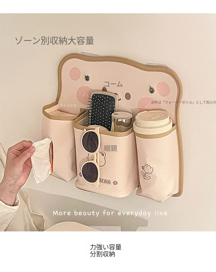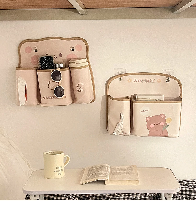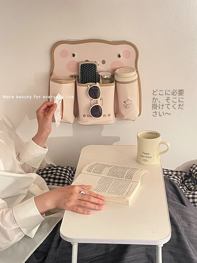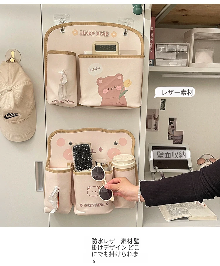 寮の収納革命!壁掛け収納ポケット – ベッドサイドやクローゼットに最適なスペース節約アイテム。上段ベッドのドアの後ろや枕元に取り付けて、衣類や小物をスッキリ整理!