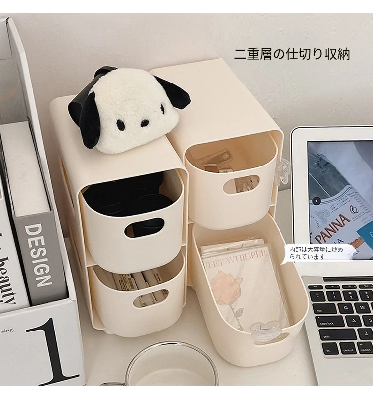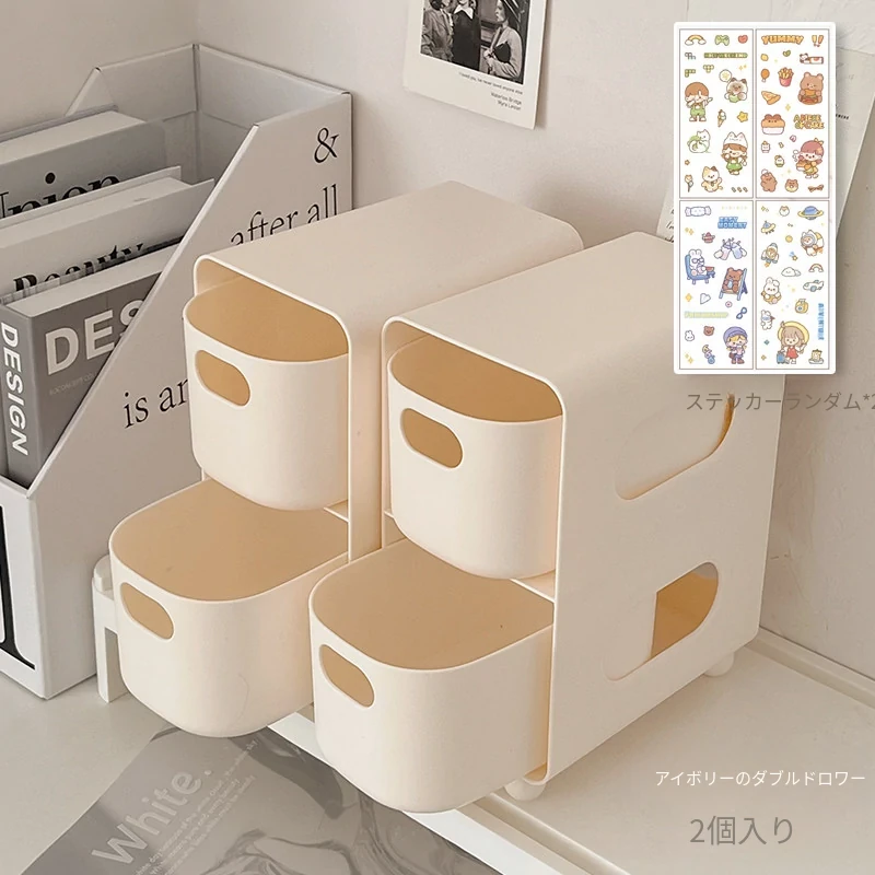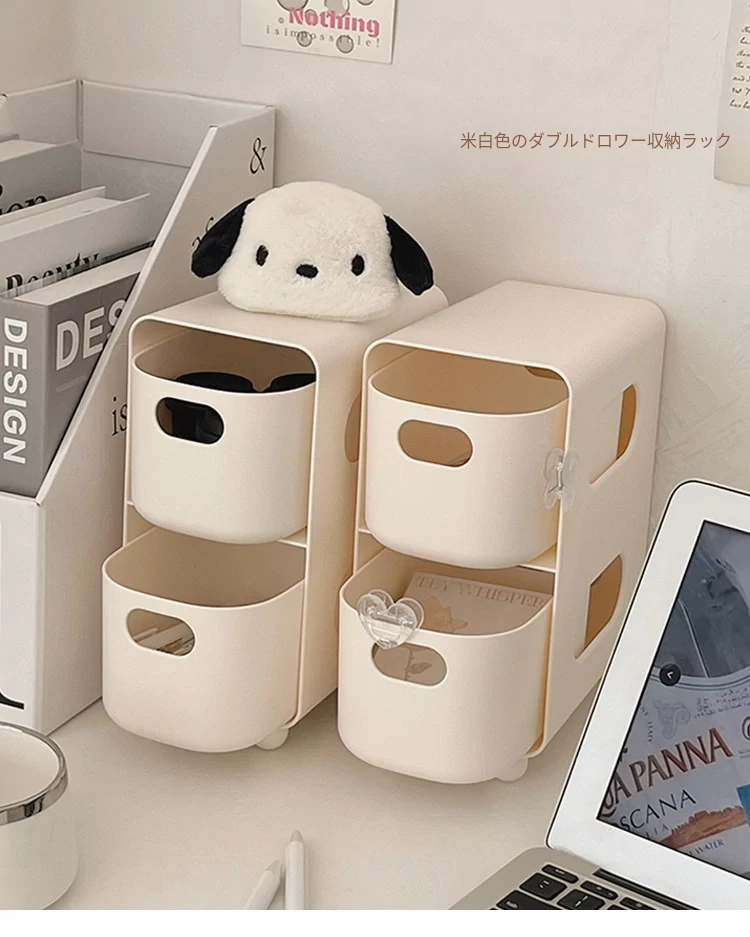 大容量二段式デスク収納ボックス – インスタ映えする学生寮の必需品!引き出し付きで、書類や小物をスッキリ整理。おしゃれで実用的な置物ラックで、快適な勉強空間を実現!
