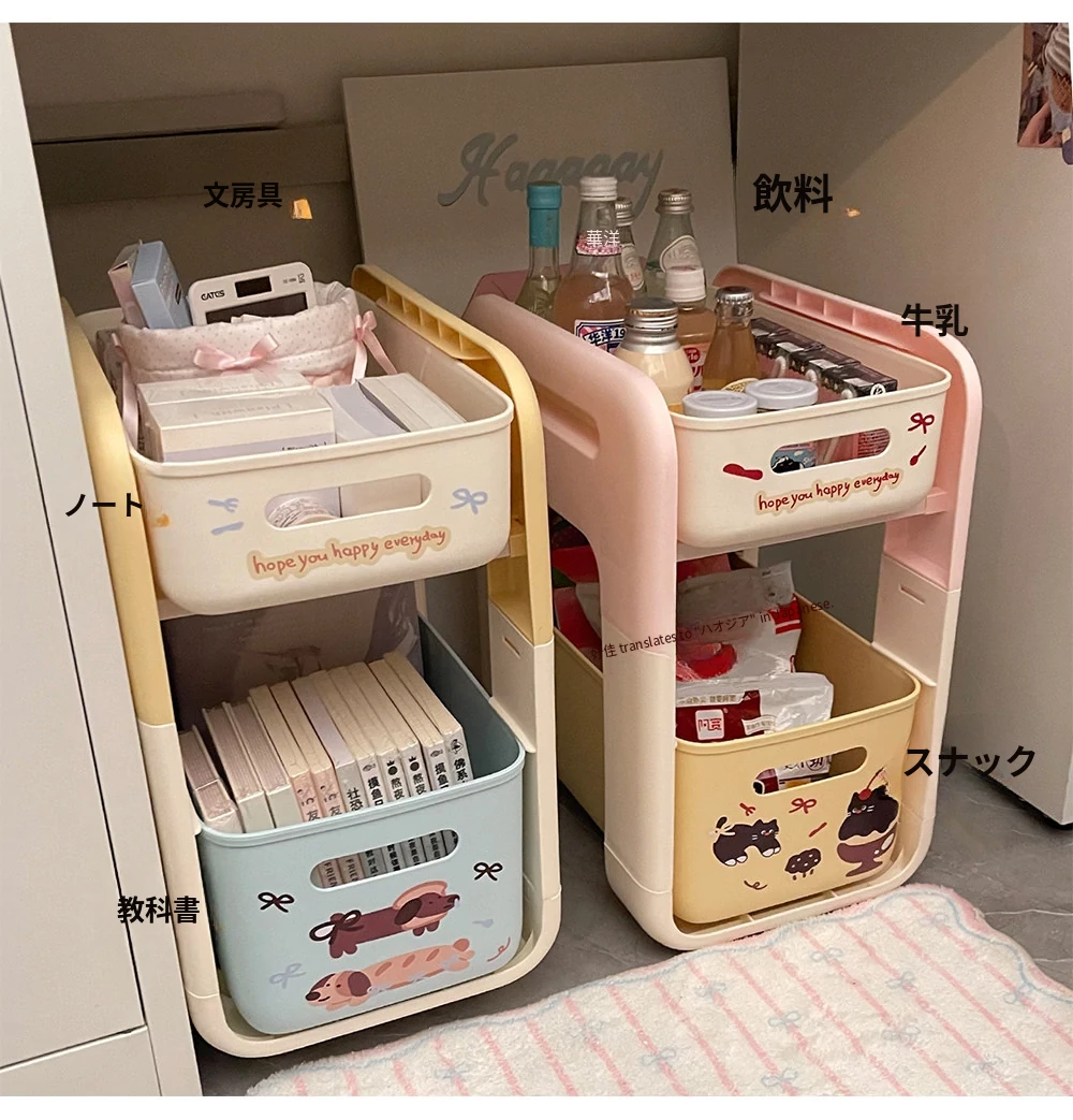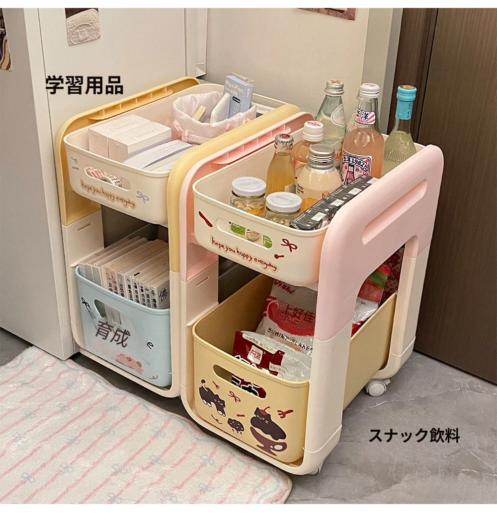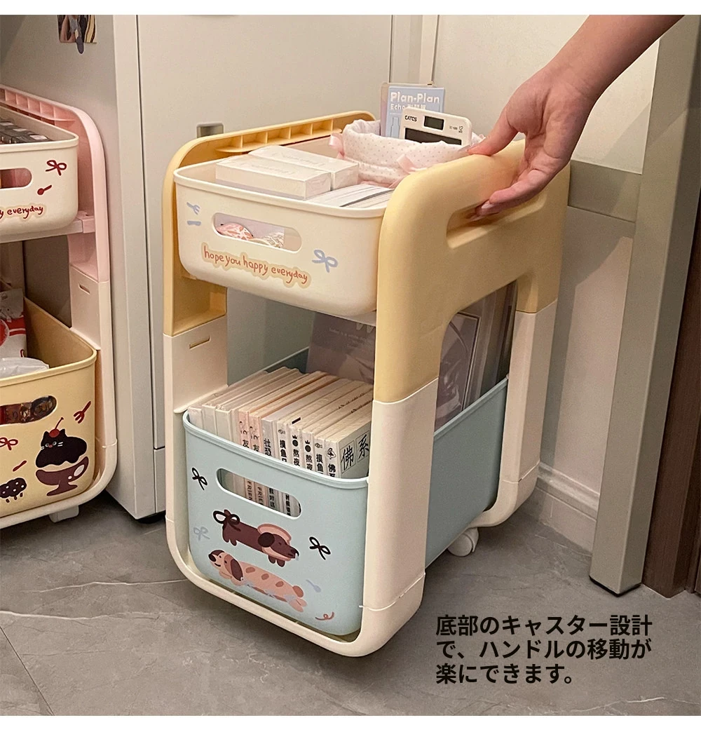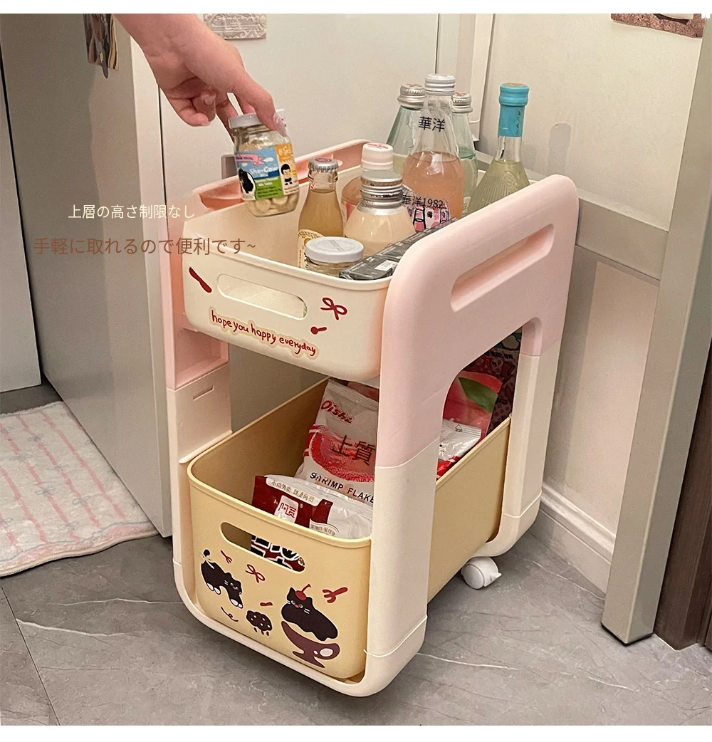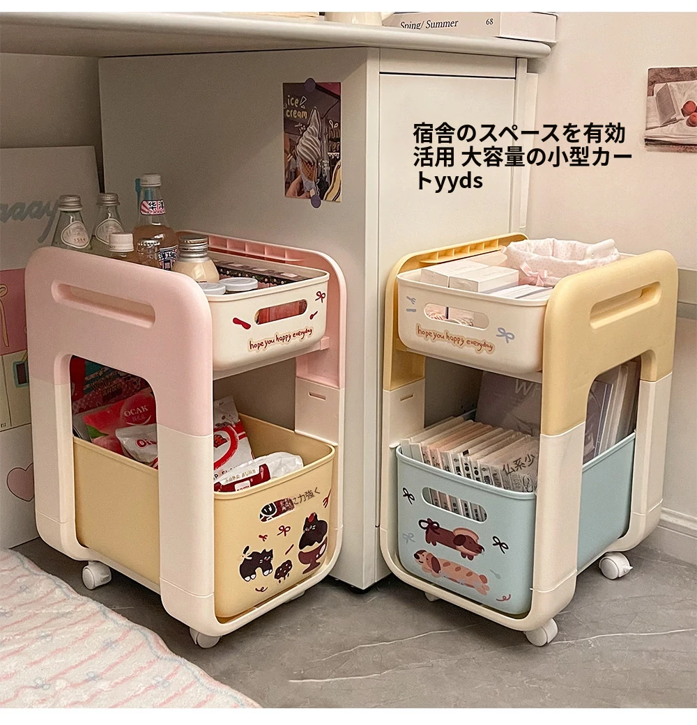 2段階フロアワゴン - 宿舎やテーブル下のスペースを有効活用!移動も簡単な収納ラックで、生活用品をスマートに整理整頓。あなたの生活空間をもっと便利に!