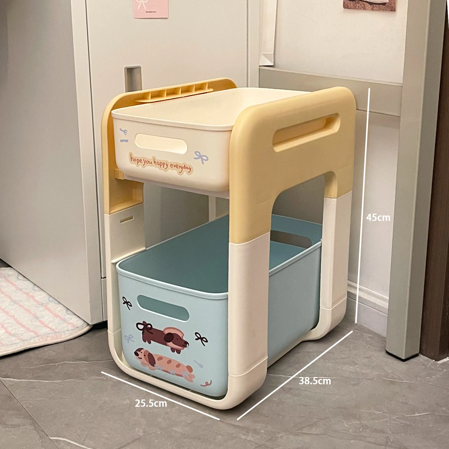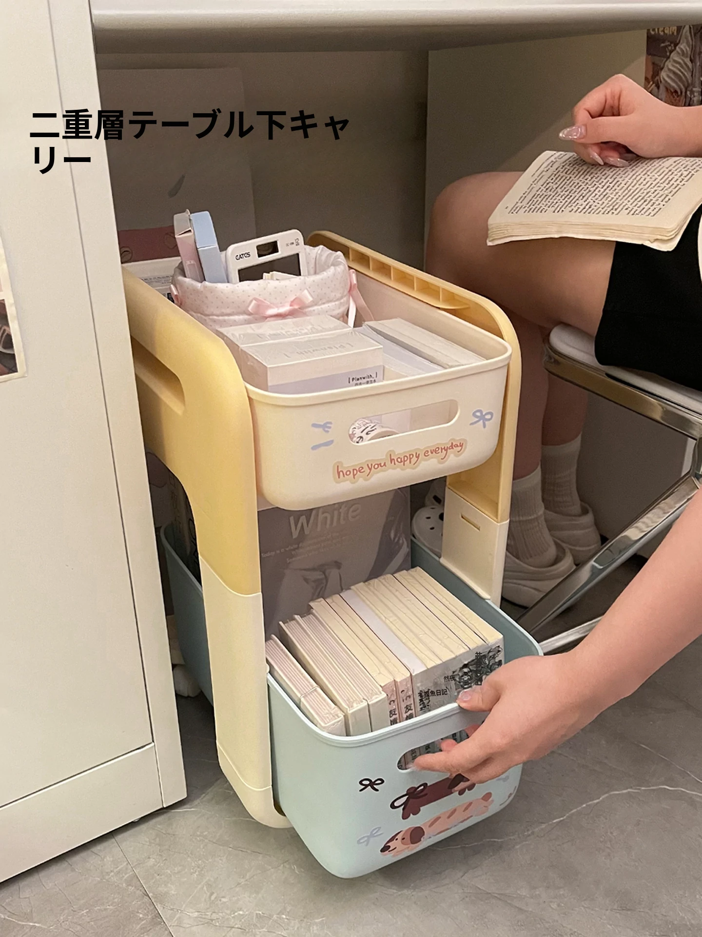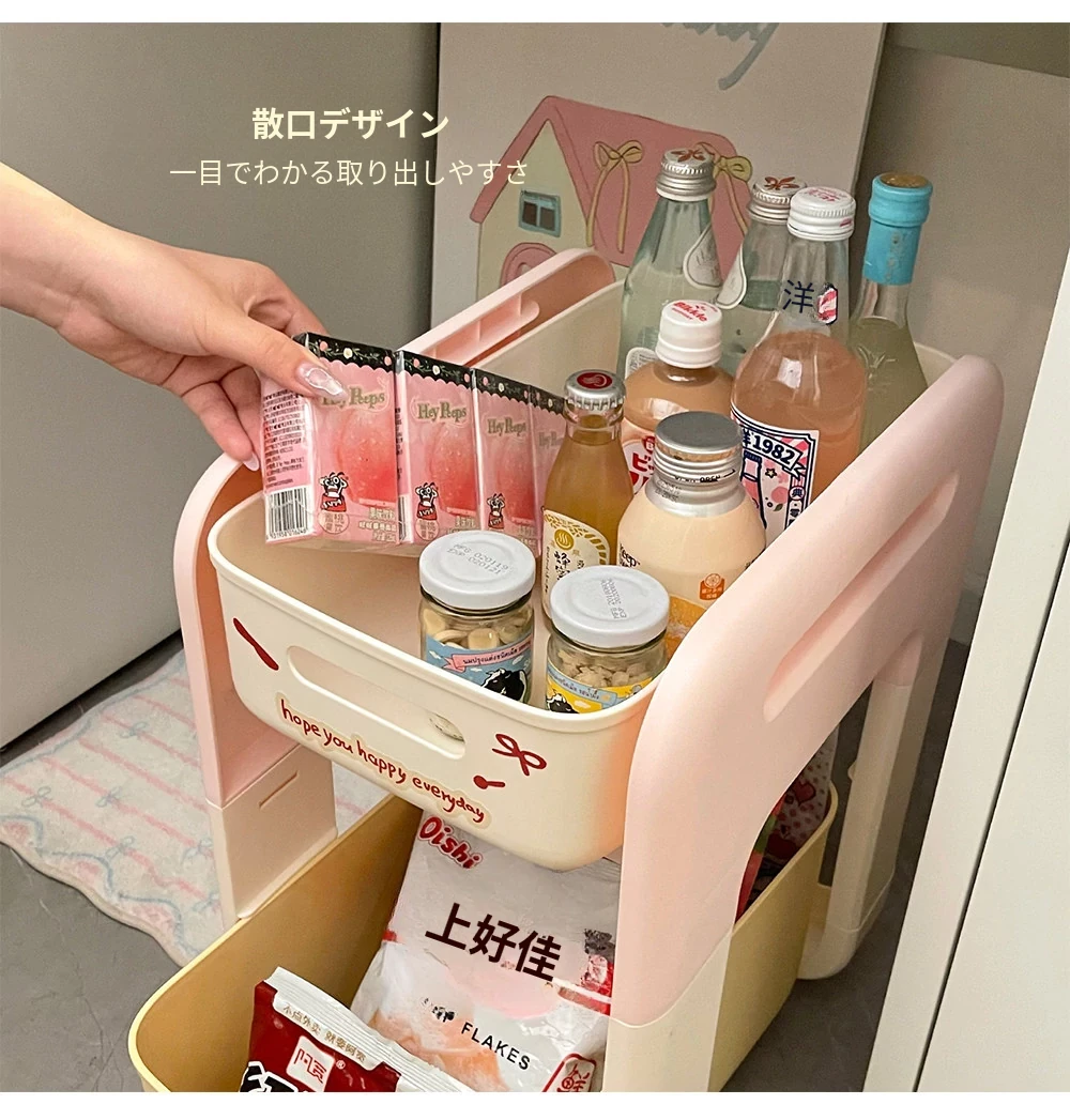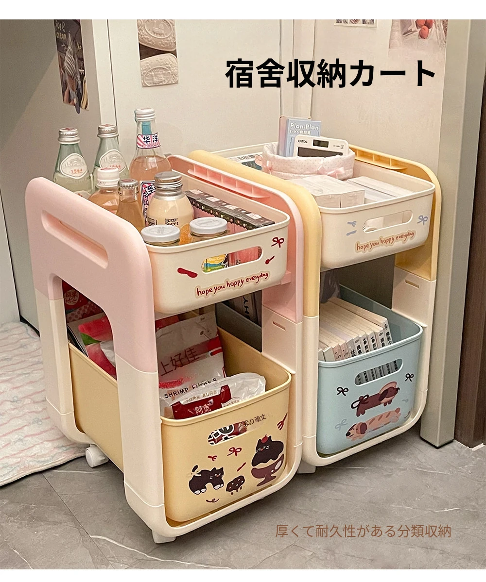 2段階フロアワゴン - 宿舎やテーブル下のスペースを有効活用!移動も簡単な収納ラックで、生活用品をスマートに整理整頓。あなたの生活空間をもっと便利に!