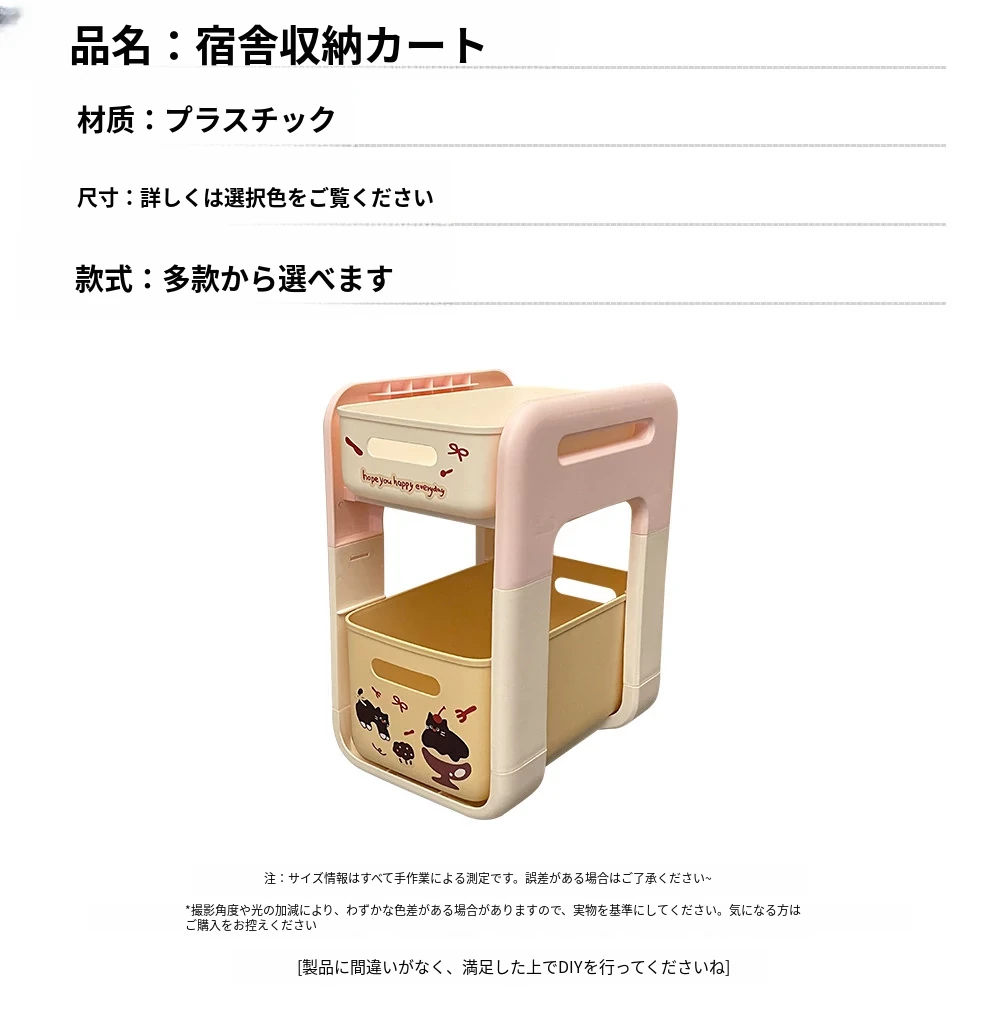 クリームピンク厚手-二重キャスターなし【スムーズな引き出し/安定して揺れない】ステッカー付き