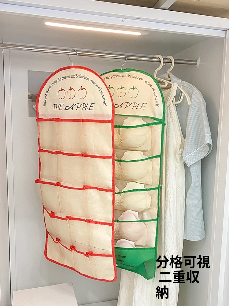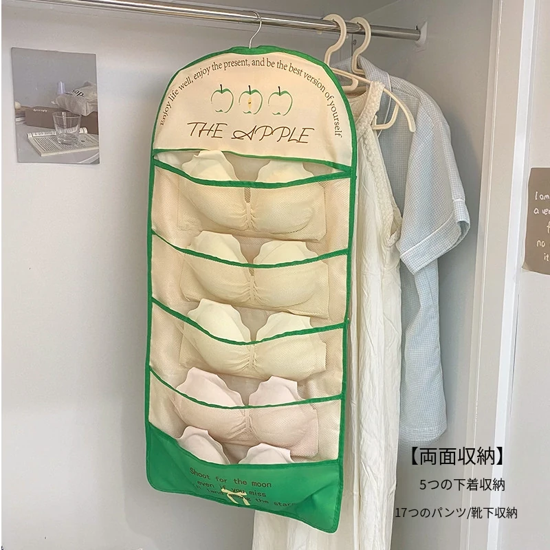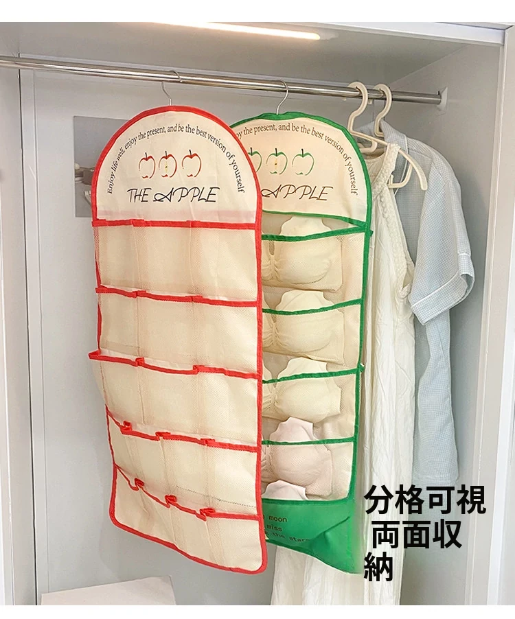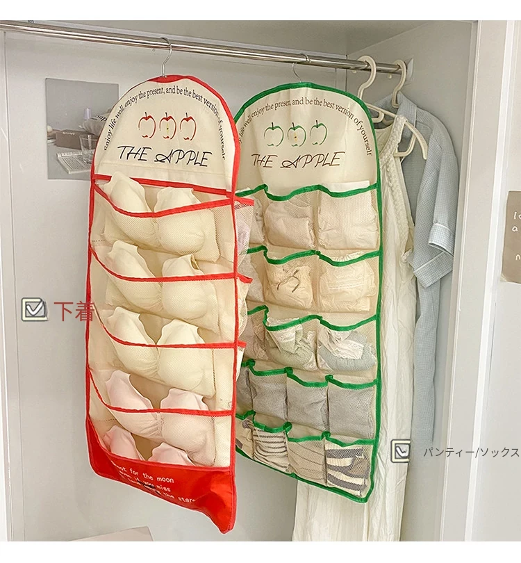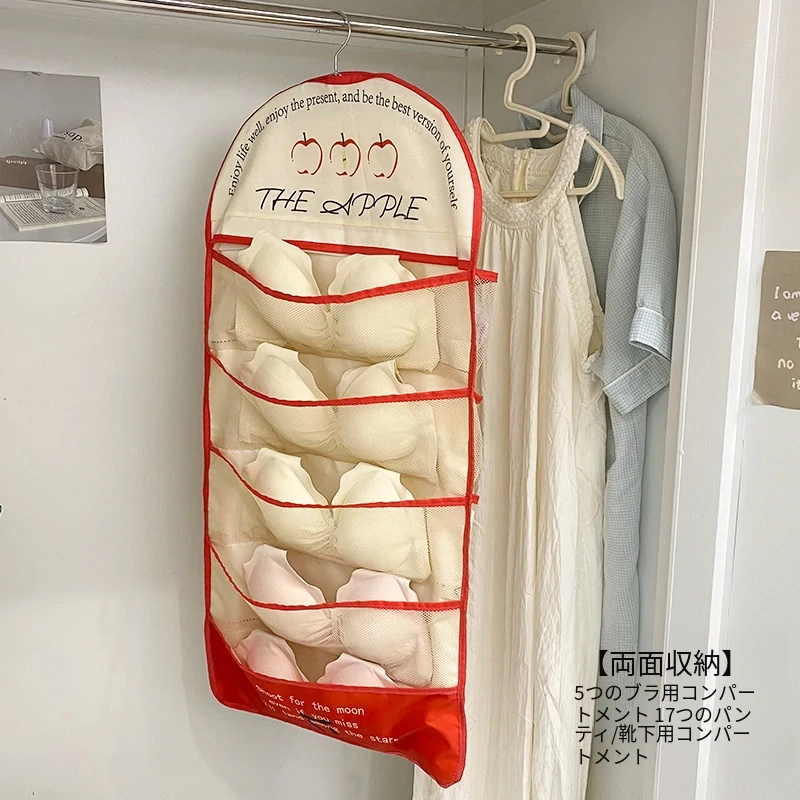 学生寮必見!内衣・靴下・タイツ収納の両面ハンギングポケット - 衣類整理の救世主!おしゃれで便利な壁掛け仕切り袋で、クローゼットもスッキリ!