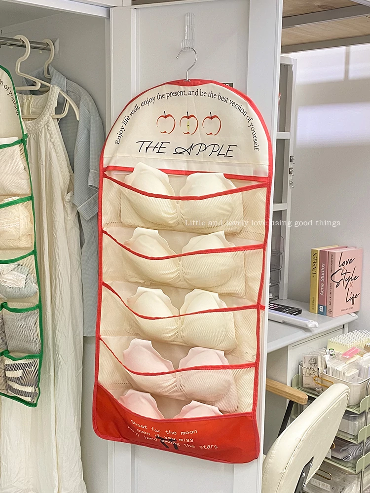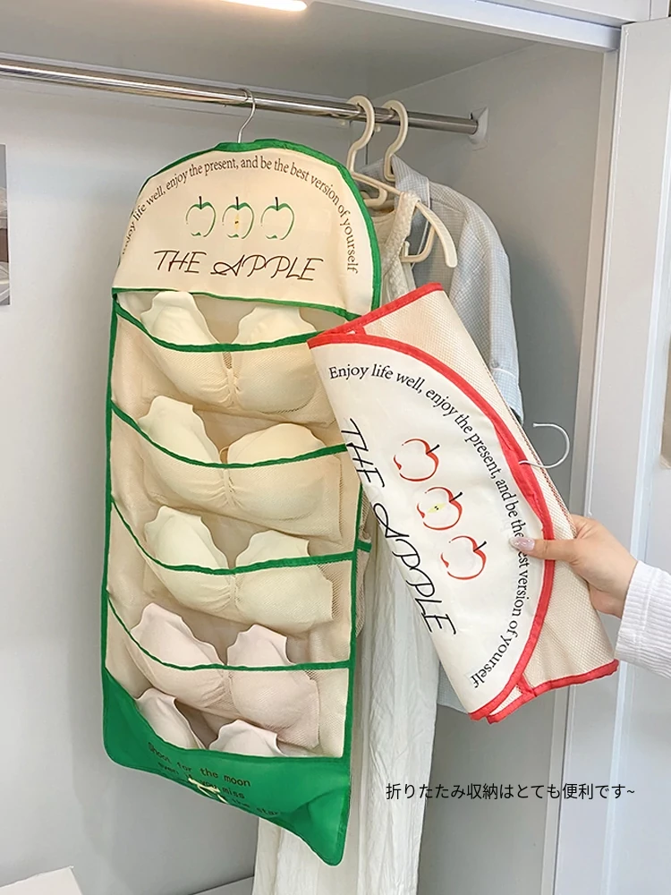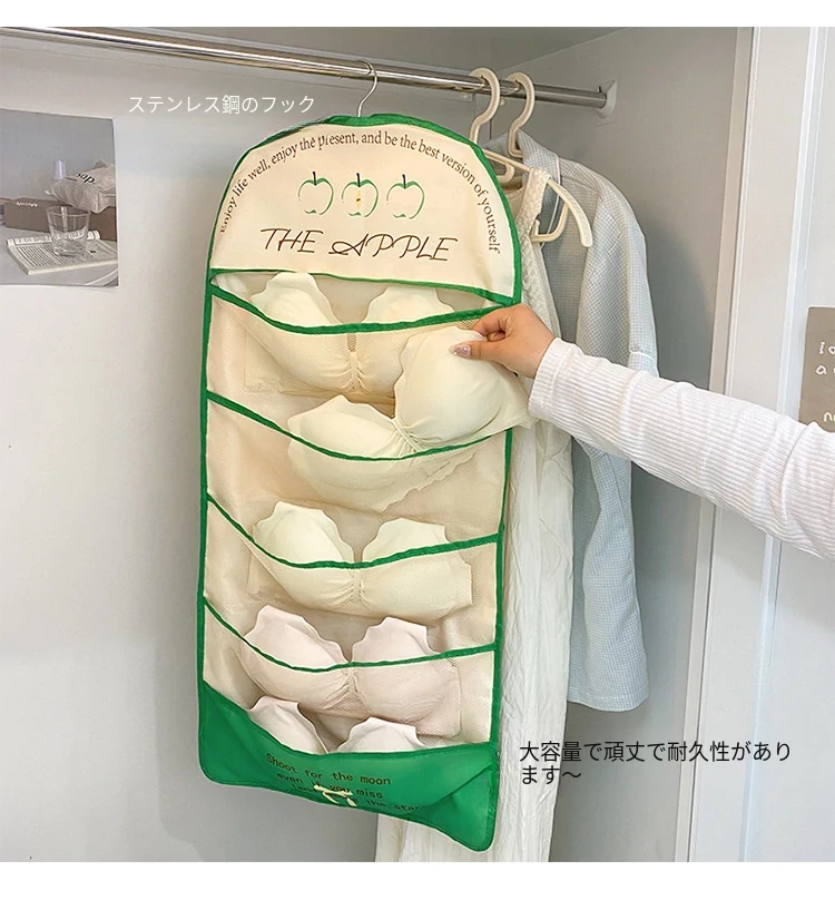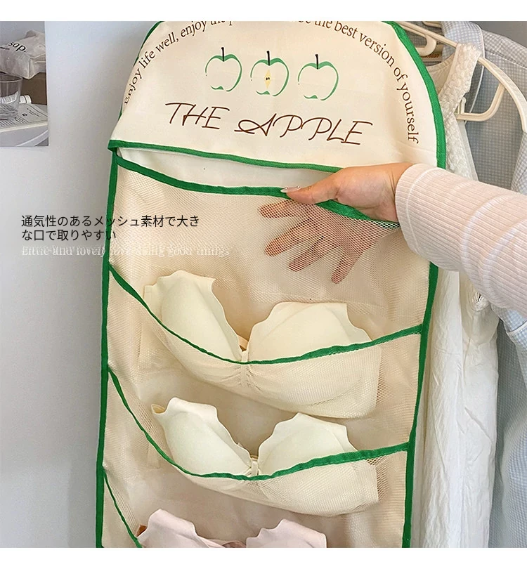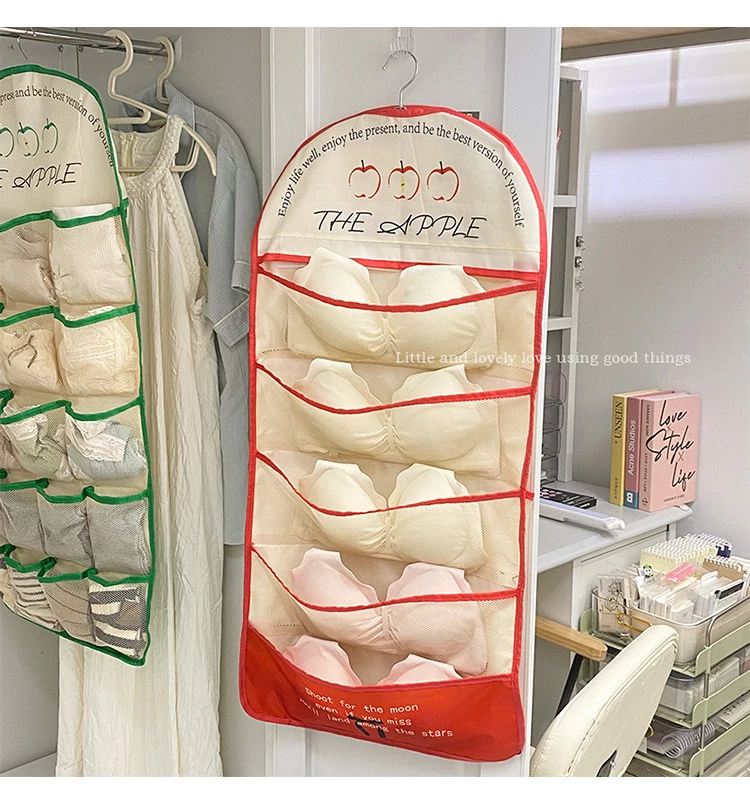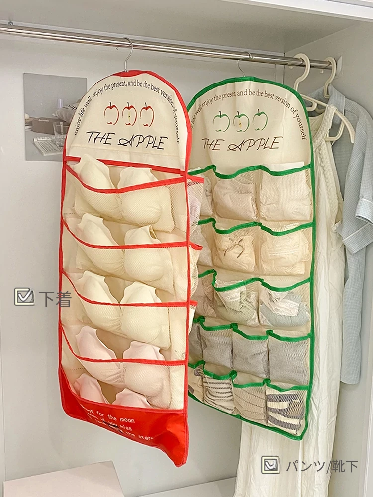 学生寮必見!内衣・靴下・タイツ収納の両面ハンギングポケット - 衣類整理の救世主!おしゃれで便利な壁掛け仕切り袋で、クローゼットもスッキリ!