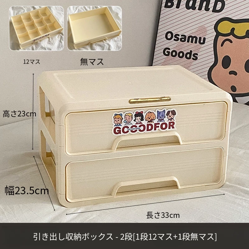 2段-引き出し収納ボックス【1段12マス+1段無分割】
