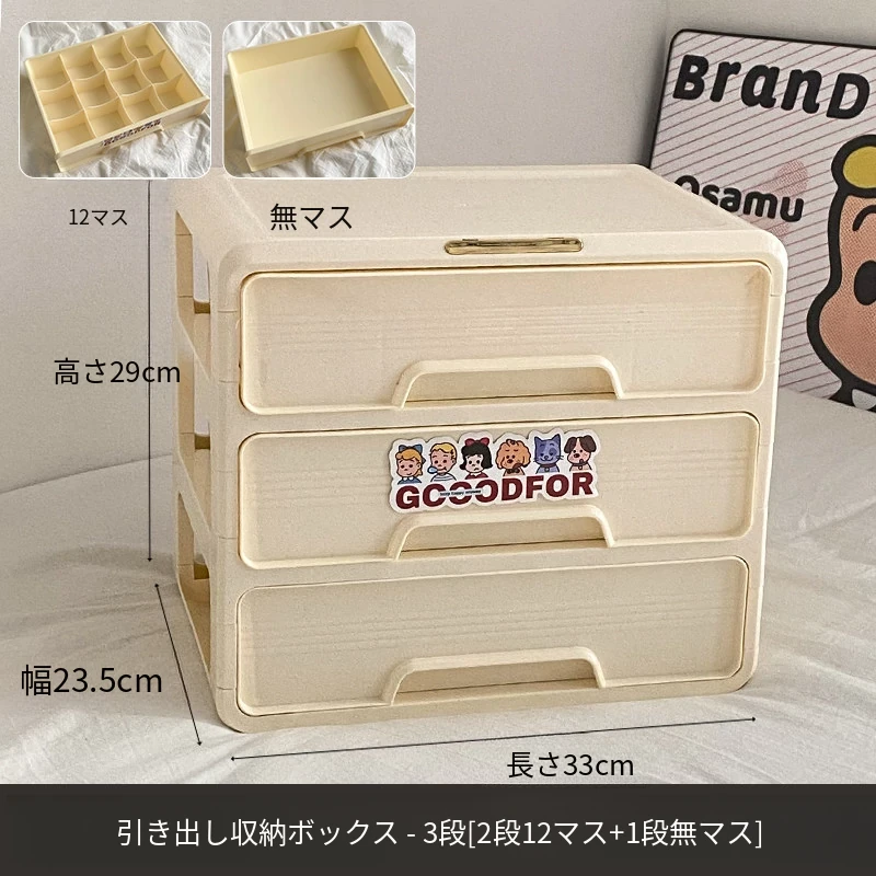 3段-引き出し収納ボックス【2段12マス+1段無分割】