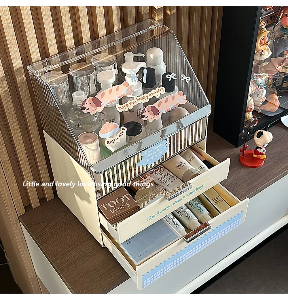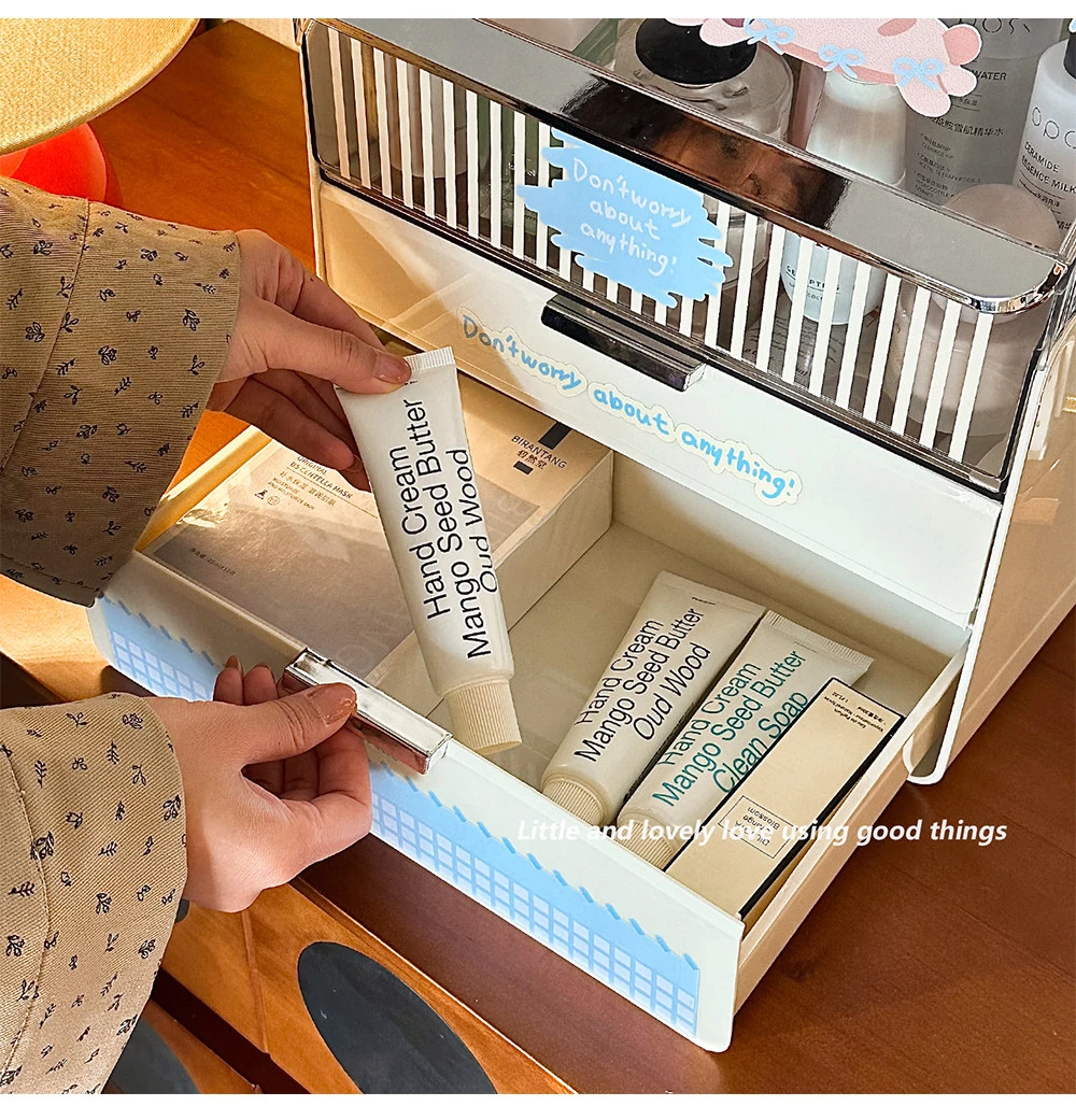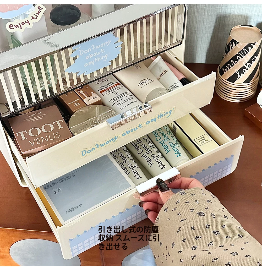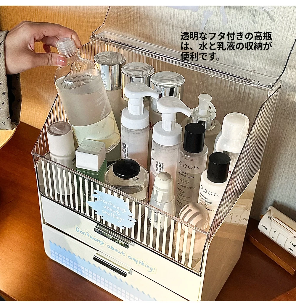 ラグジュアリーな化粧品デスク収納ボックス - 蓋付き多層引き出し式、家庭用ドレッサーに最適なスキンケア・水乳整理ラック。美しさを引き立てる洗練されたデザインで、あなたのメイクアップをもっと楽しく!