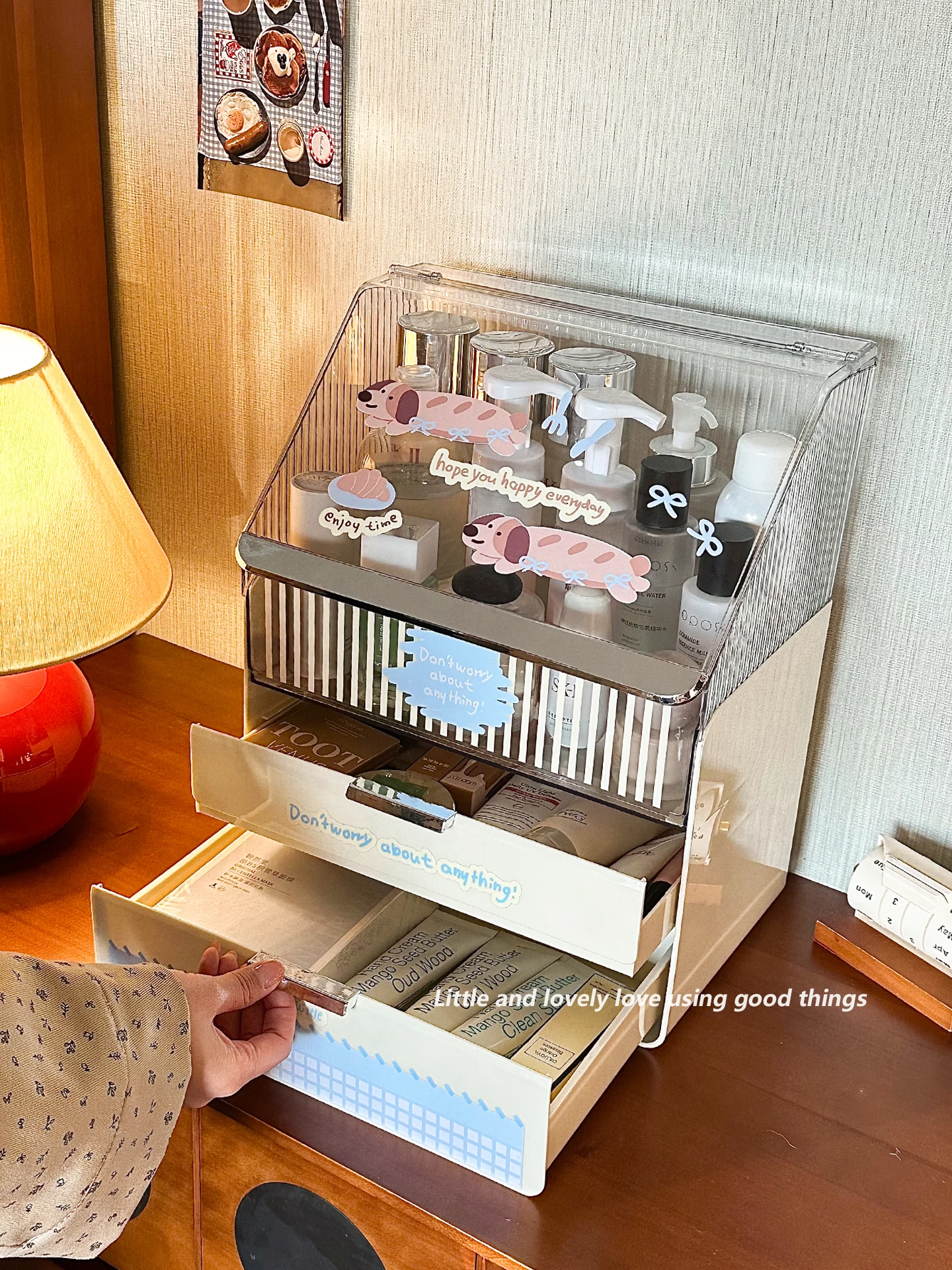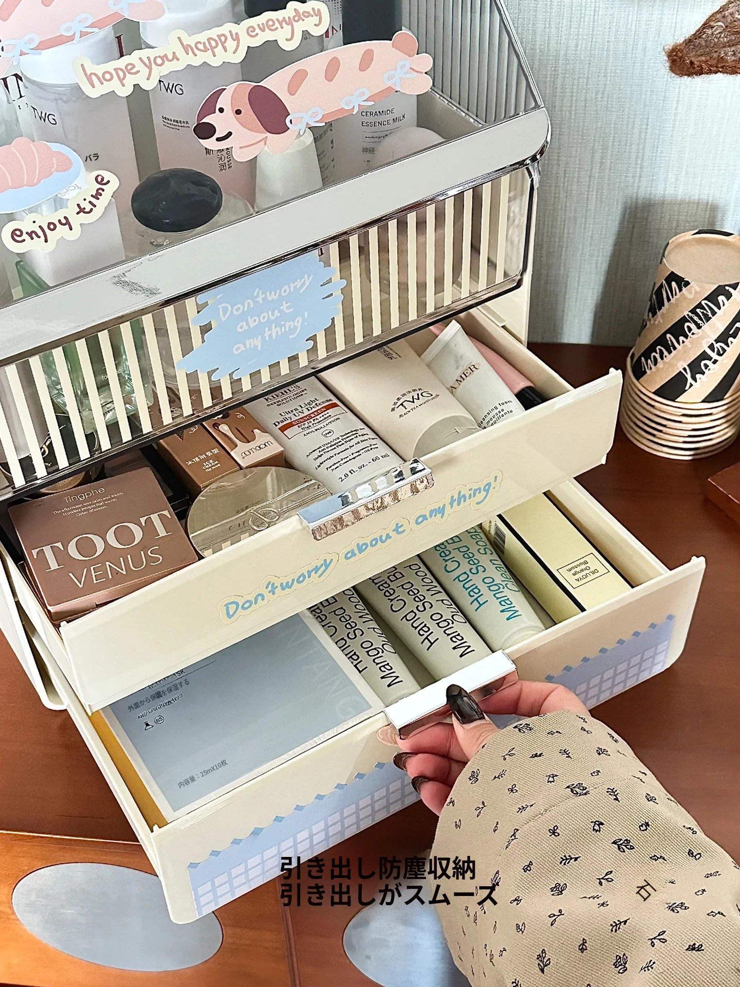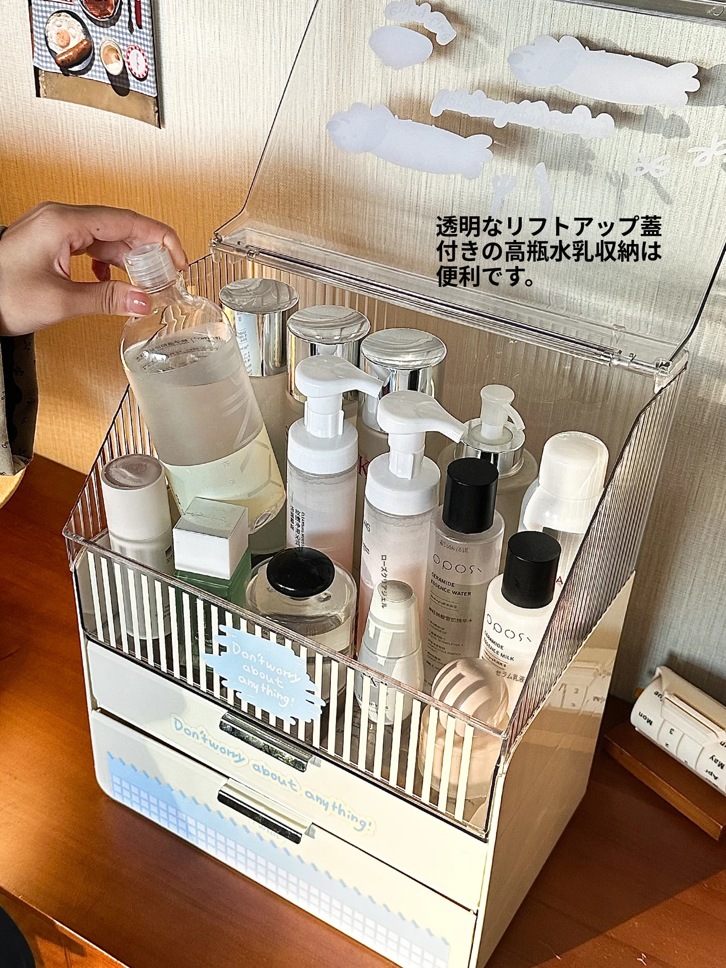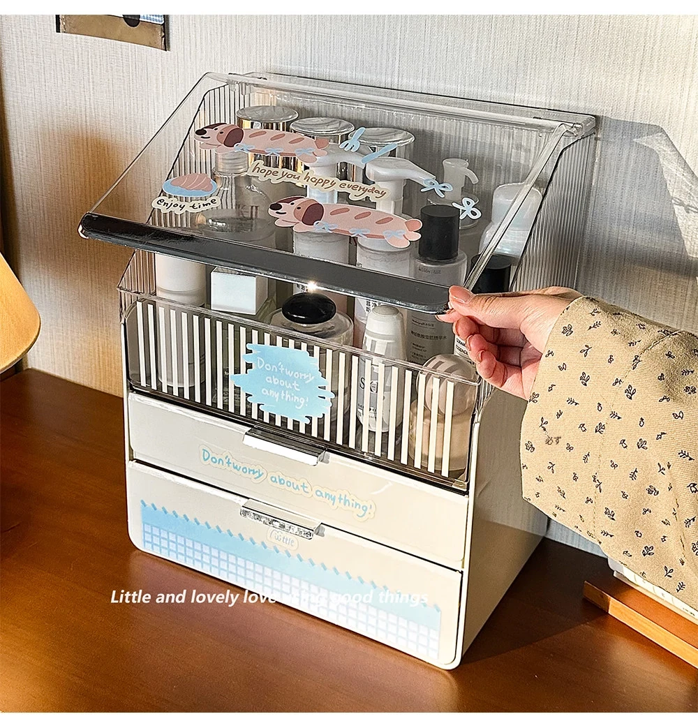 ラグジュアリーな化粧品デスク収納ボックス - 蓋付き多層引き出し式、家庭用ドレッサーに最適なスキンケア・水乳整理ラック。美しさを引き立てる洗練されたデザインで、あなたのメイクアップをもっと楽しく!