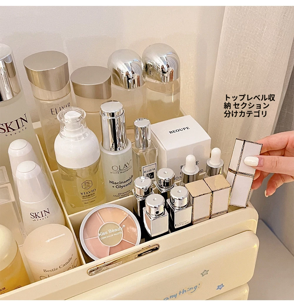 高級感漂う化粧品収納ボックス - 多層引き出し付き、デスクトップ用、寮や家庭に最適なコスメ収納!コスメやリップを美しく整理できる便利なアイテム。理想のドレッサーを実現しましょう!