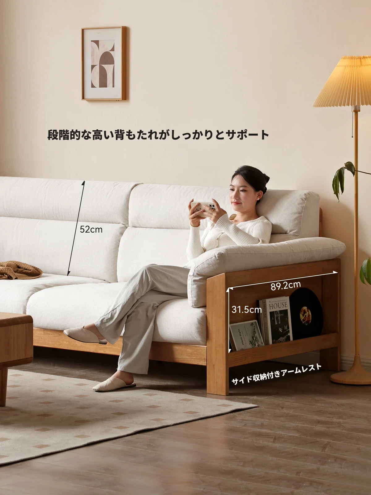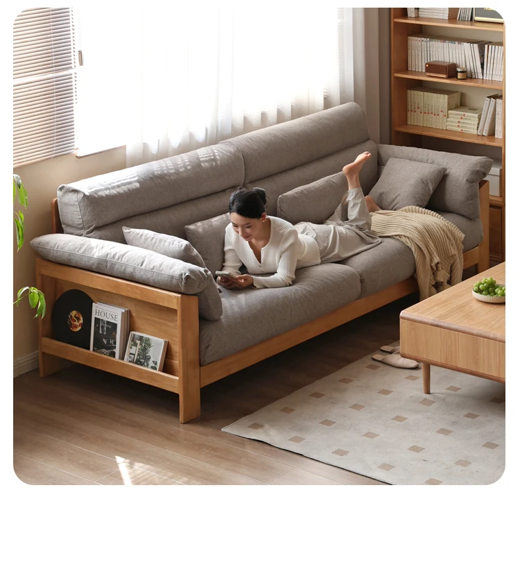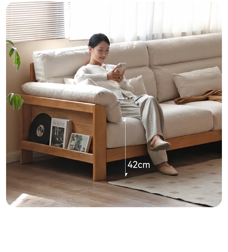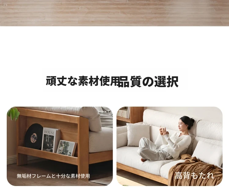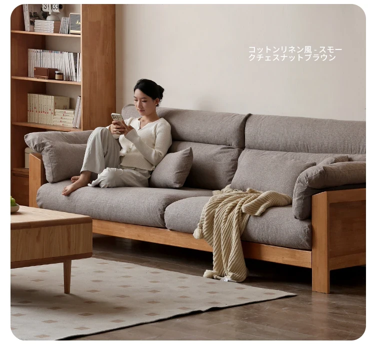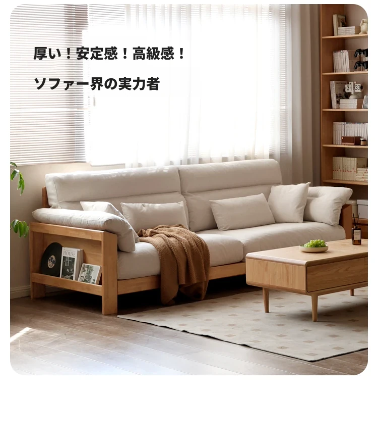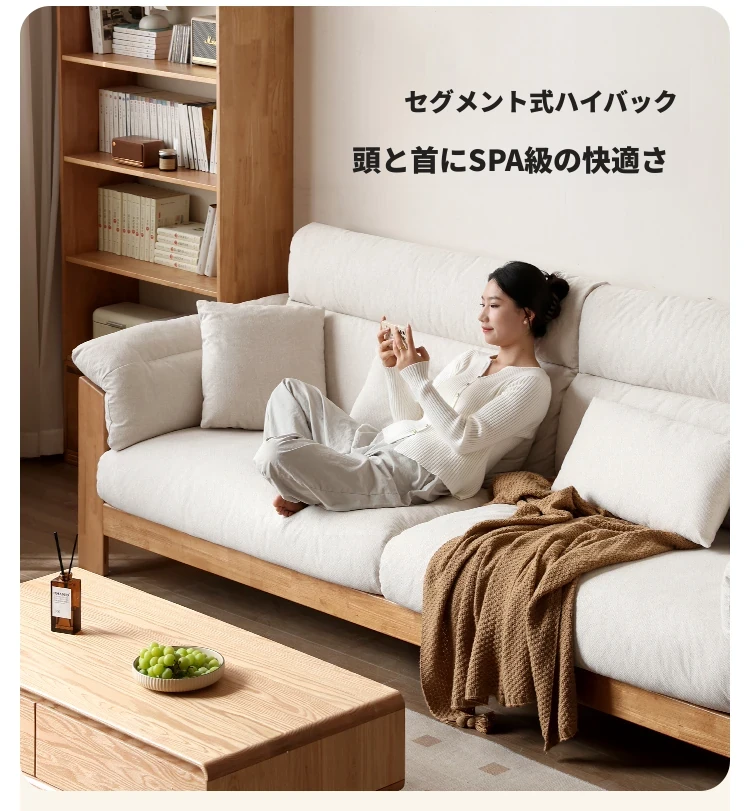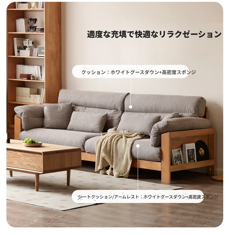 【注目商品】源氏木语x维莎無垢材ソファー 小型リビングに最適!天然木の直線美 新中式デザインの3人掛けソファー