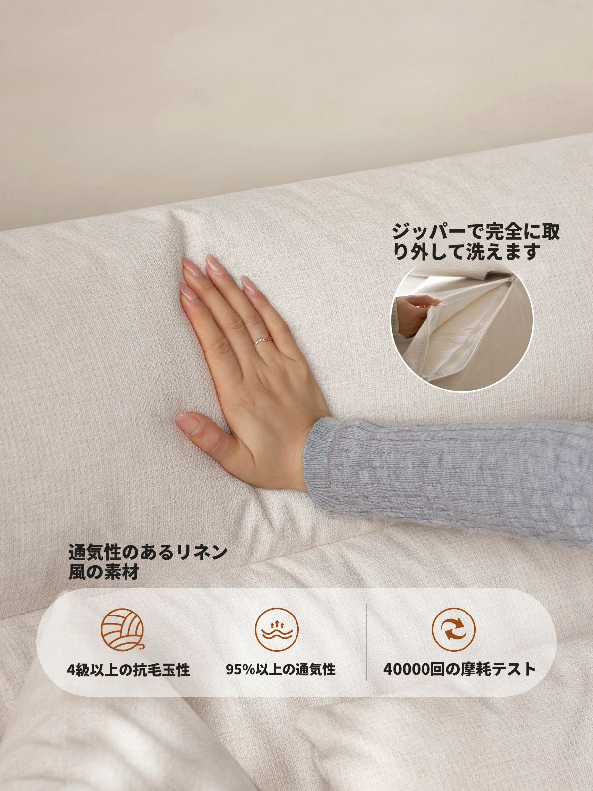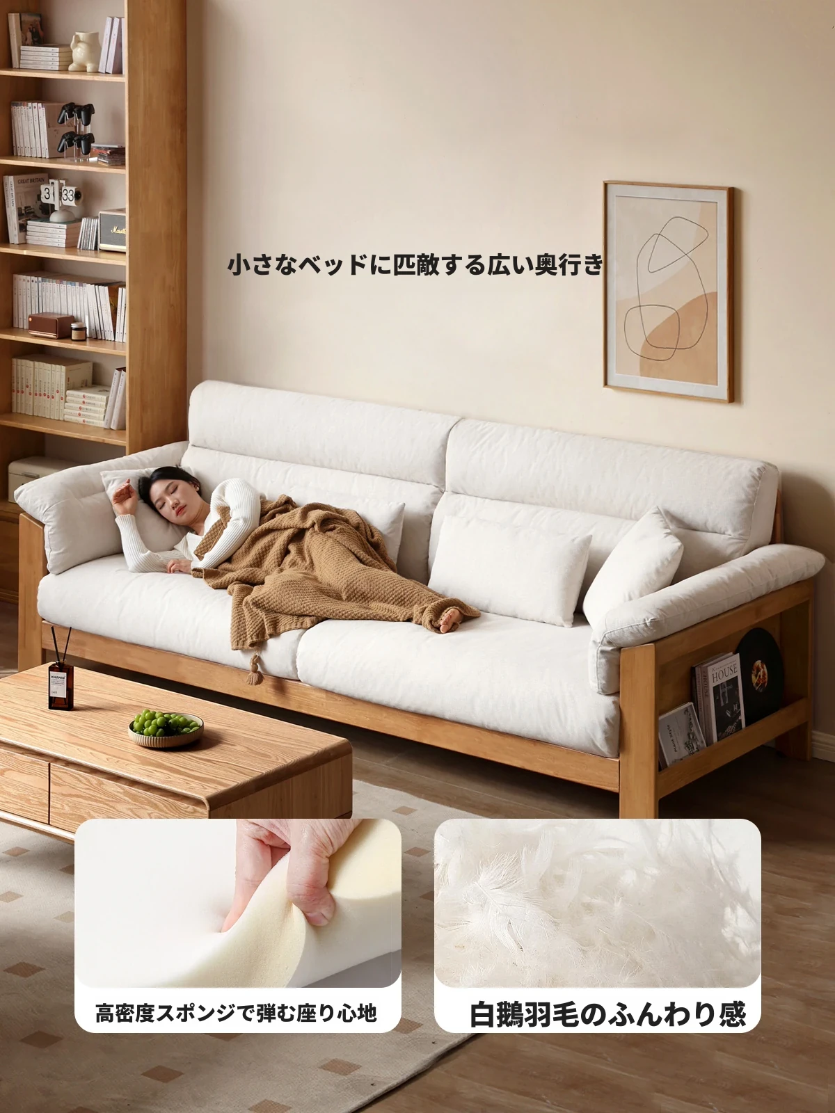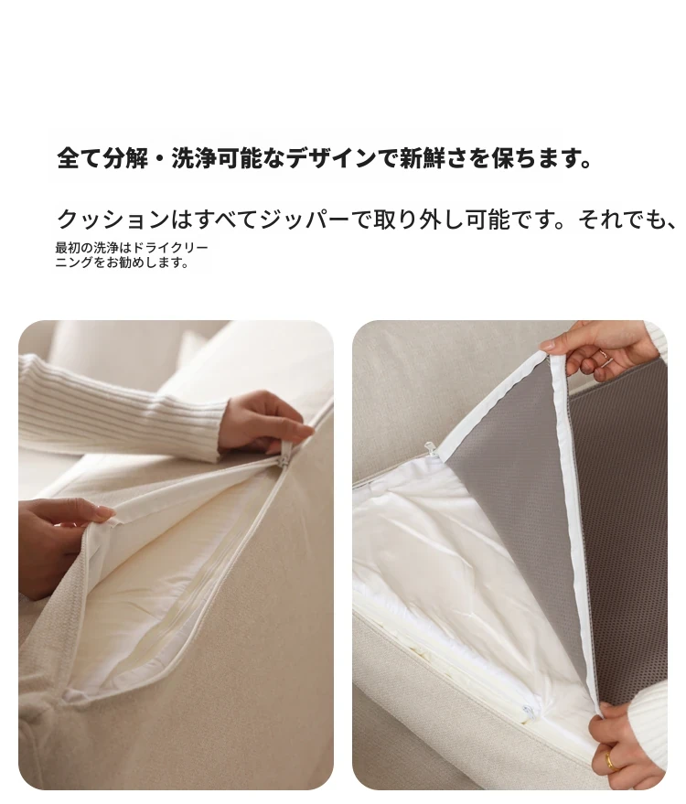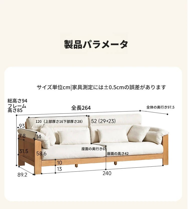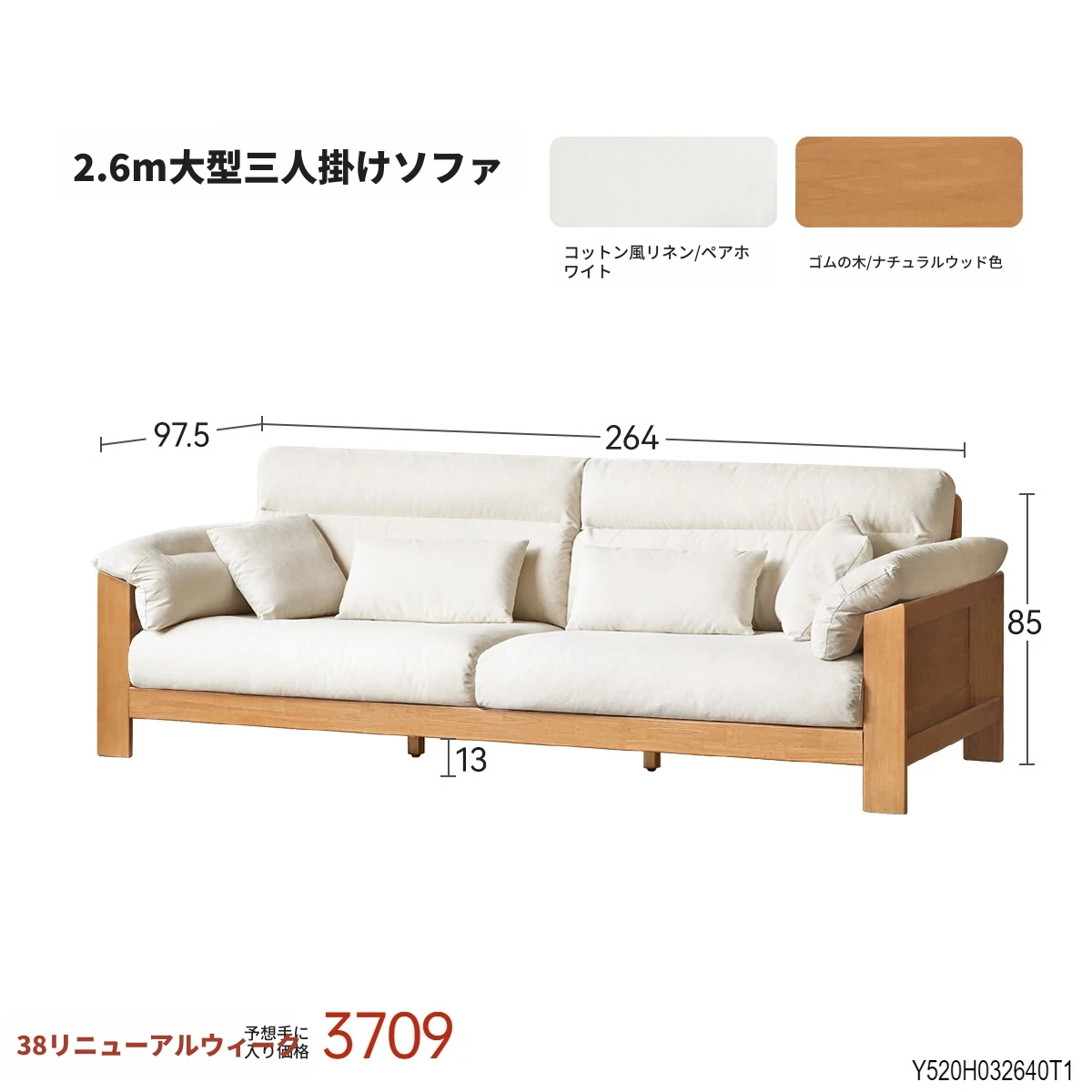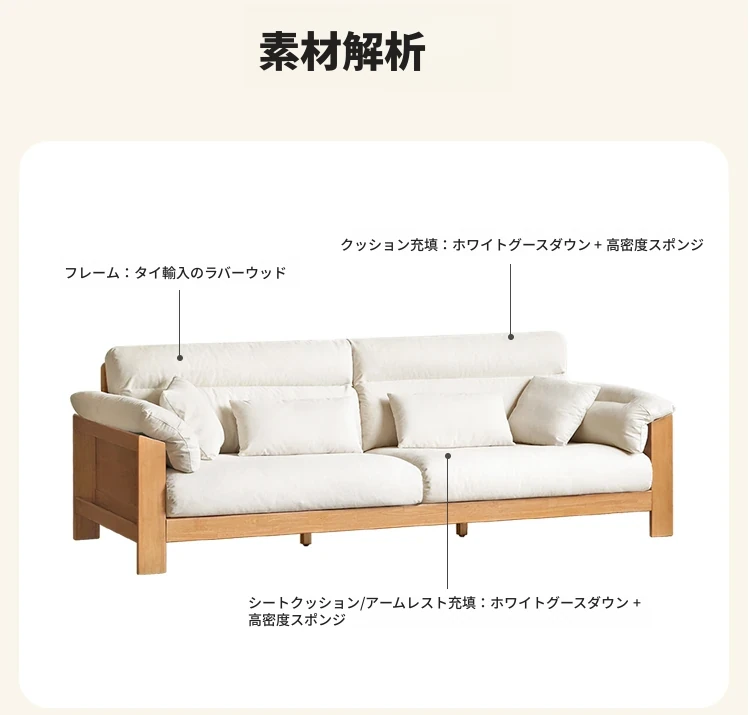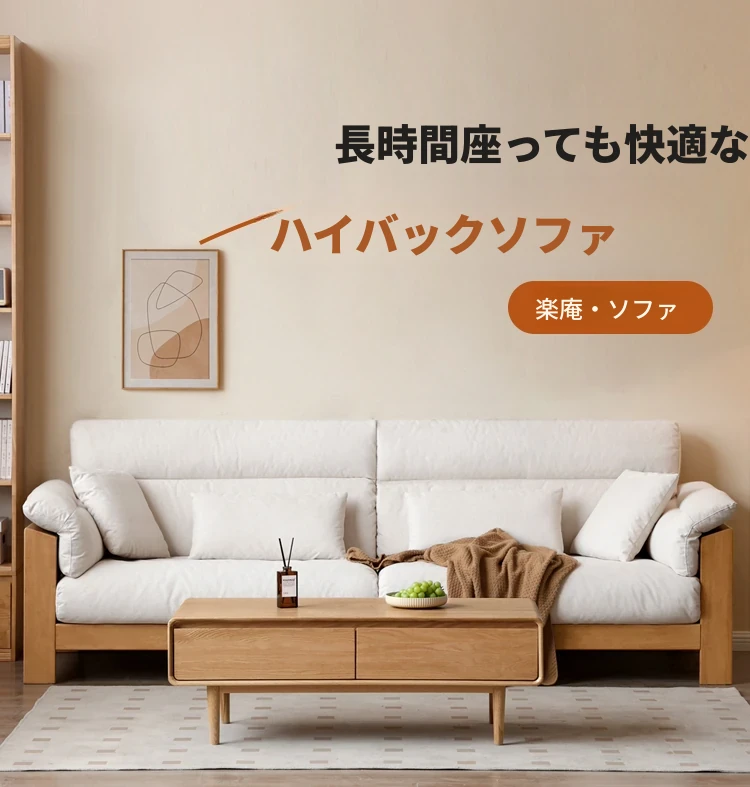 (ナチュラルカラー)2.64m大型三人掛けソファ【ペアホワイト】(2640*975*850MM)