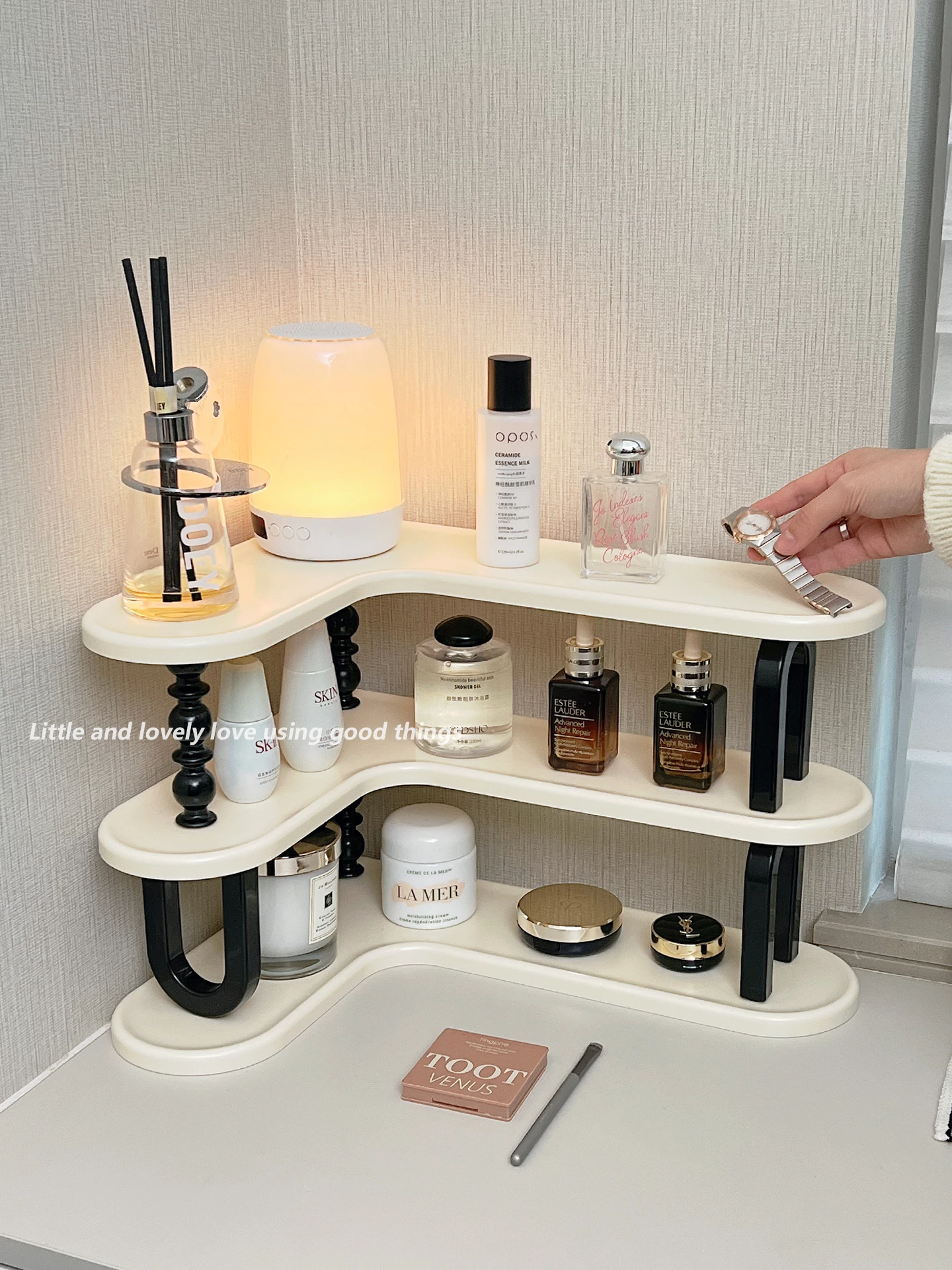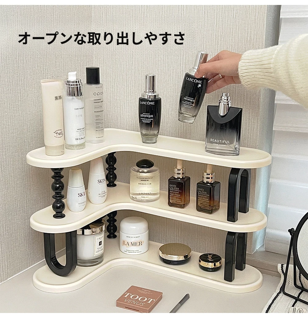 高級感漂う化粧品収納ラック -玄関やドレッサーに最適!ジュエリー、香水、リップ、スキンケアを美しく整理整頓。あなたのスタイルを引き立てるデザインで、すっきりとしたデスクトップを実現!