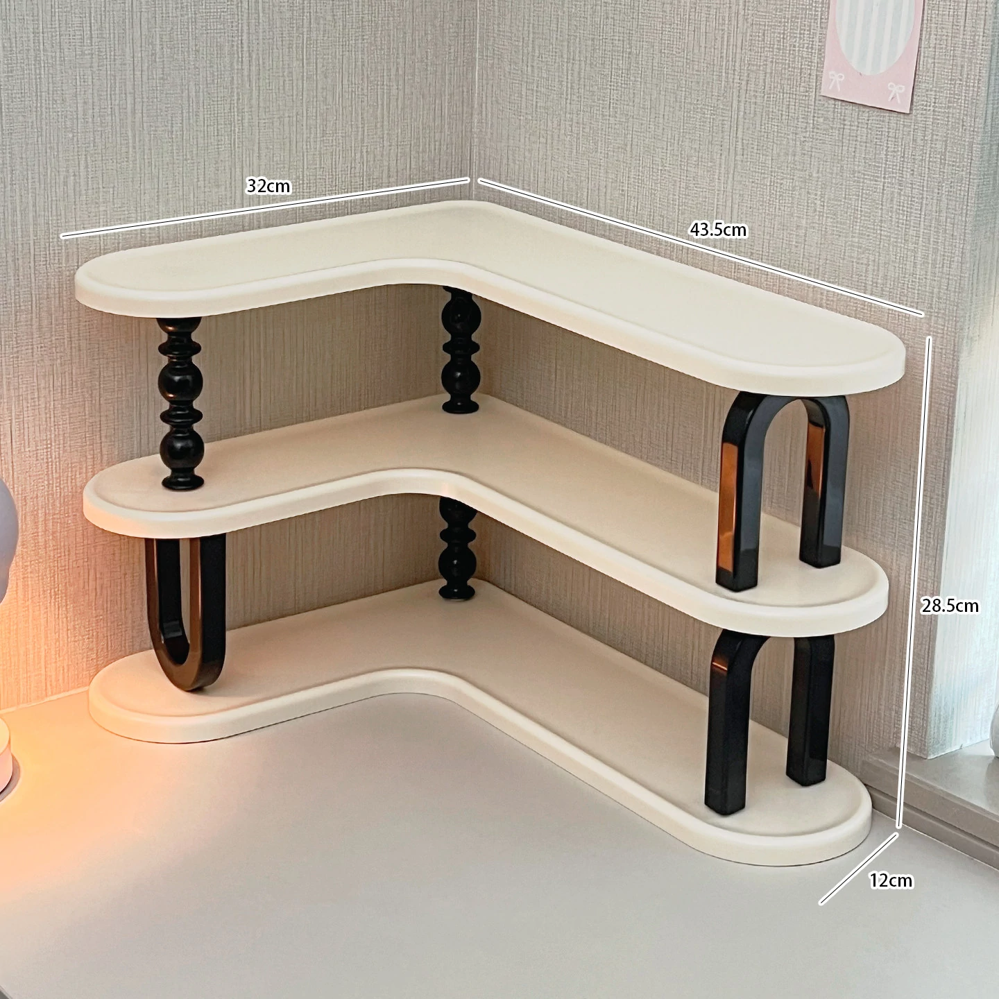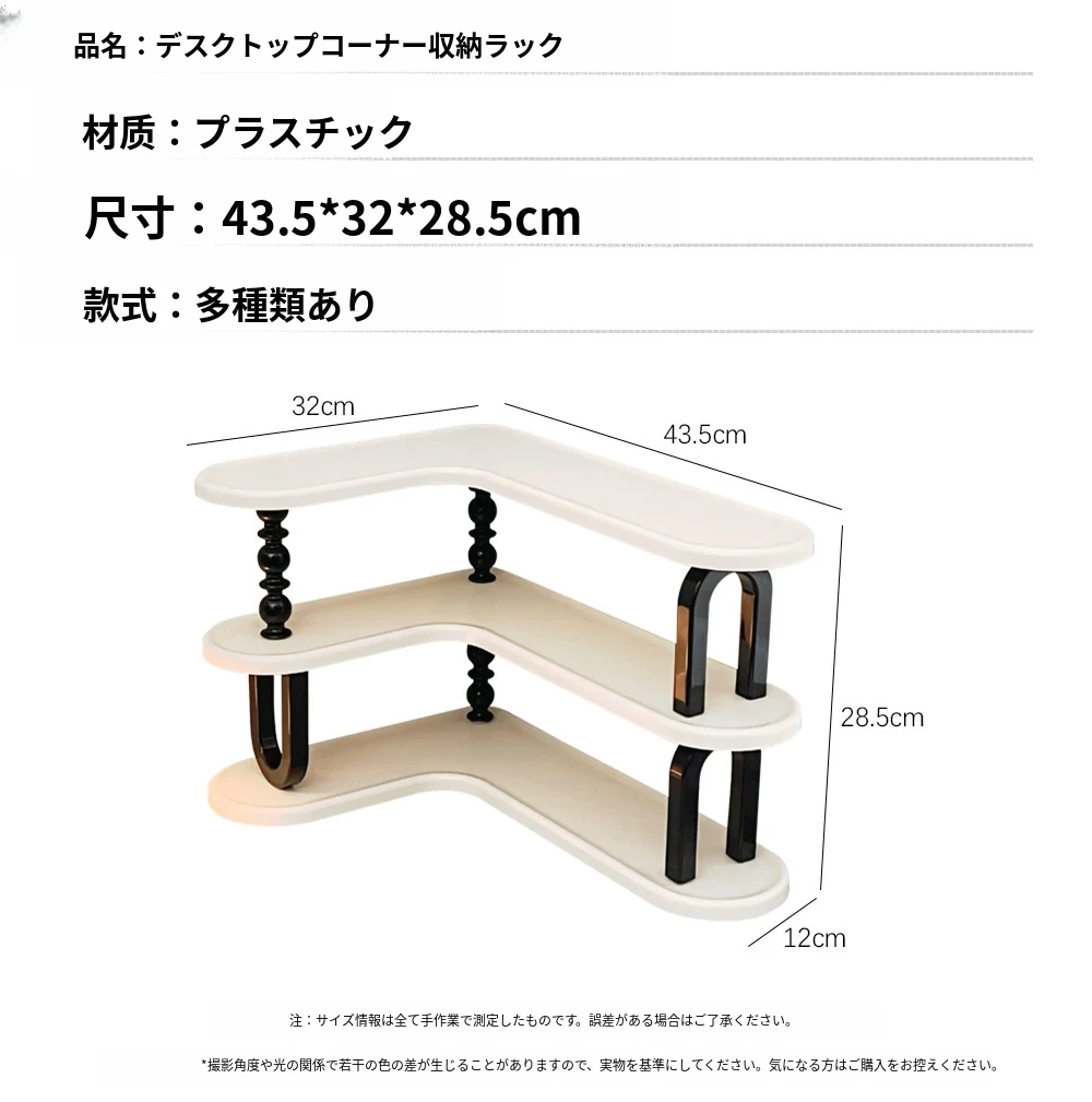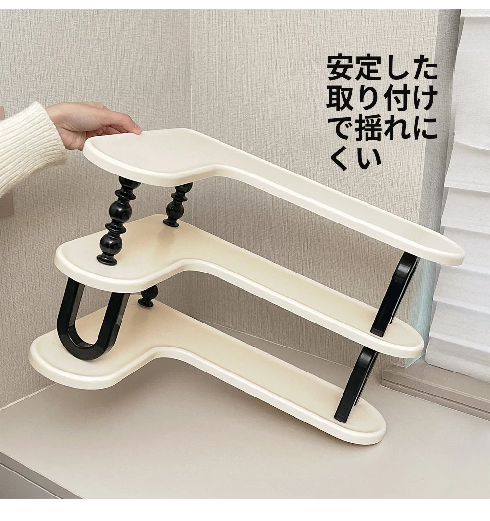 クリームホワイト - 三段カップスタンド【コーナーに置く/よりスペースを節約】