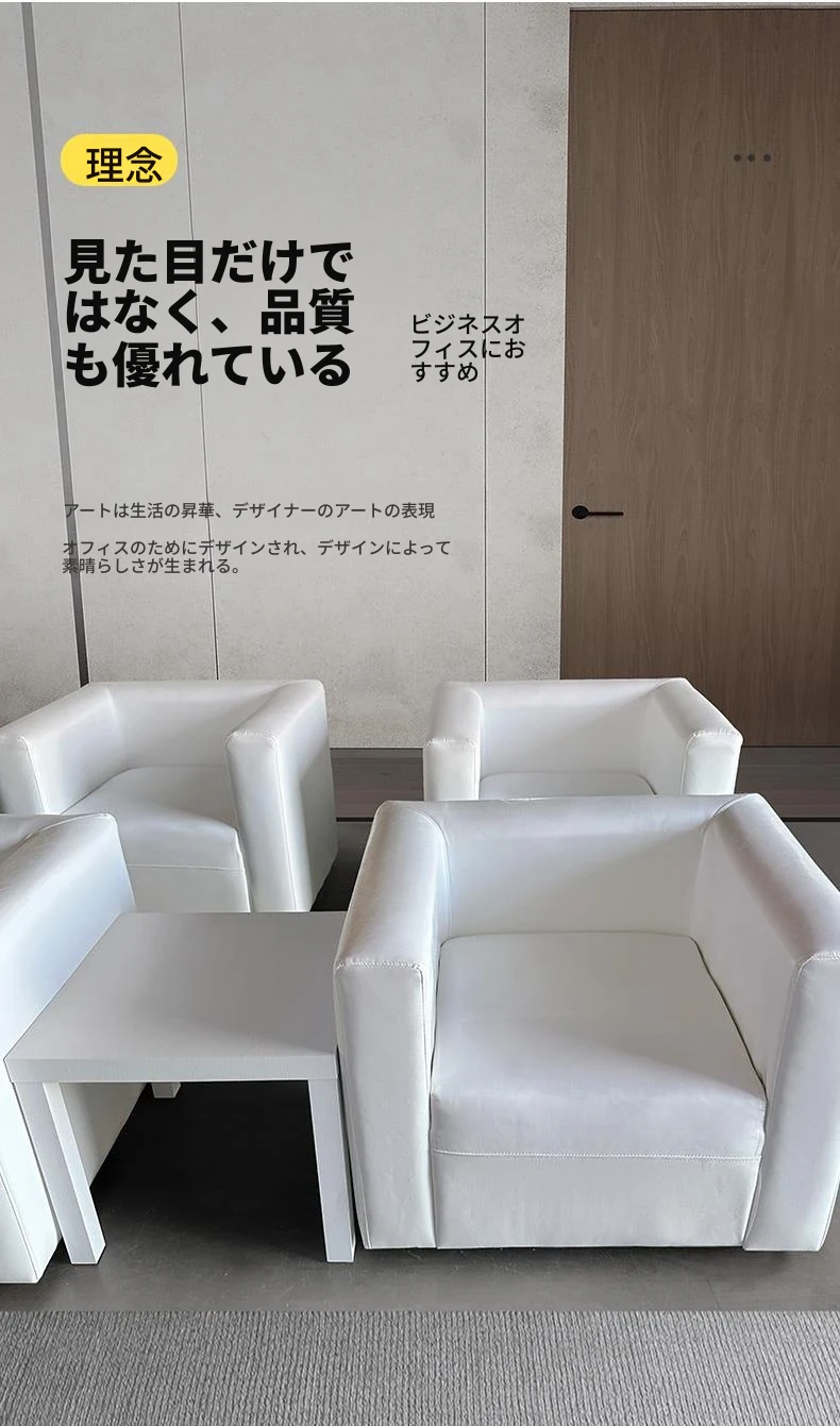 ホワイトバックレスト付きシングルソファ&テーブルセット - 展示会やイベントに最適!小型でスタイリッシュなデザイン、VIP接待室や会議室にぴったりのアイテムです!
