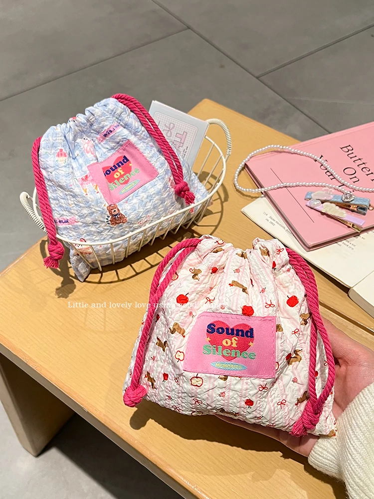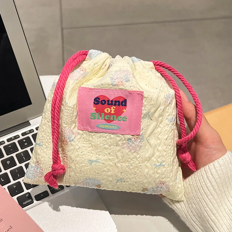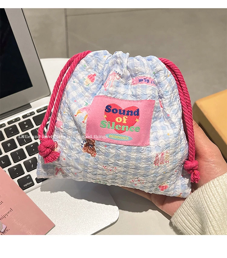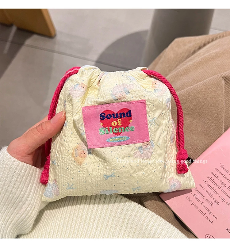 花柄ミニ化粧ポーチ - 便利なドローストリング付き!旅行やお出かけに最適な口紅やメイク直し用ポーチ、小物や生理用品も収納できるおしゃれなアイテムです。あなたの毎日を可愛くサポート!