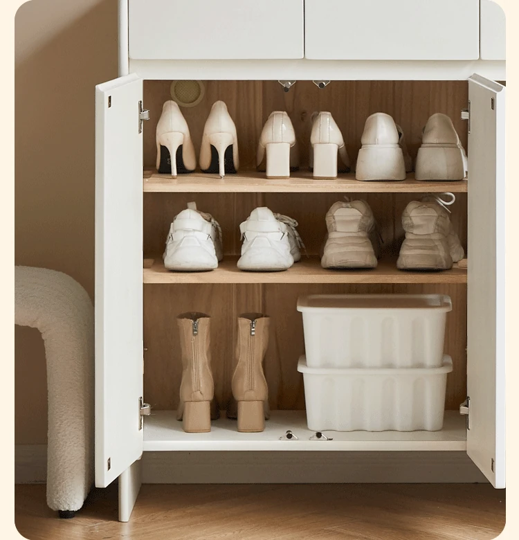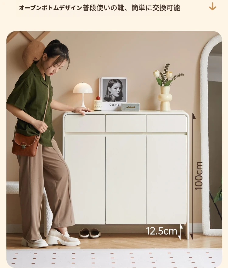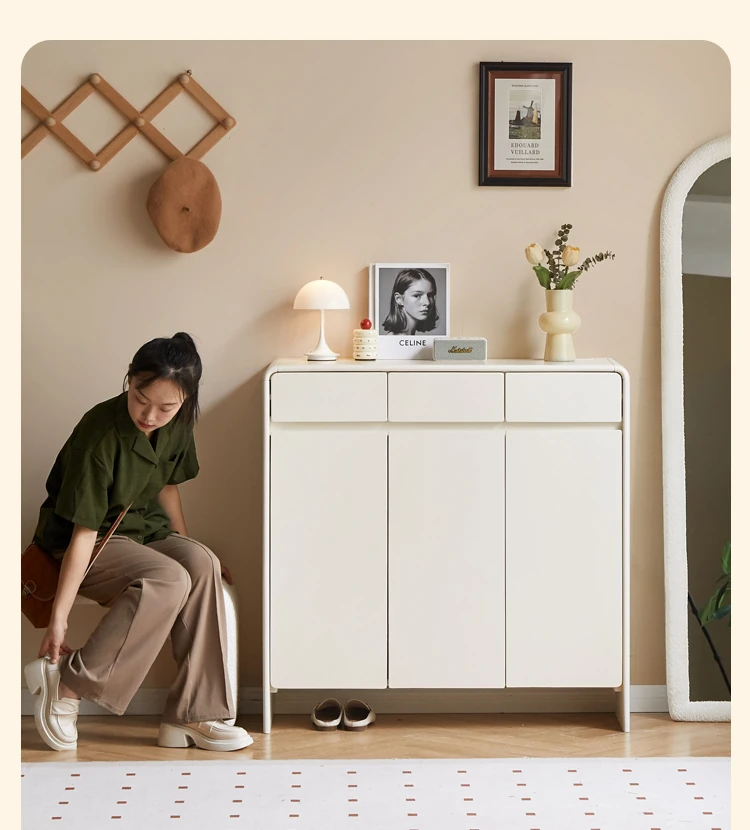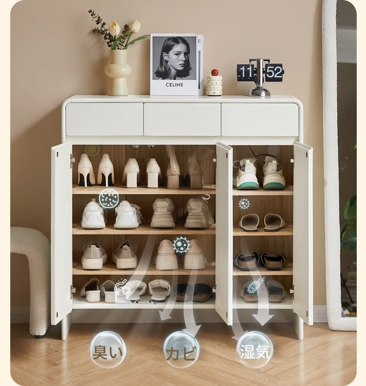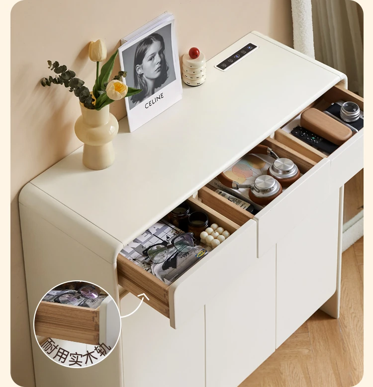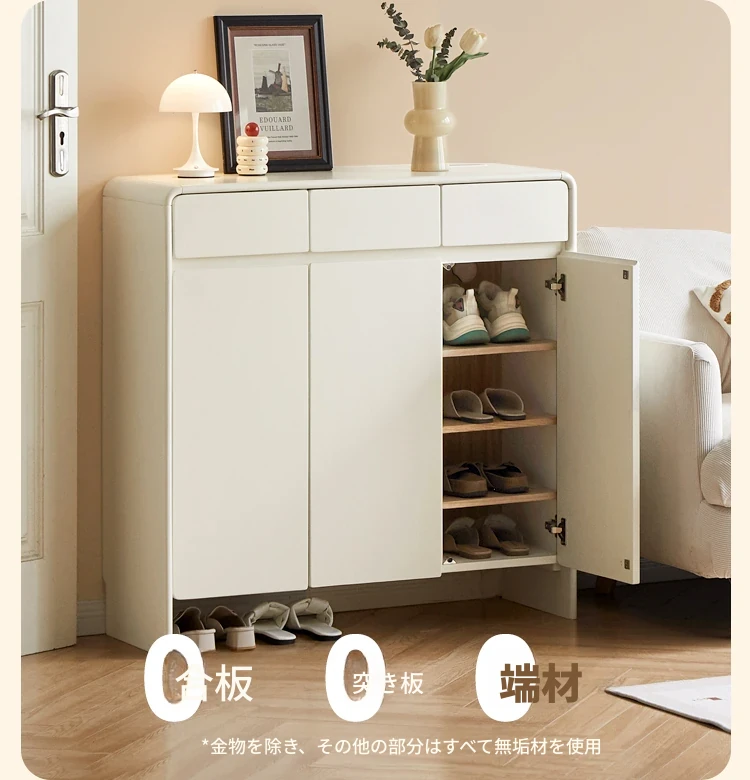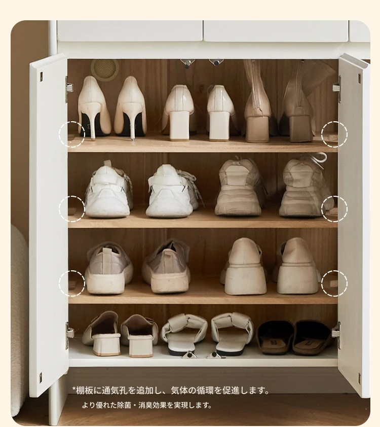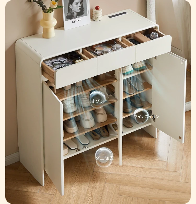 源氏木语ヴィサ智能シューズキャビネット - 消臭・除菌で玄関スッキリ!クリームホワイトのナチュラル実木デザイン、上質なエントランス収納をあなたに。
