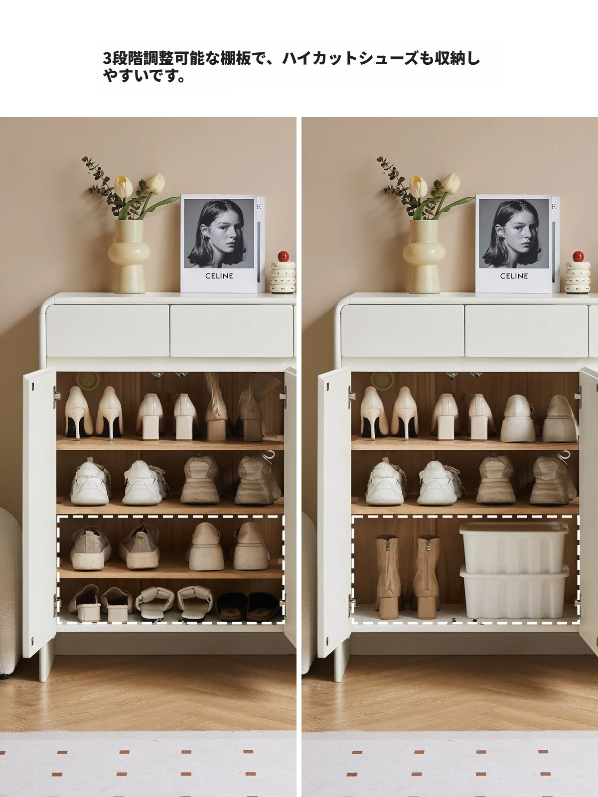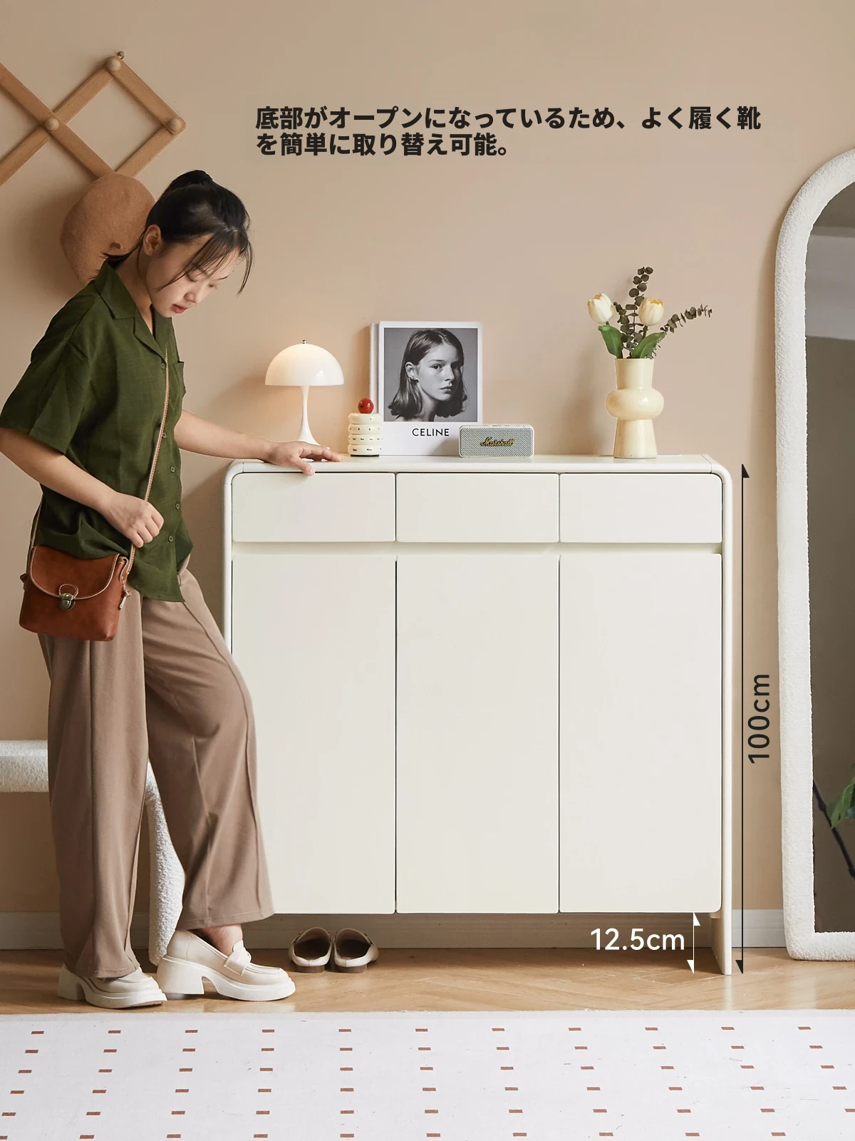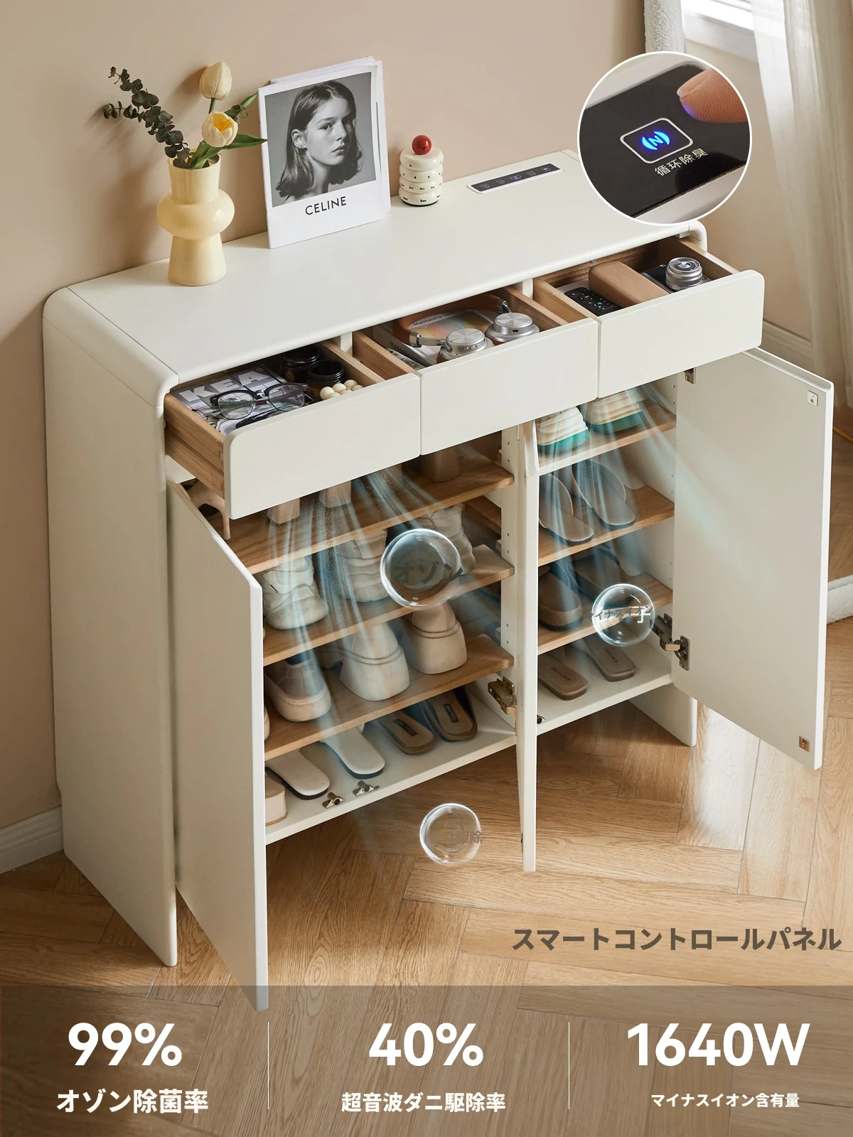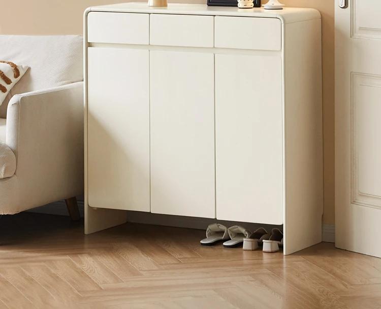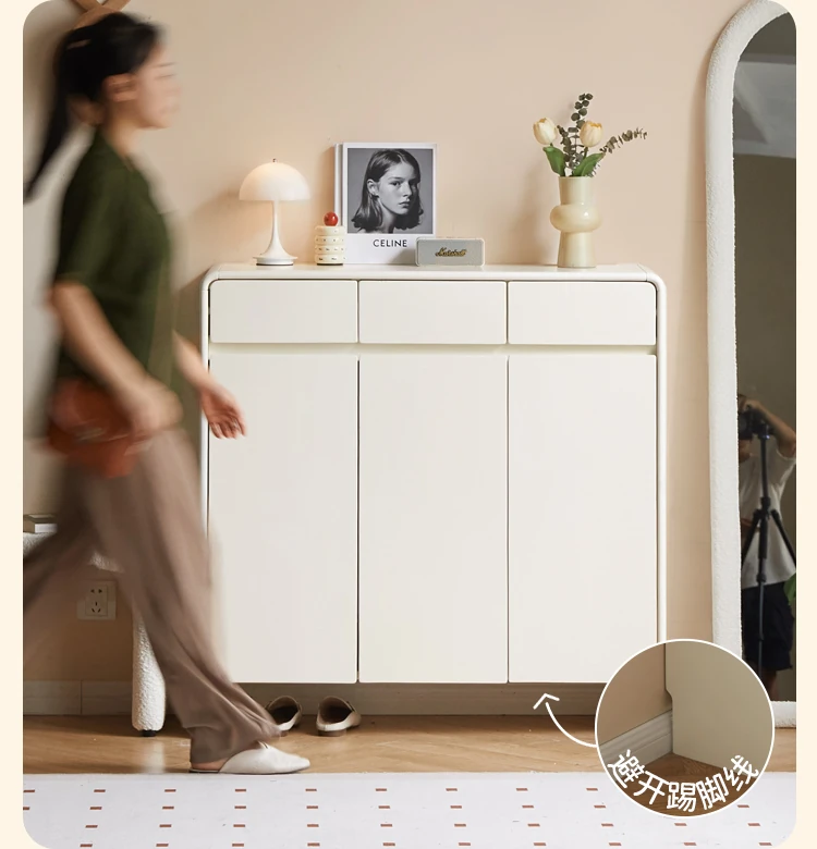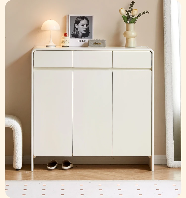 源氏木语ヴィサ智能シューズキャビネット - 消臭・除菌で玄関スッキリ!クリームホワイトのナチュラル実木デザイン、上質なエントランス収納をあなたに。
