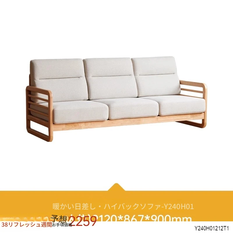 【源氏木语×维莎】本格派モダンミニマルデザインのリビング用ファブリックソファ - 小型住宅にぴったりの3人掛け無垢材ソファ!北欧スタイルの快適空間づくりに最適!