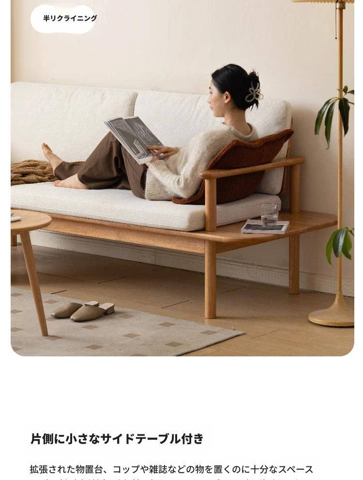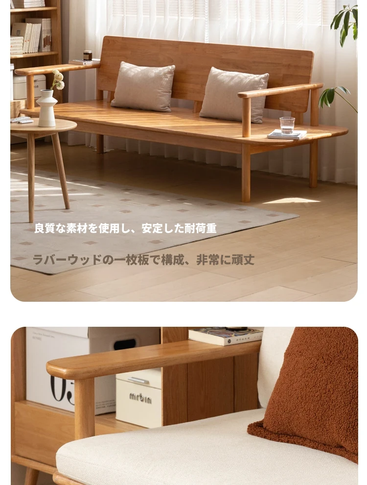 源氏木语x维莎の天然木製ソファ - 小型リビングにぴったりな3人掛け!四季対応で快適な座り心地、自然素材の美しさを感じるシンプルデザインソファ!