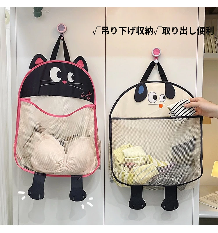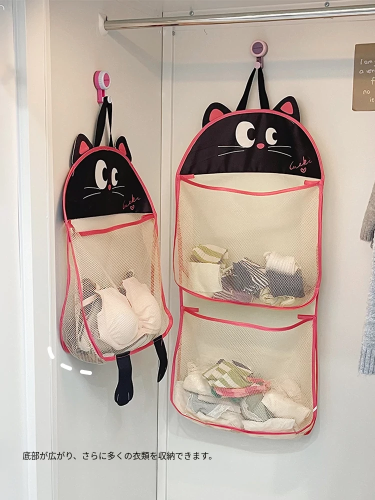 宿舎・衣類収納に最適!靴下・下着もスッキリ整理できる櫛掛け収納袋!トイレやクローゼットに便利なネットポケット付き!おしゃれで実用的な収納アイテムで、スペースを有効活用!