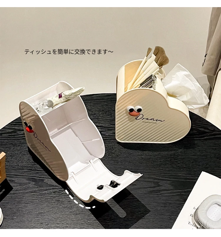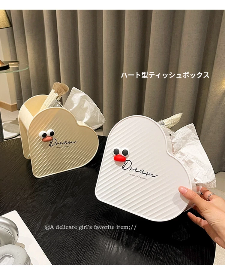 ハート型ティッシュボックス - おしゃれなリビングやドレッサーにぴったり!多機能収納ボックスで、シンプルなインスタ風デザイン。あなたの空間を優雅に彩ります!