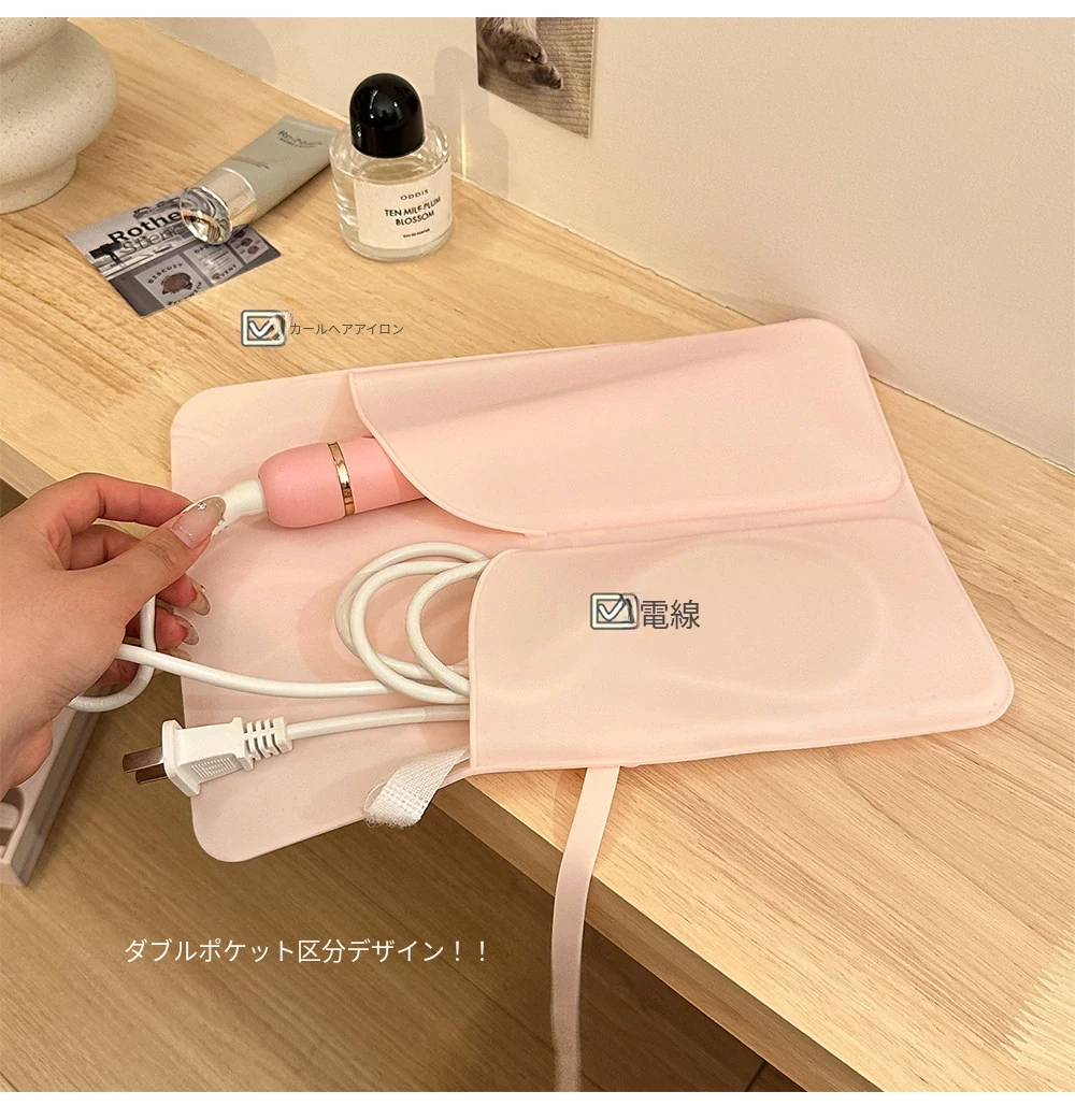 熱から守るシリコン製カールアイロン収納ポーチ - 旅行にも便利なストレートアイロン・ヘアアイロン保護ケース!あなたのスタイリングツールを安全に持ち運びましょう!
