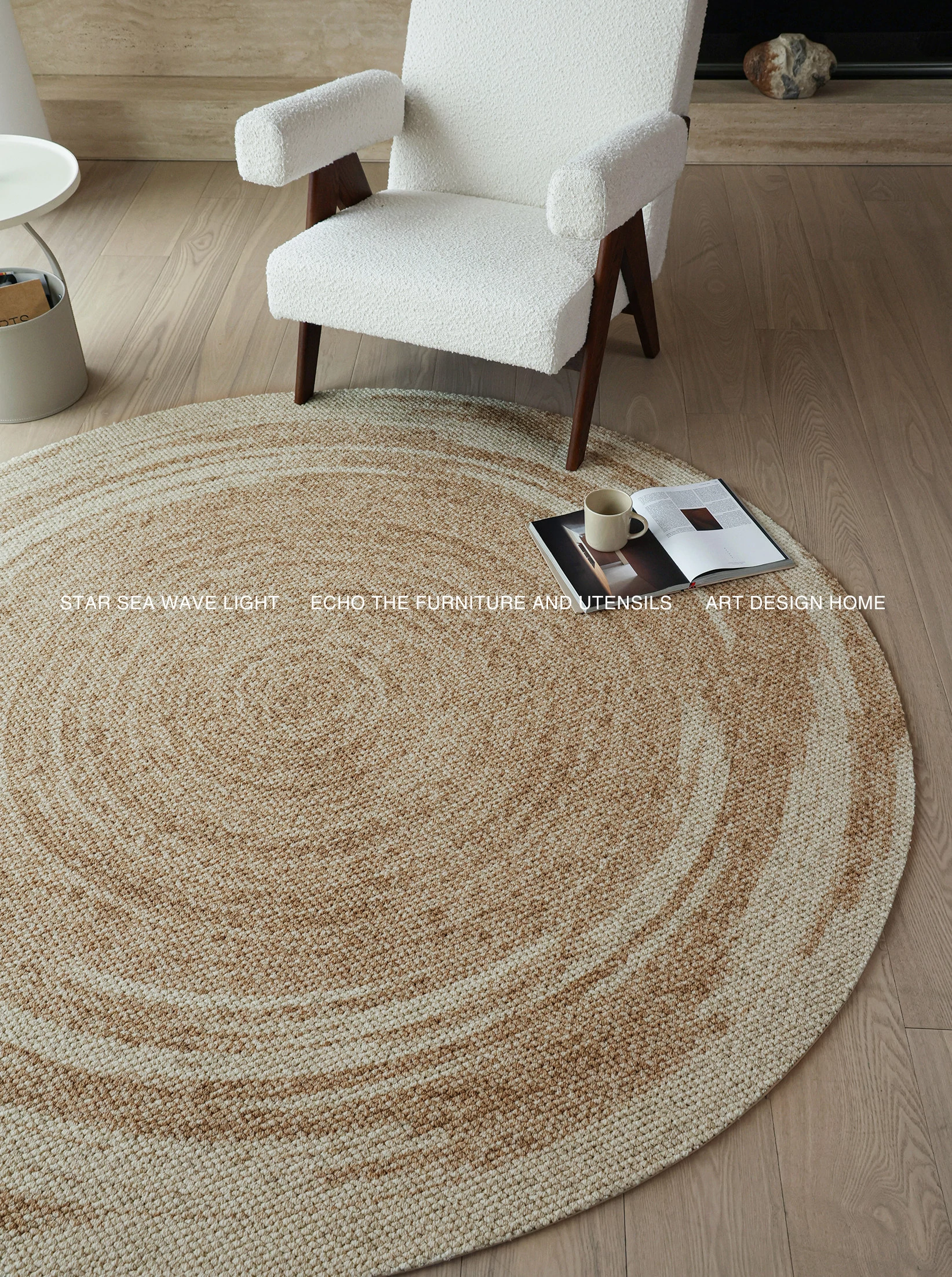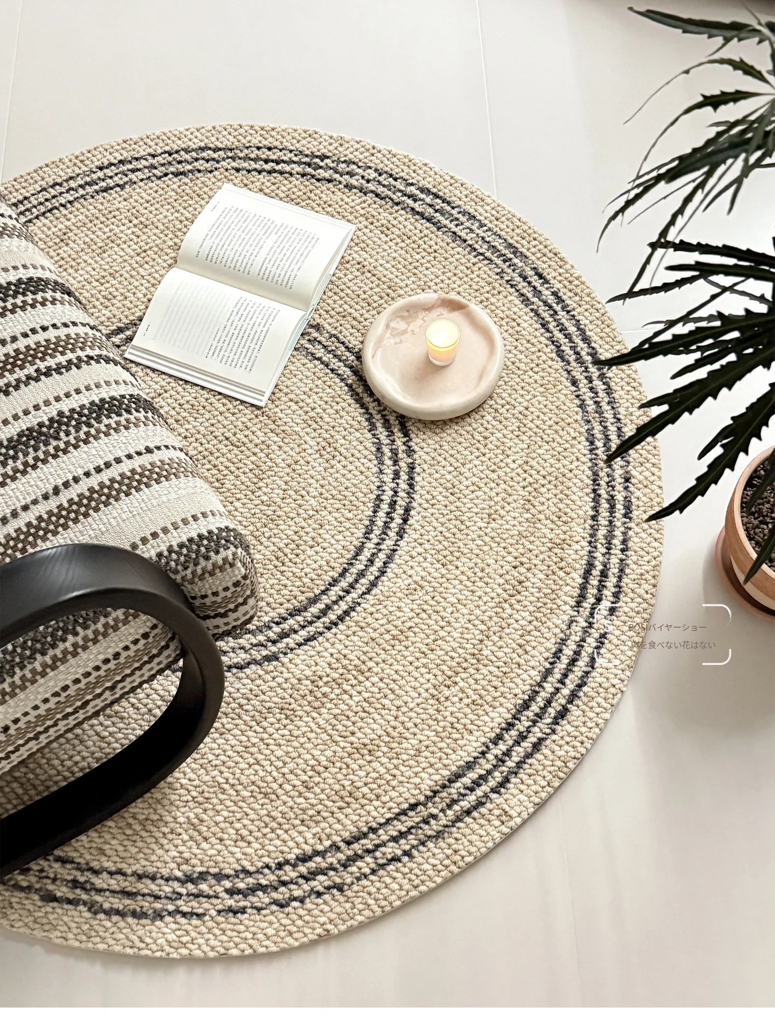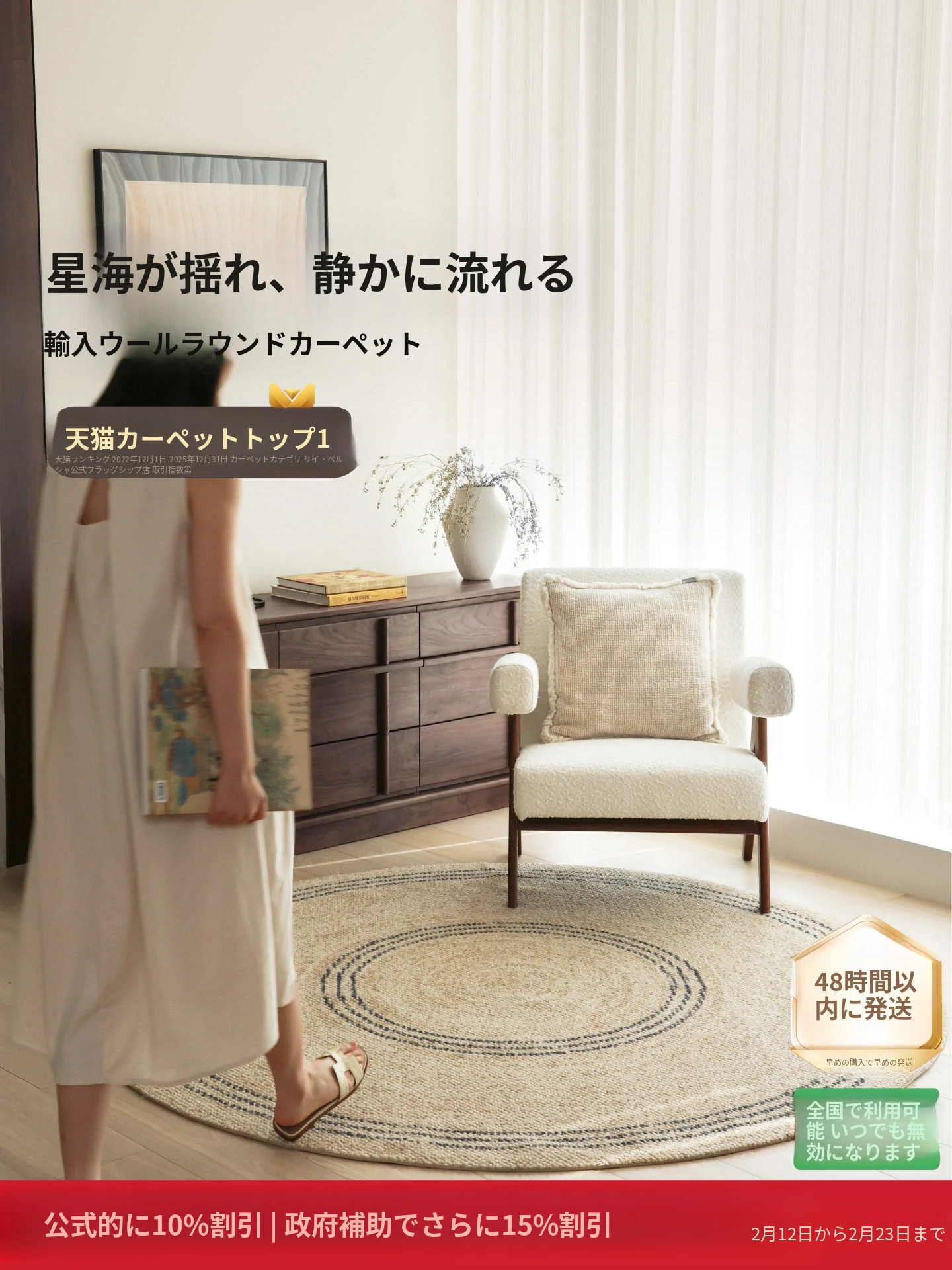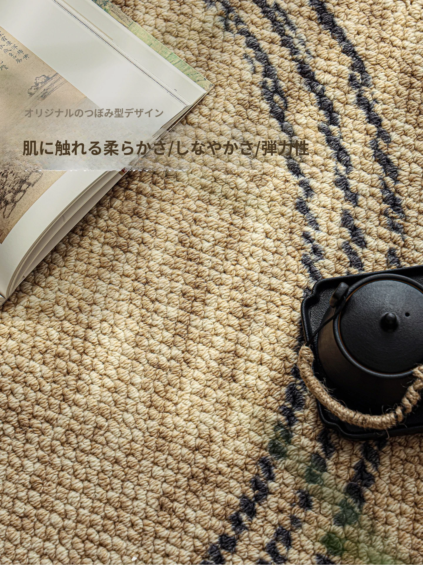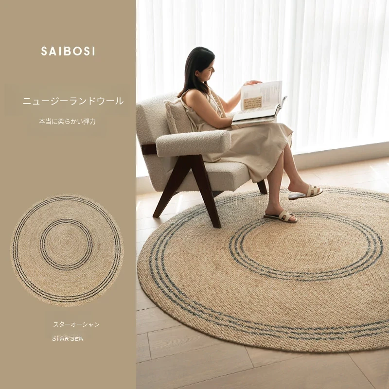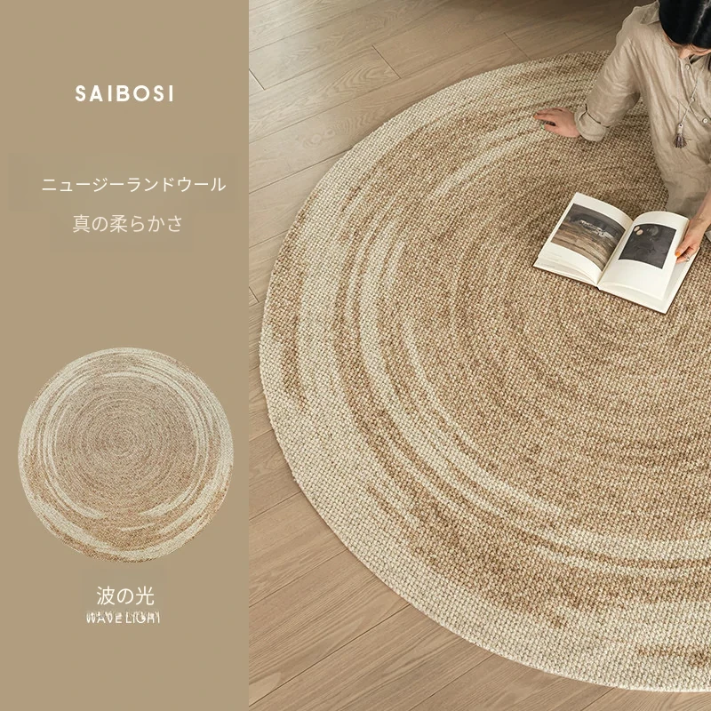 サイボス星海輸入ウールラウンドカーペット 新中式スタイル リビングルームや寝室にぴったりのナチュラルウッド調ベッドサイドマットで、快適さとスタイルを両立!