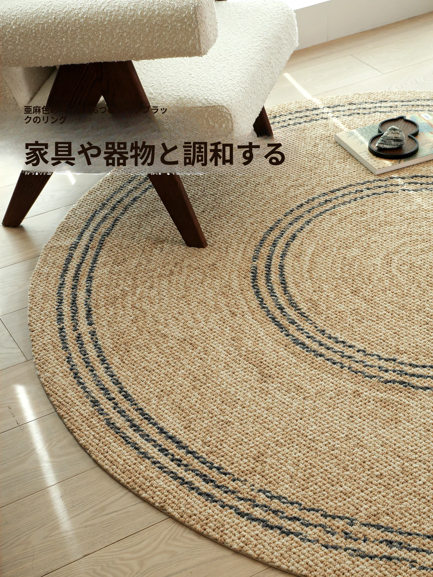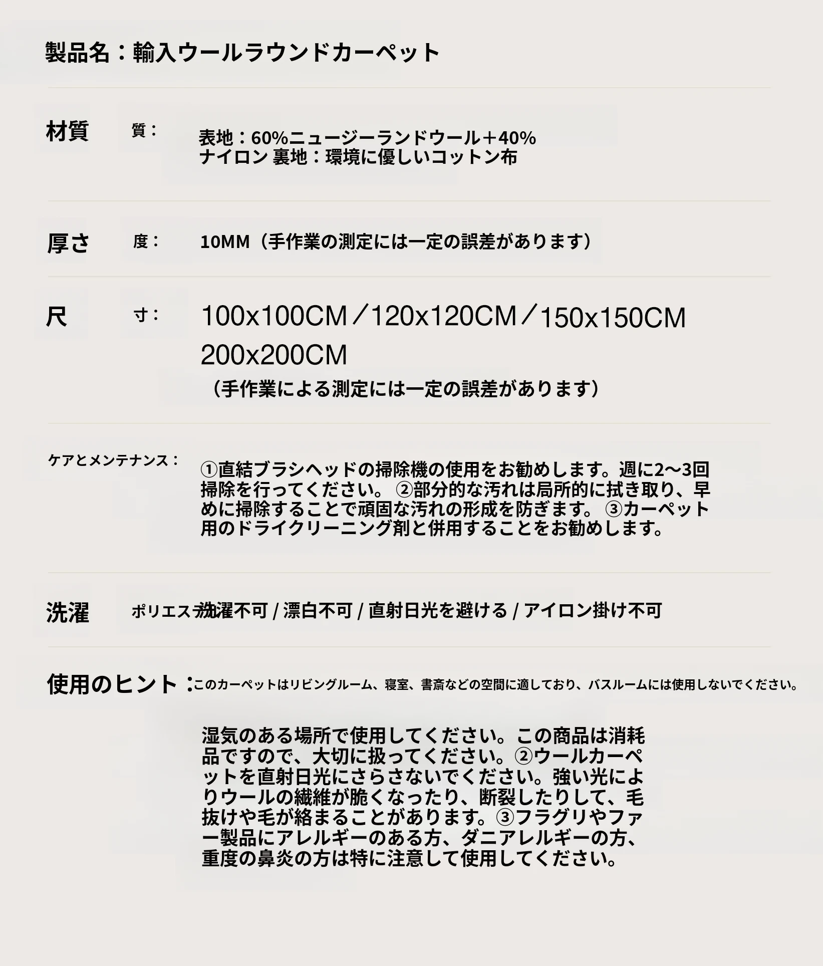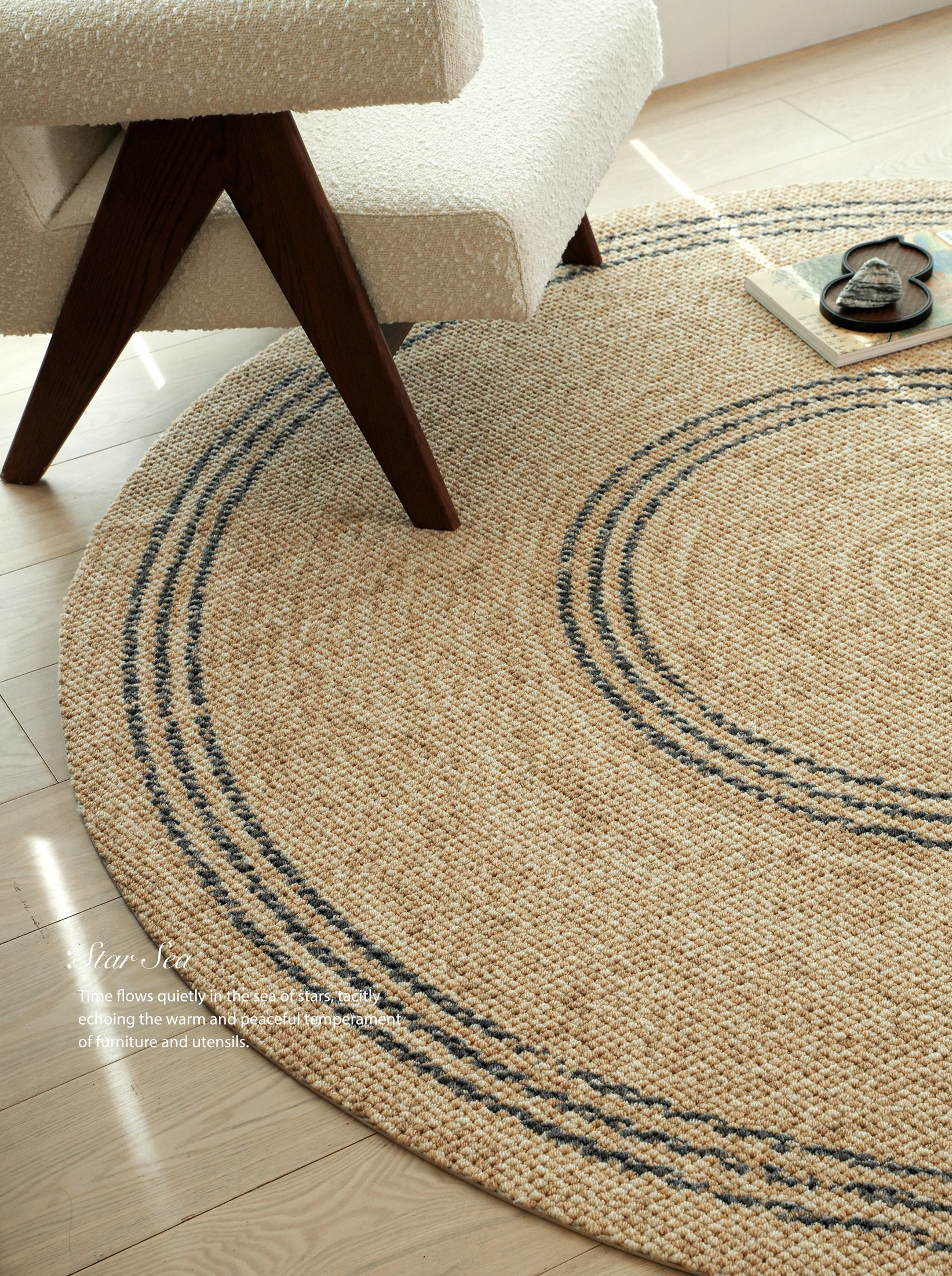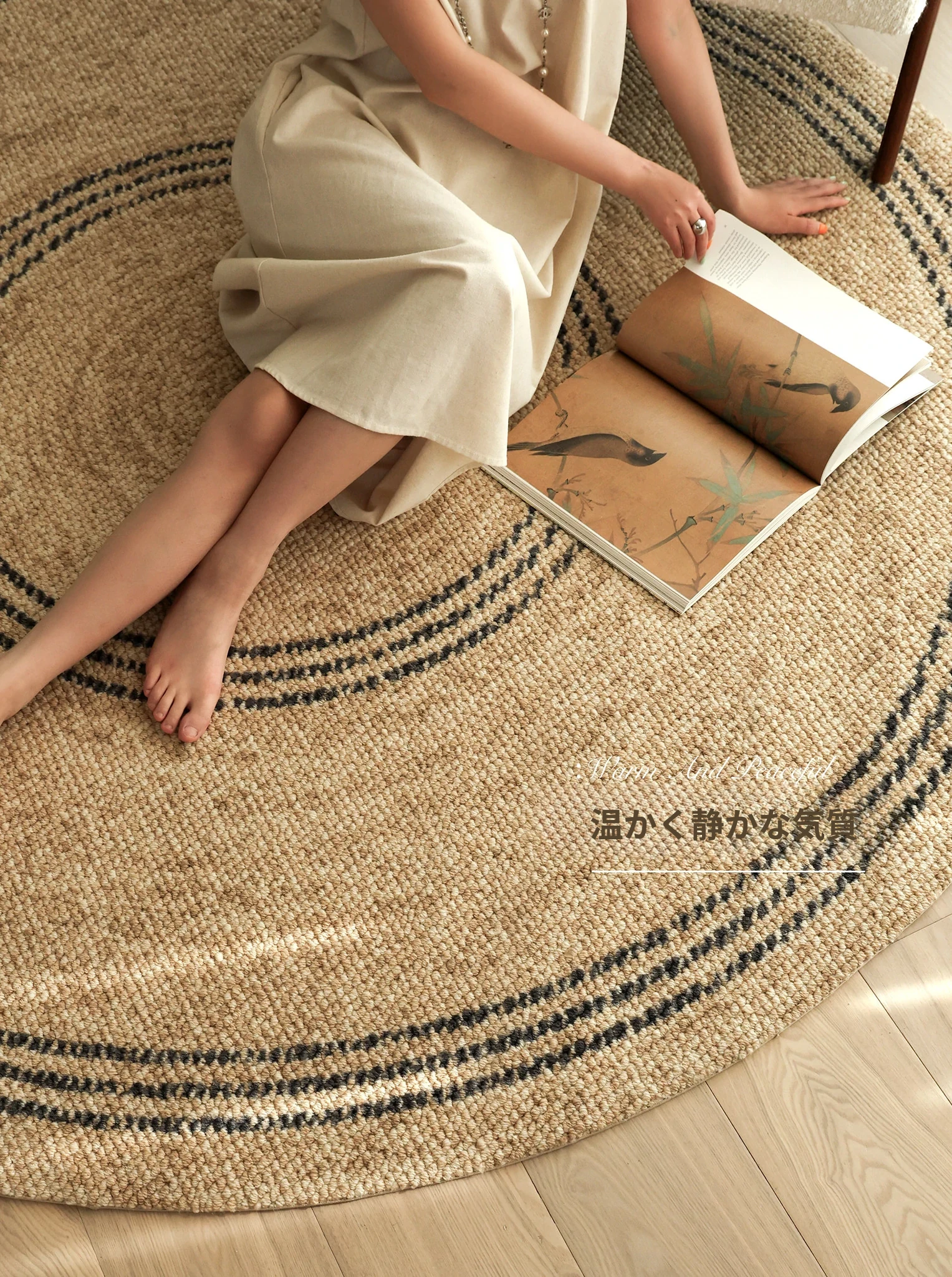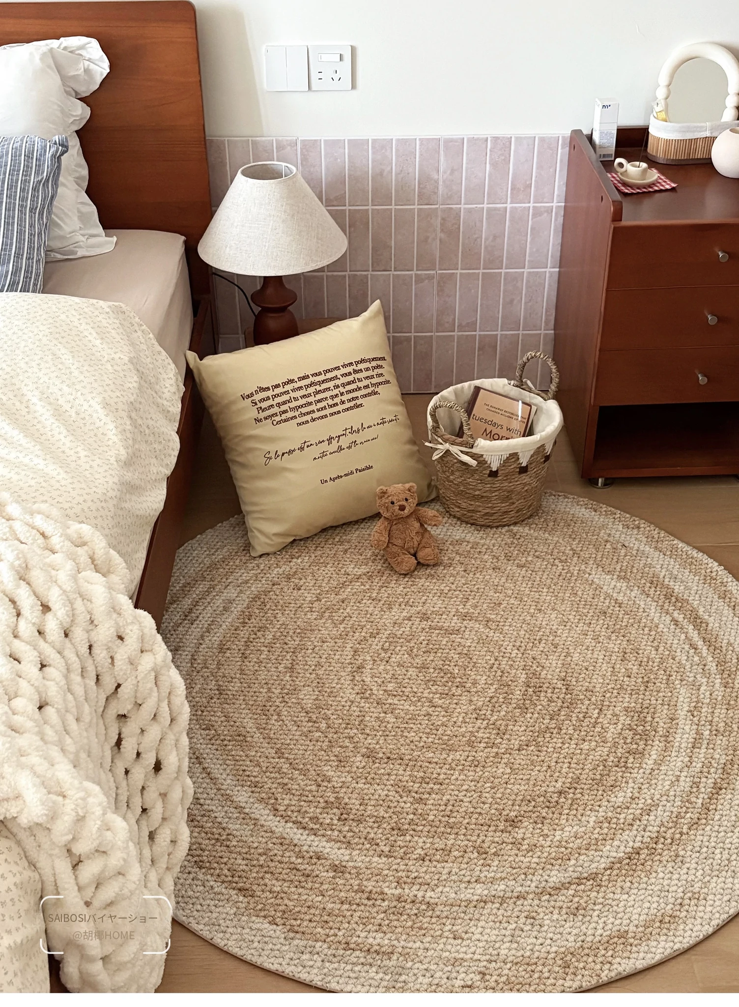 サイボス星海輸入ウールラウンドカーペット 新中式スタイル リビングルームや寝室にぴったりのナチュラルウッド調ベッドサイドマットで、快適さとスタイルを両立!