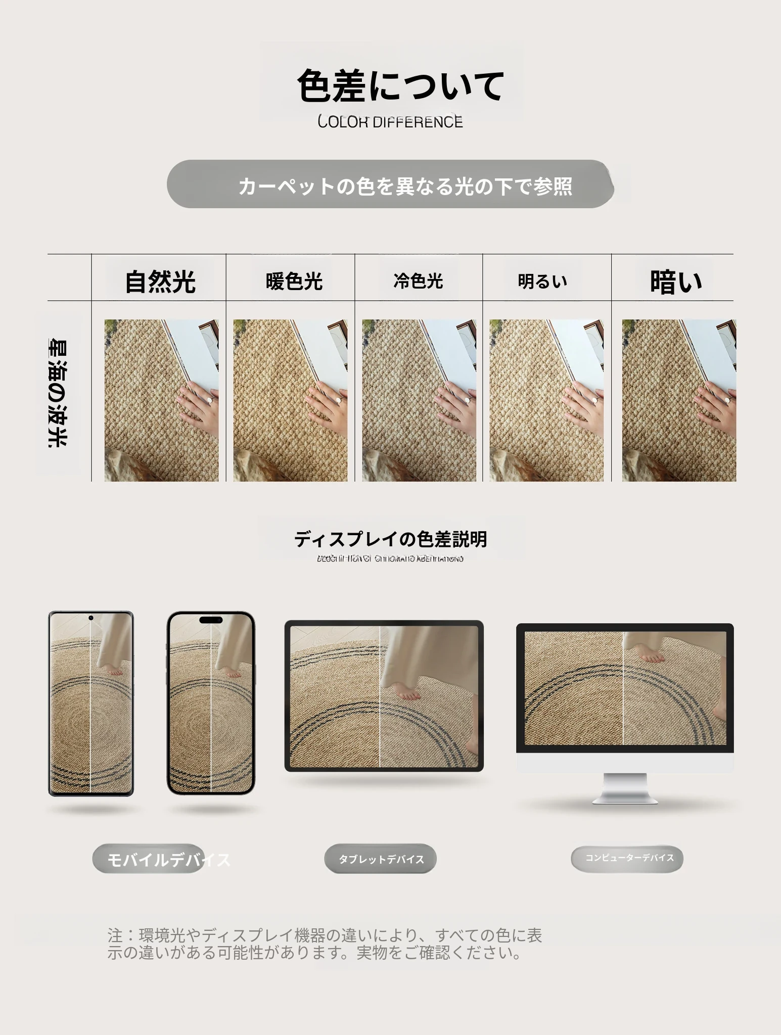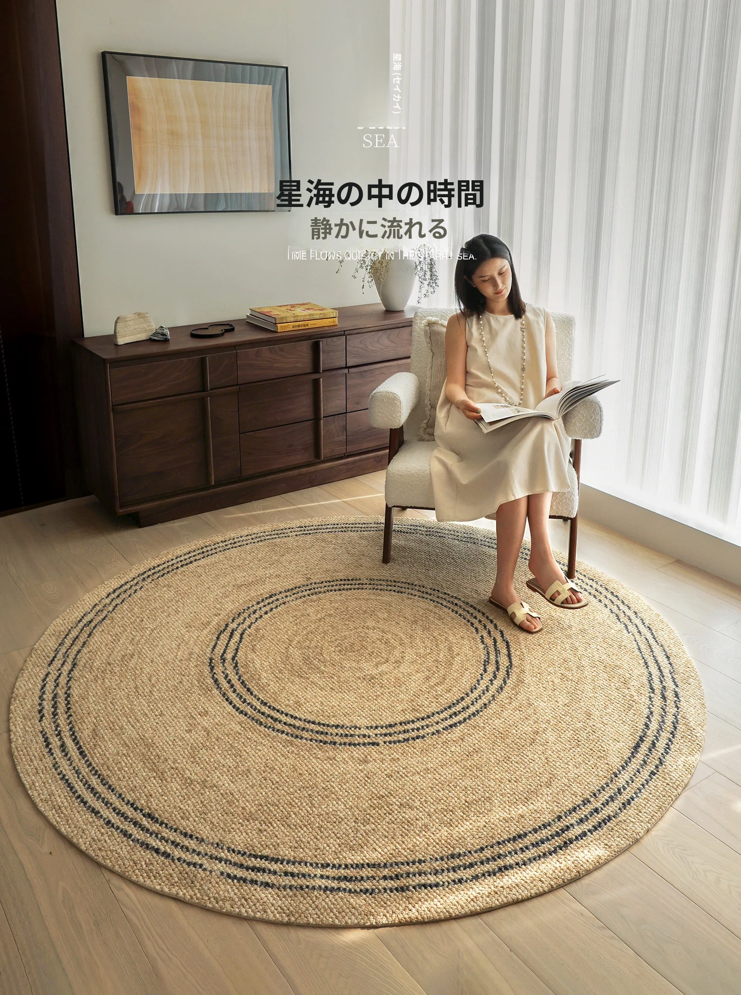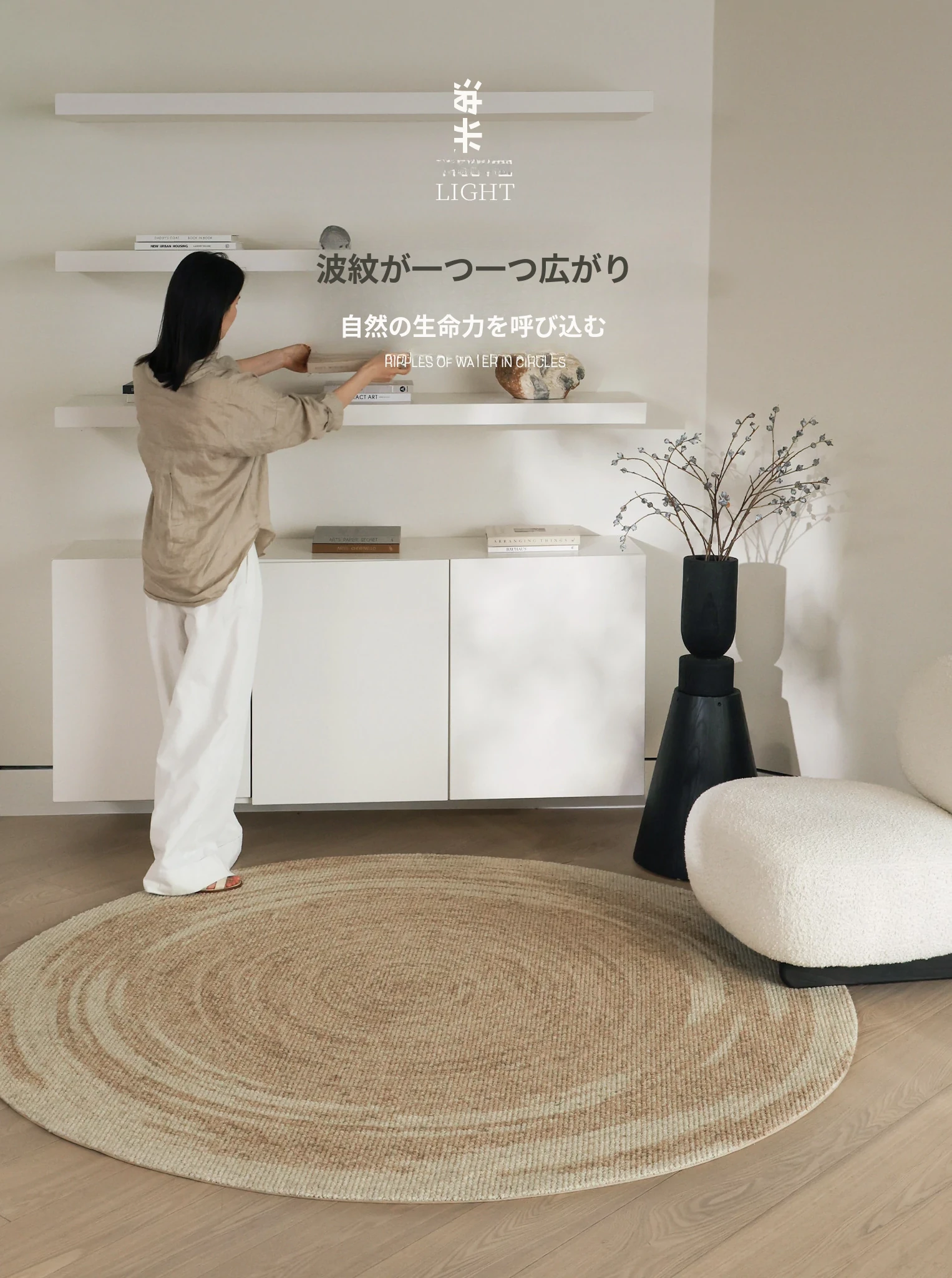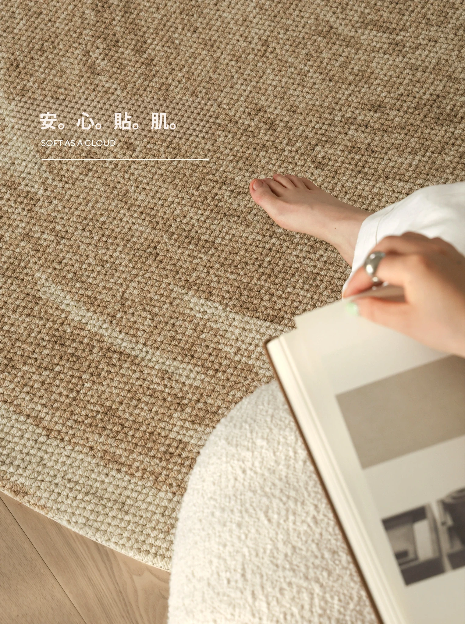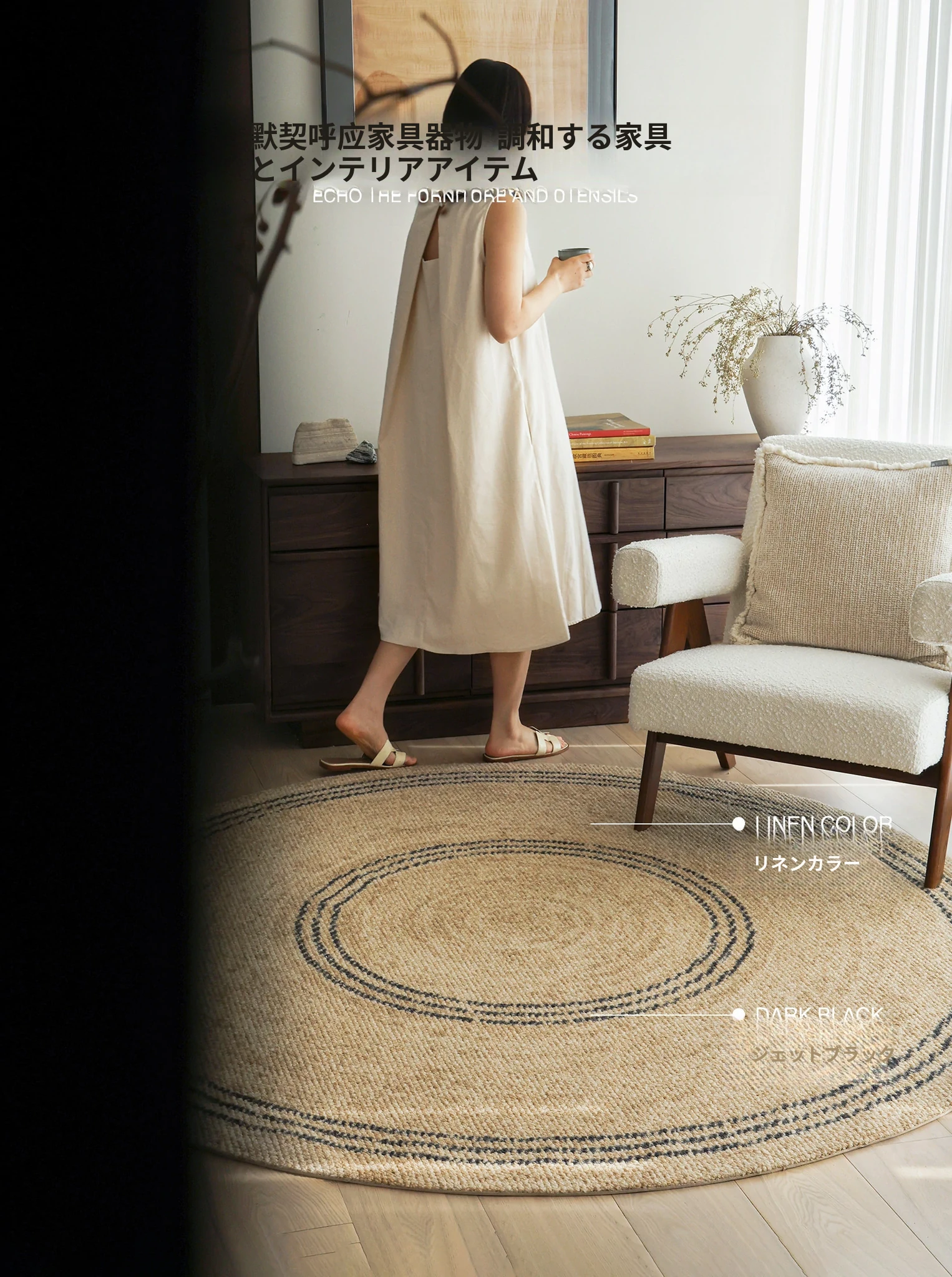 サイボス星海輸入ウールラウンドカーペット 新中式スタイル リビングルームや寝室にぴったりのナチュラルウッド調ベッドサイドマットで、快適さとスタイルを両立!