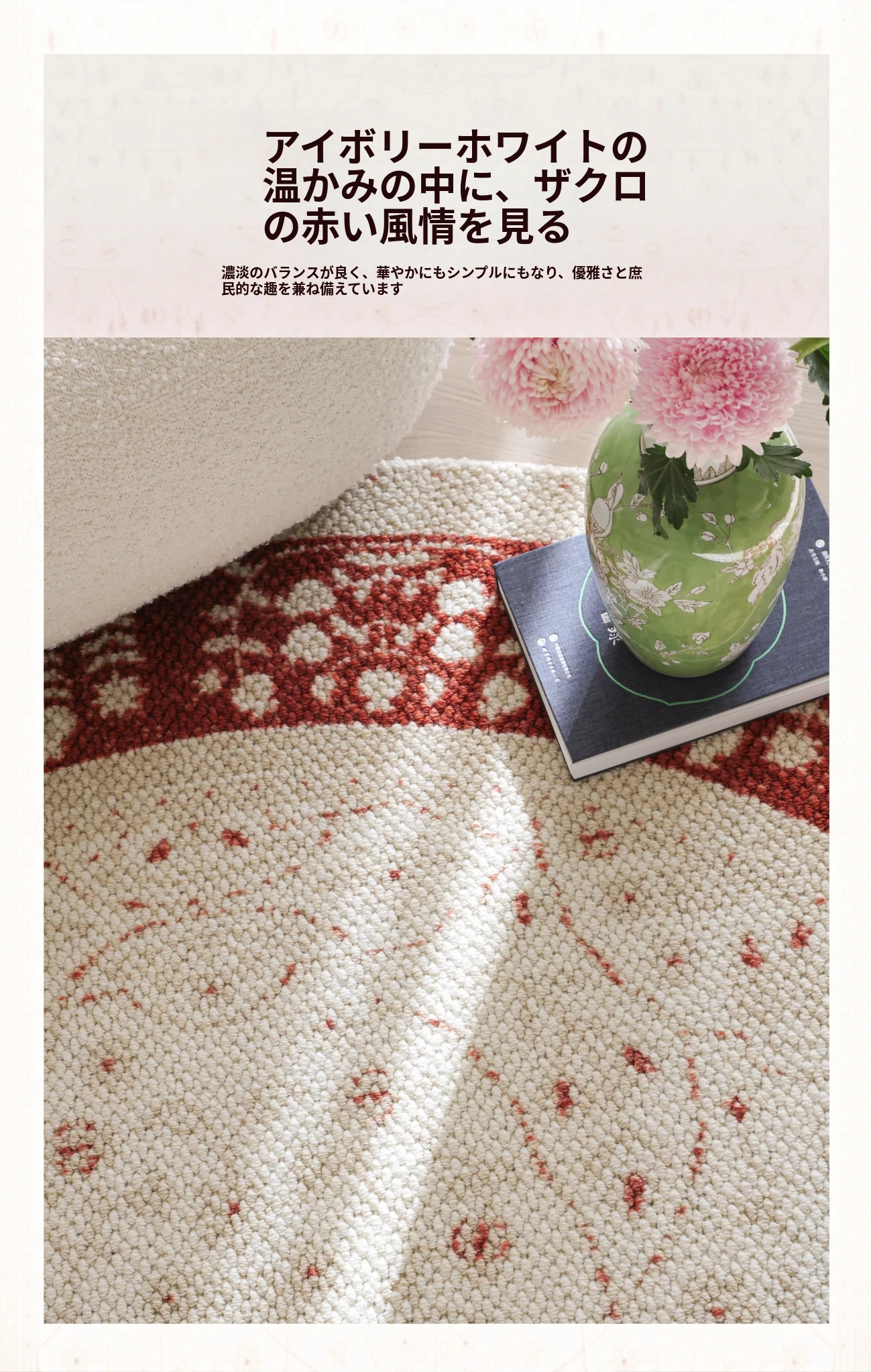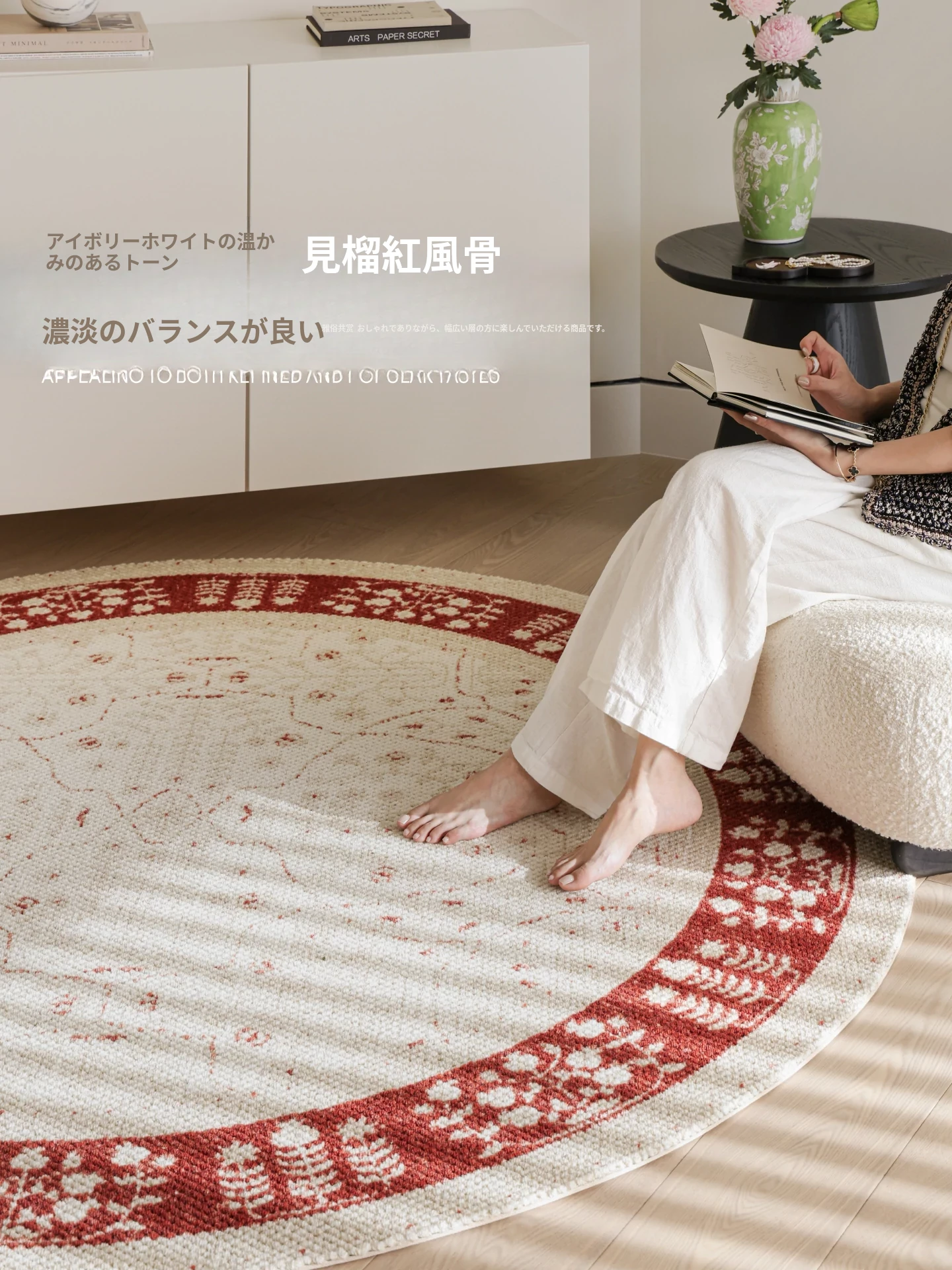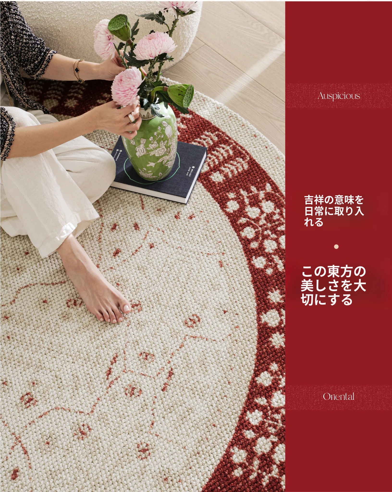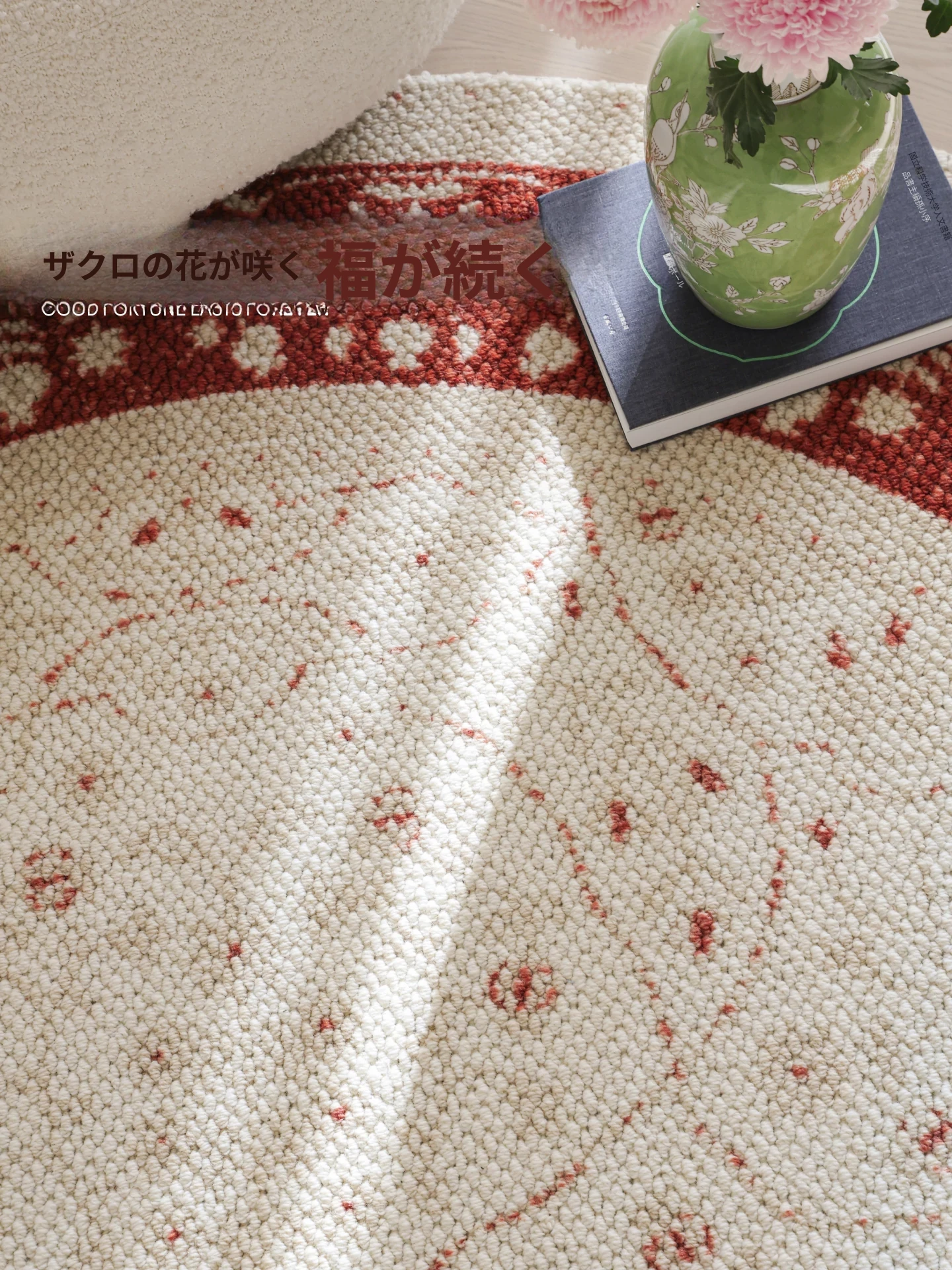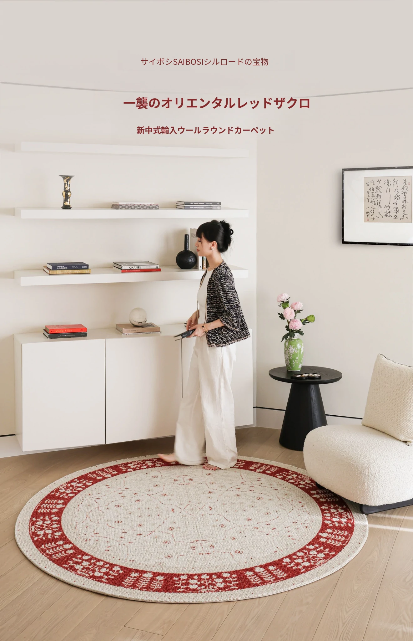 インポートのサイボス・ザクロウールラウンドカーペット - リビング、書斎、寝室、クローゼットに最適!新しい中式デザインで、軽やかなラグジュアリー感を演出。上質な空間をお楽しみください。