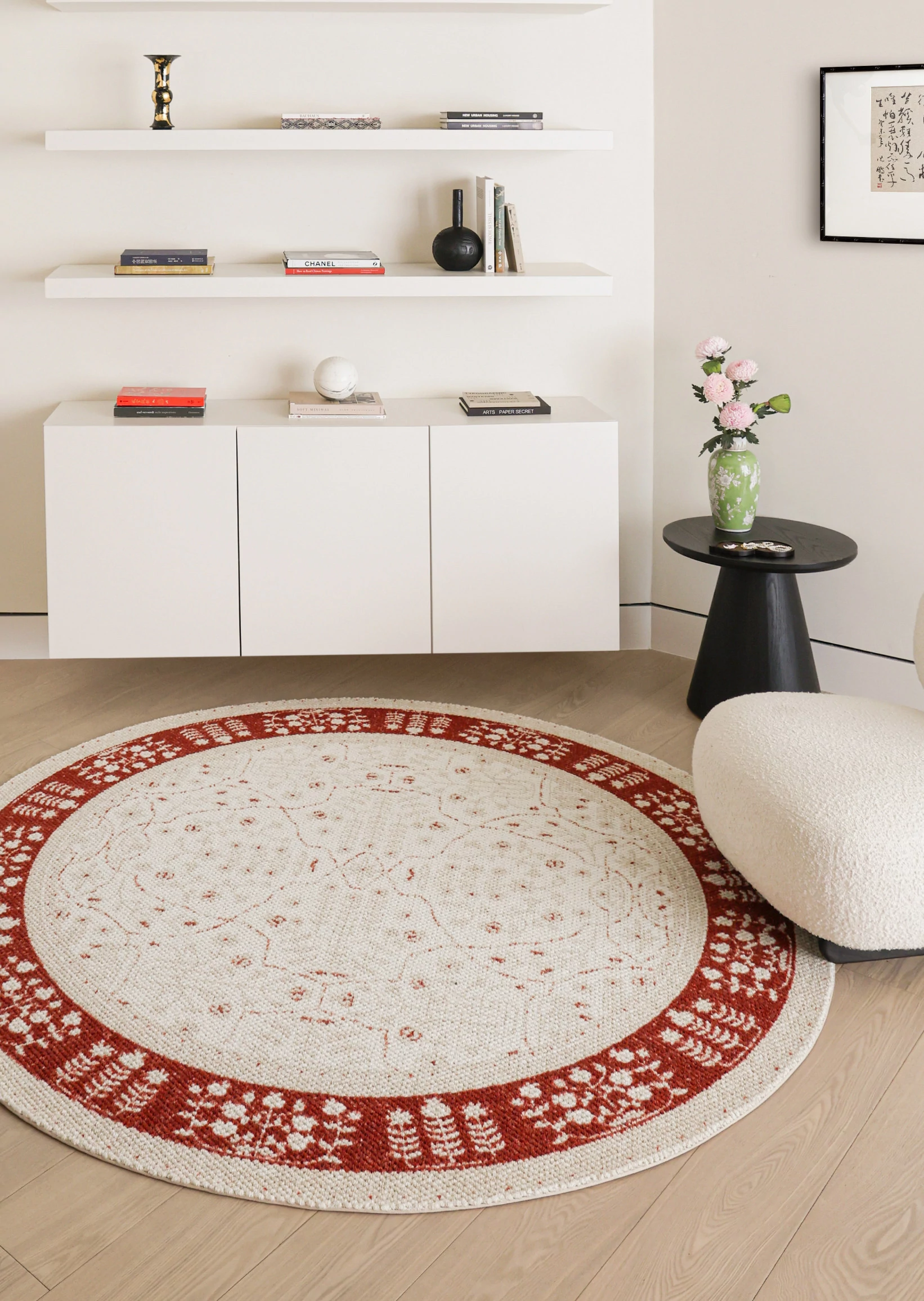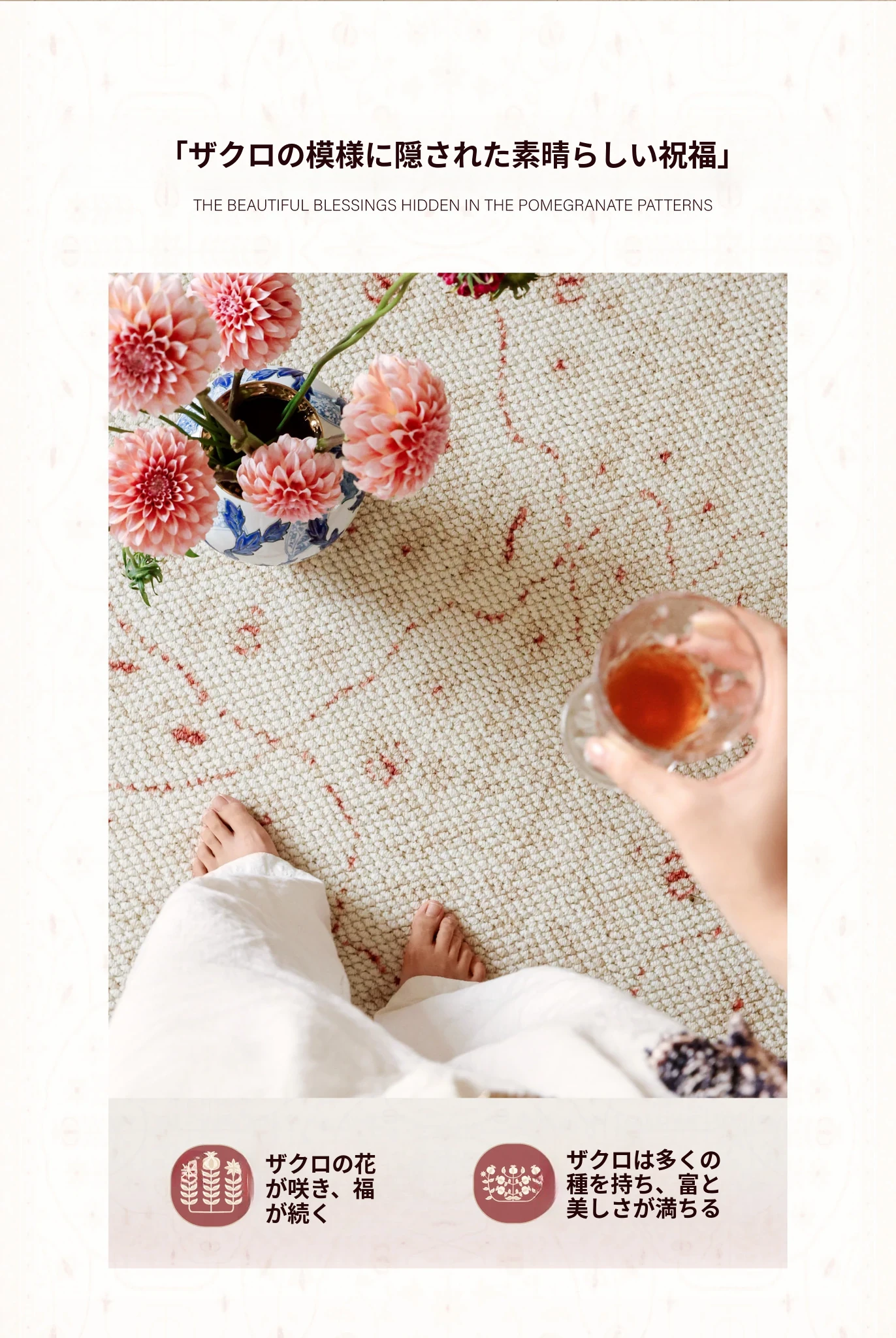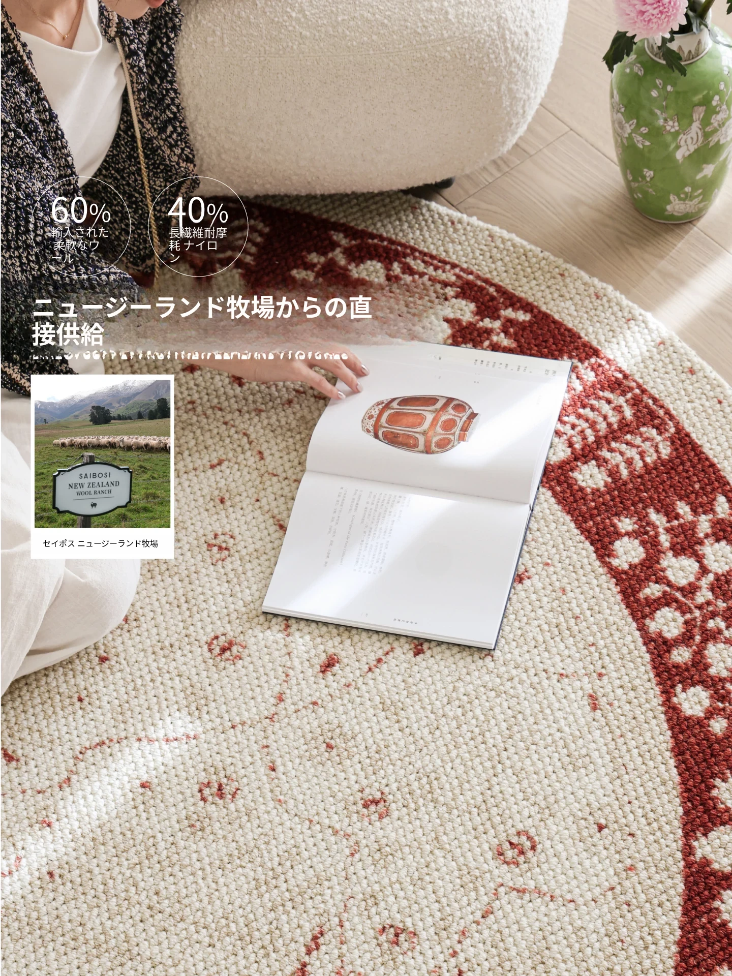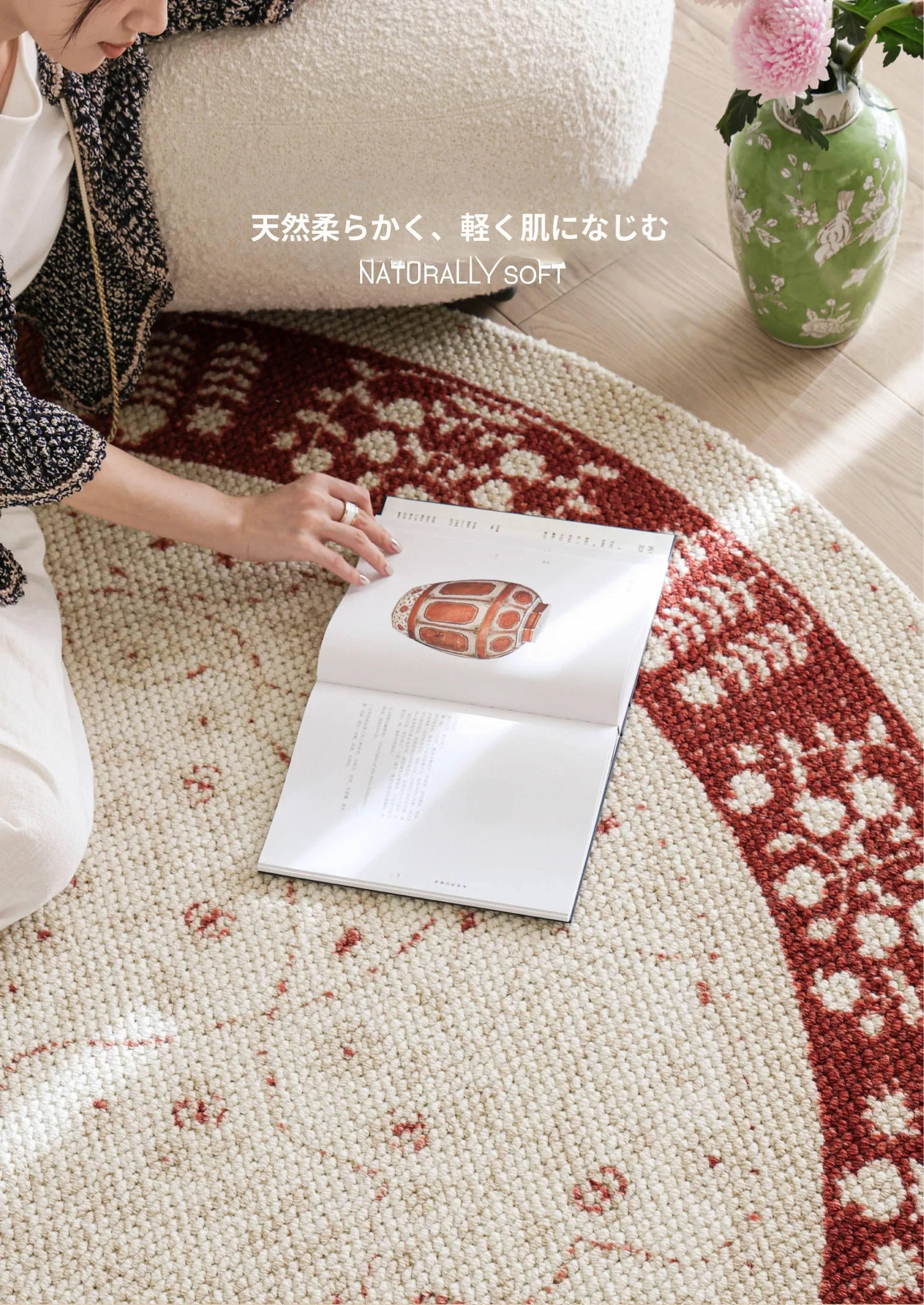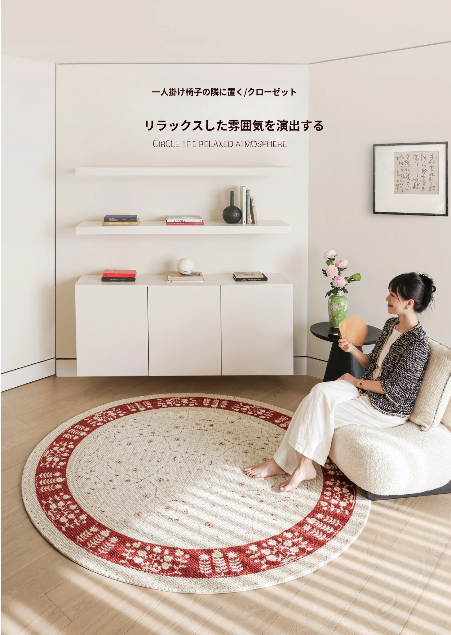 インポートのサイボス・ザクロウールラウンドカーペット - リビング、書斎、寝室、クローゼットに最適!新しい中式デザインで、軽やかなラグジュアリー感を演出。上質な空間をお楽しみください。