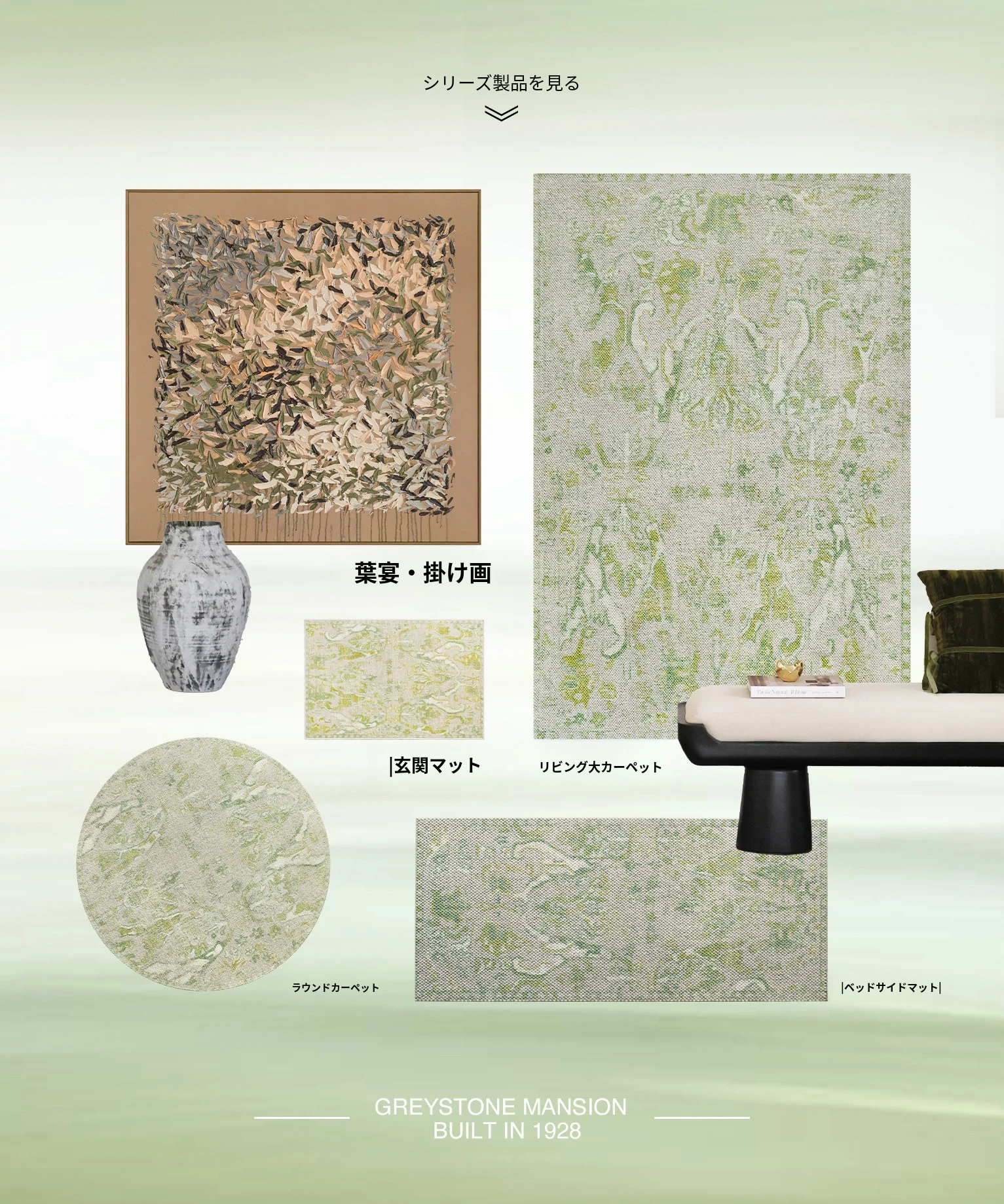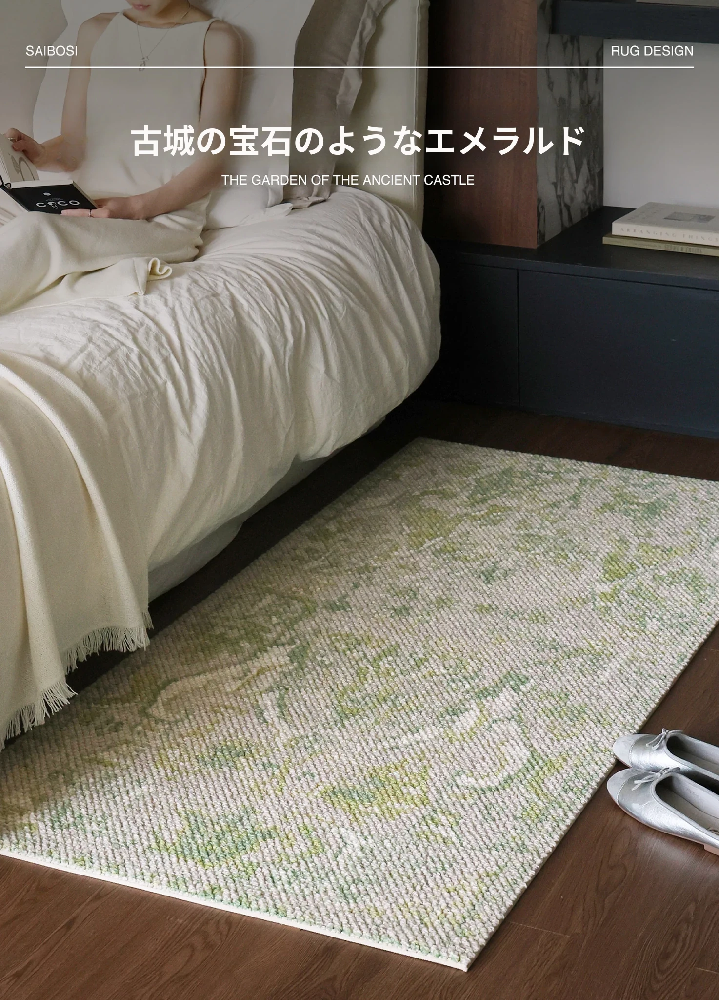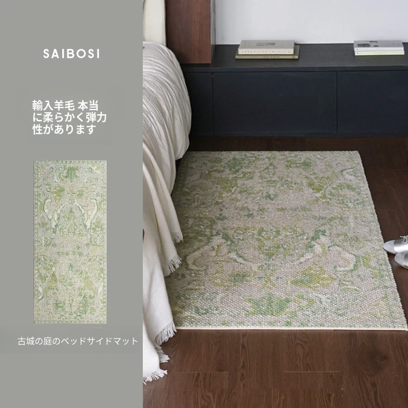 セイボス古城の庭園からインスパイアされた輸入ウールベッドサイドマット - 中古風のラグジュアリーな高級衣装部屋や寝室にぴったりな一品!