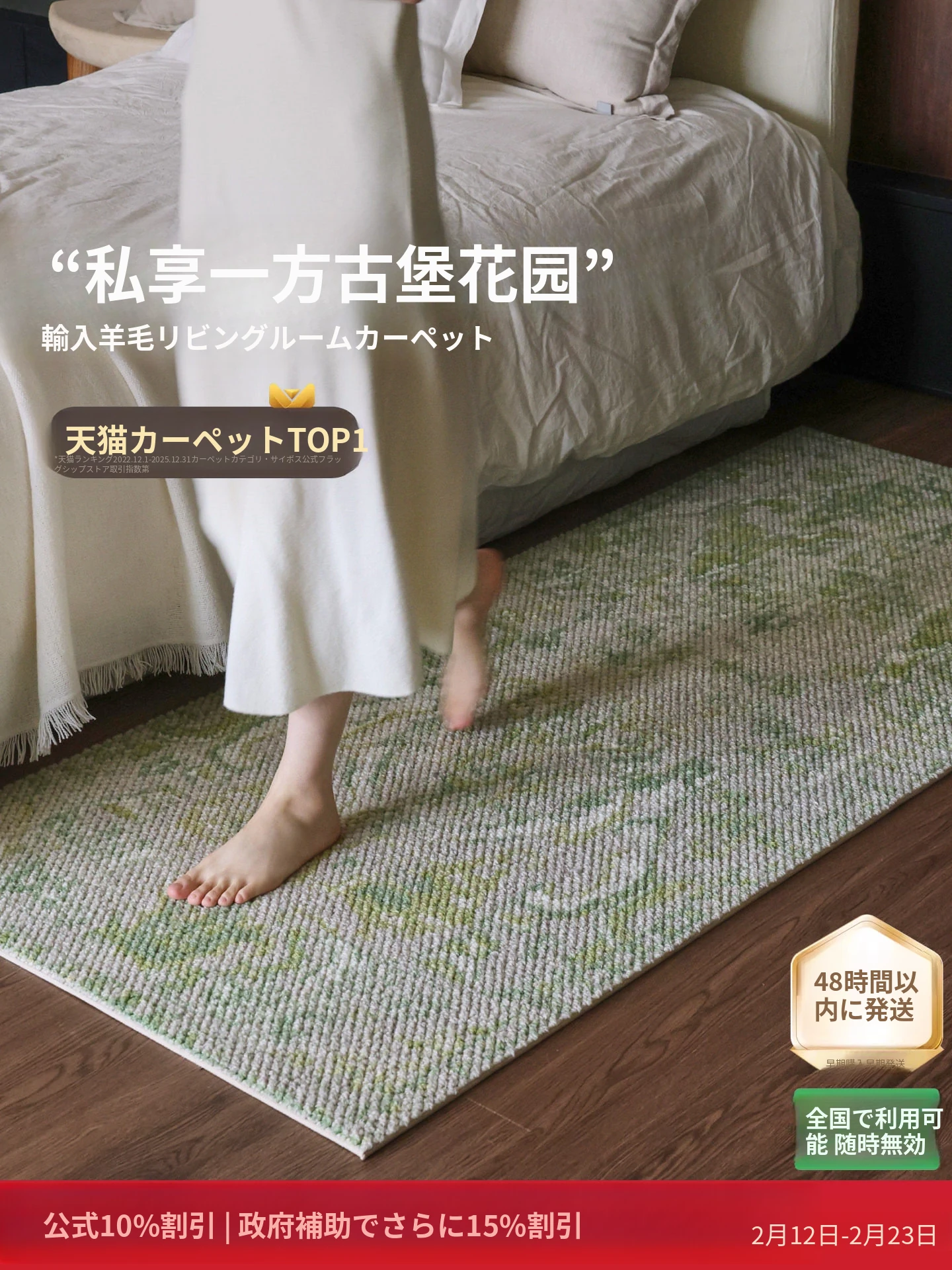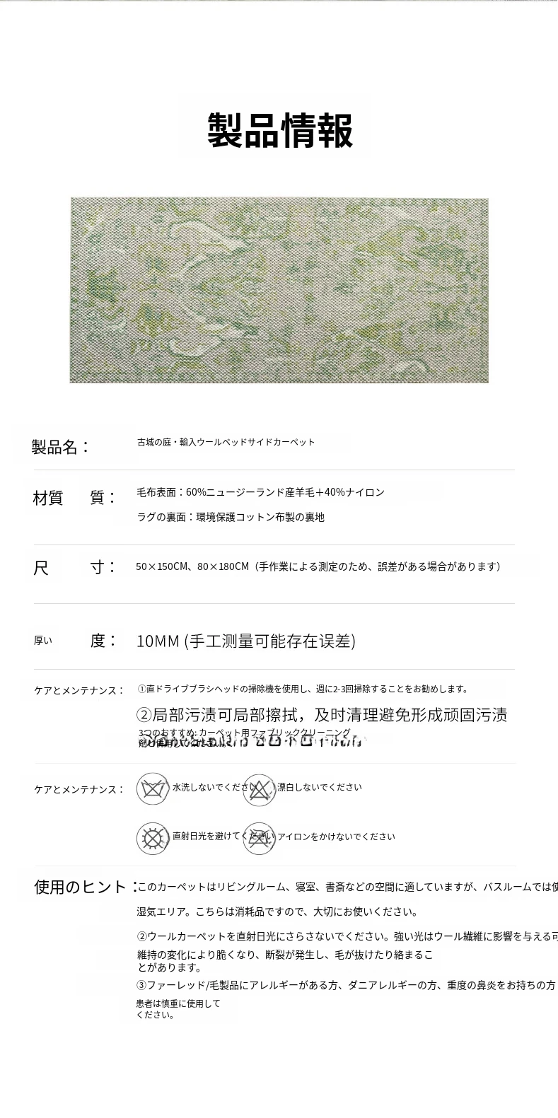 古城の庭のベッドサイドマット (輸入ウール)