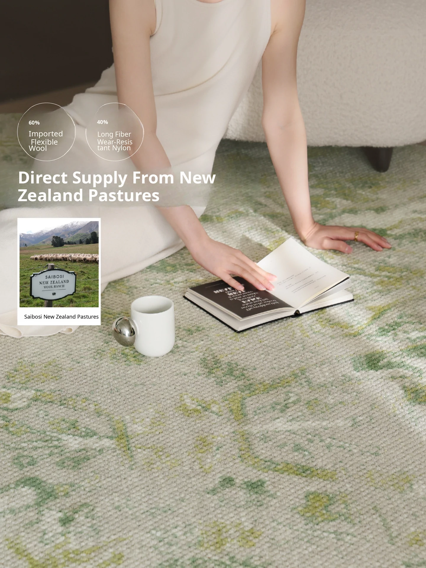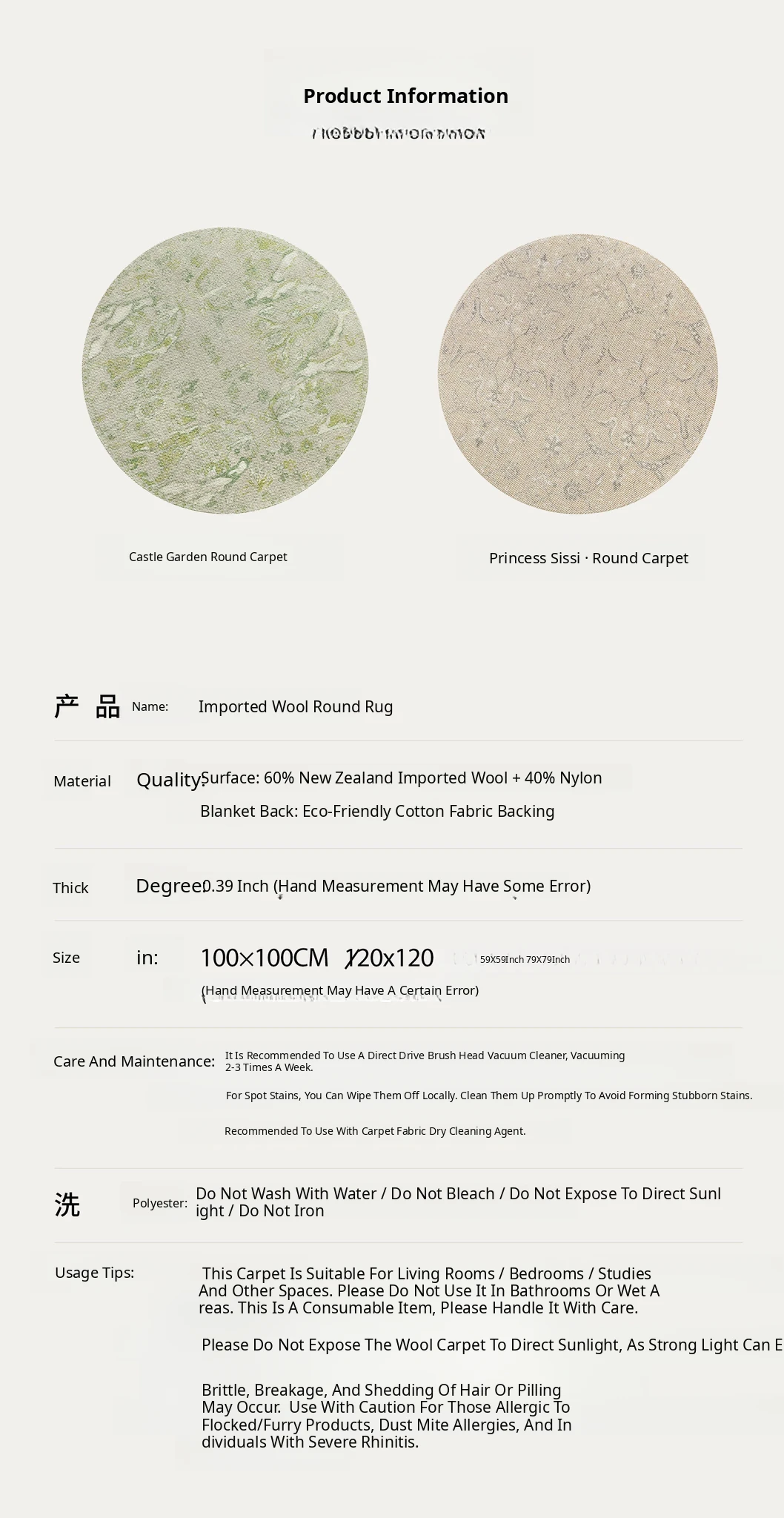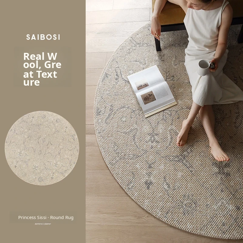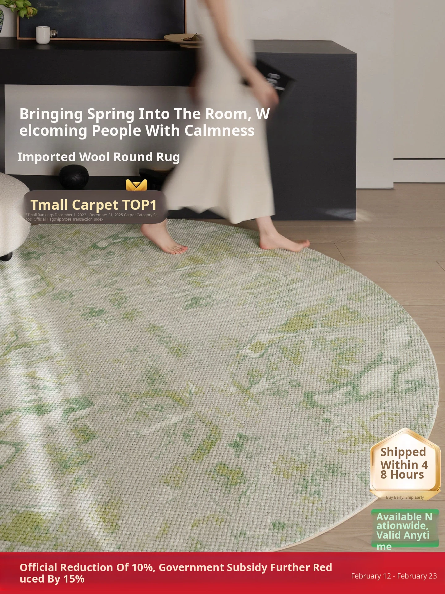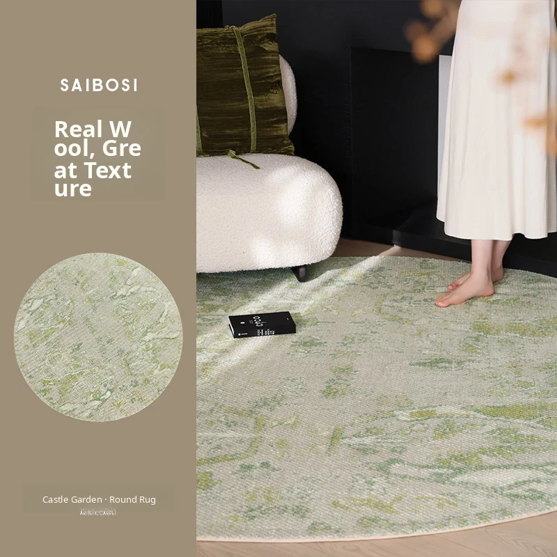 Imported Round Wool Carpet from Cypos Castle Garden - Luxurious French-Style Area Rug for Living Room and Bedroom, Perfect for Bedside Elegance