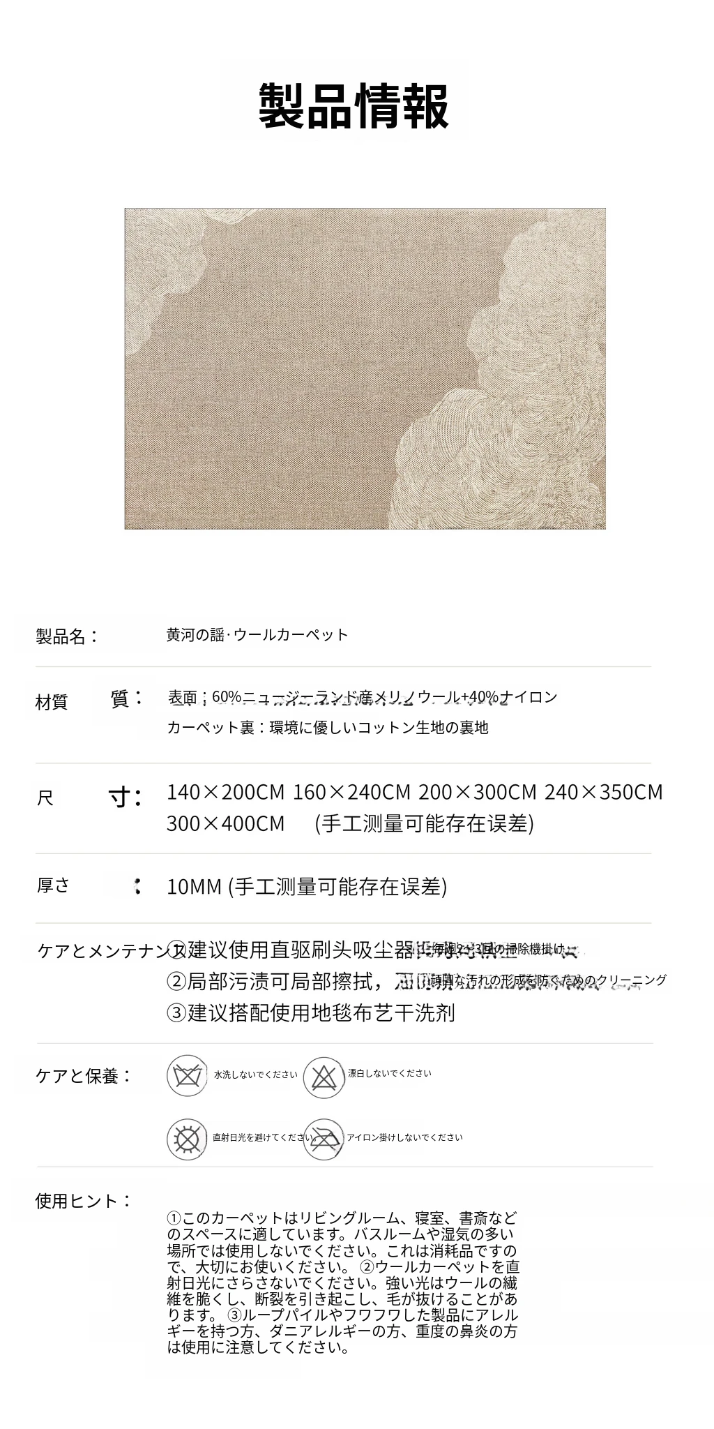 セイボス黄河谣シリーズ輸入ウールカーペット - リビングルームに最適な中華風軽奢スタイル、上質なソファや寝室にぴったり!