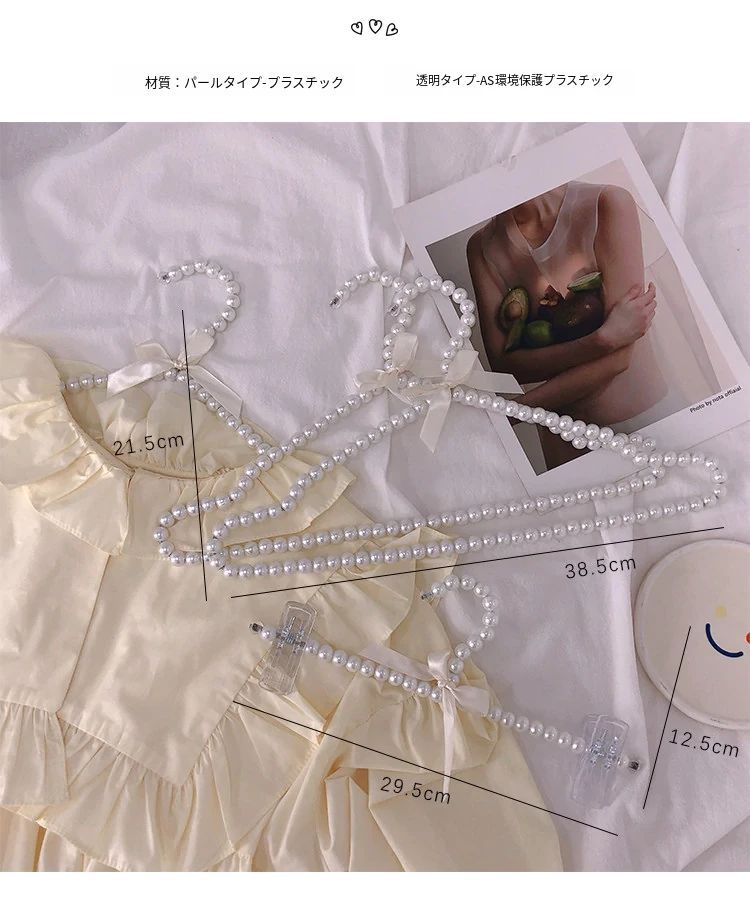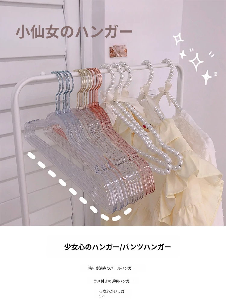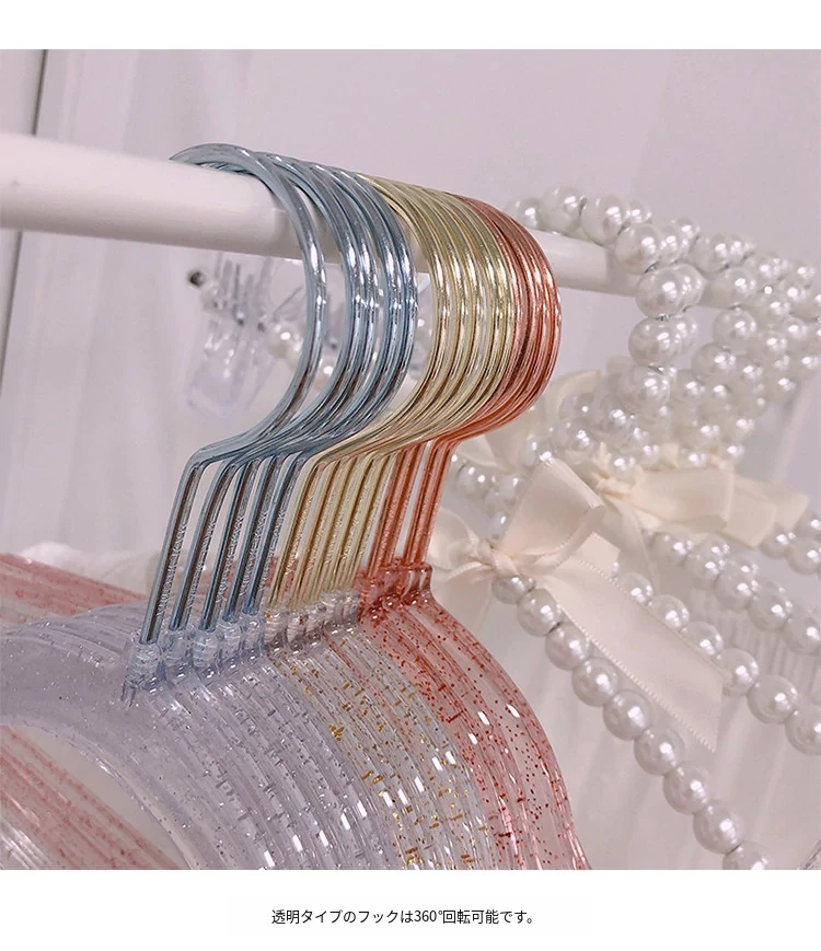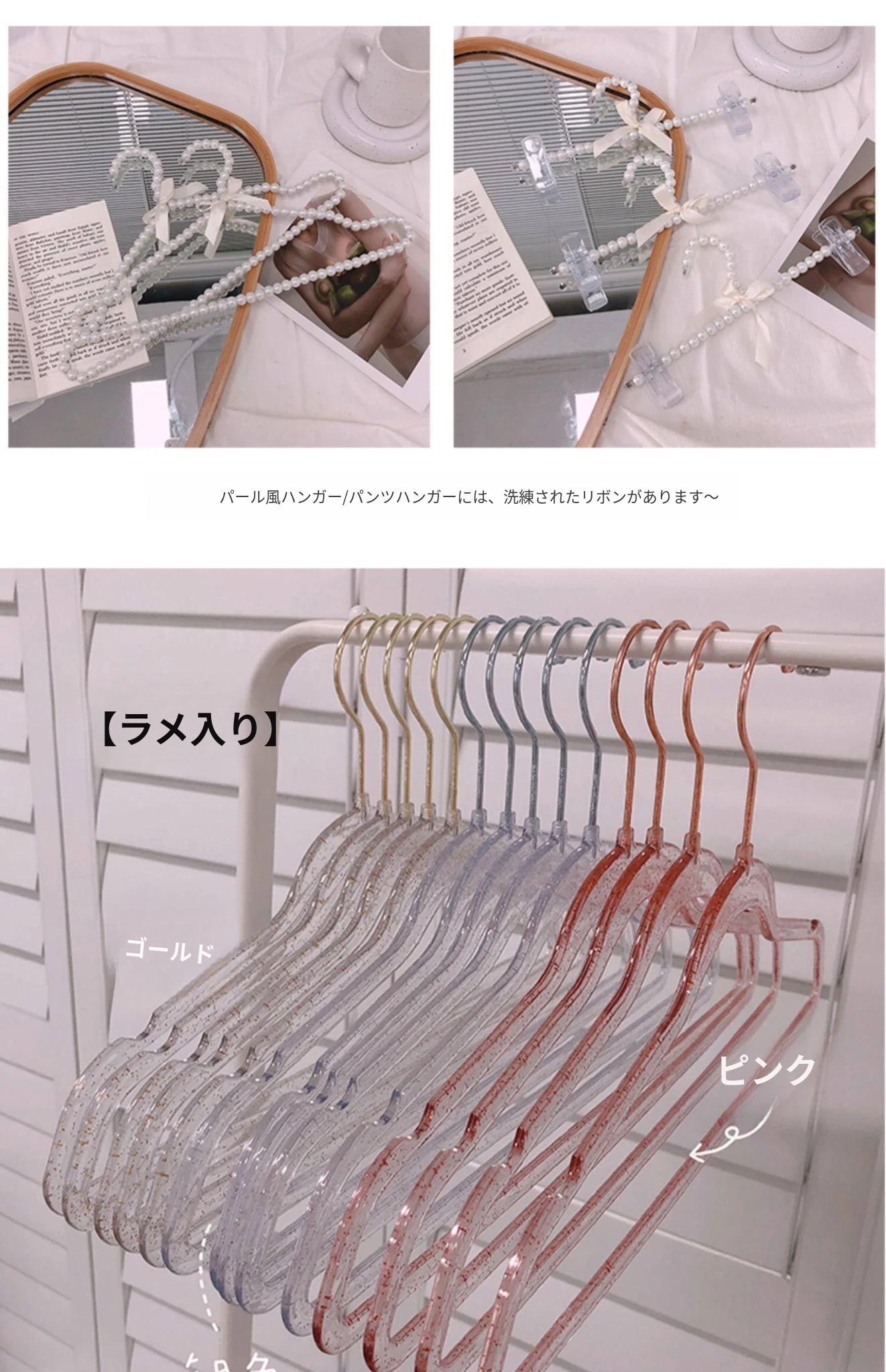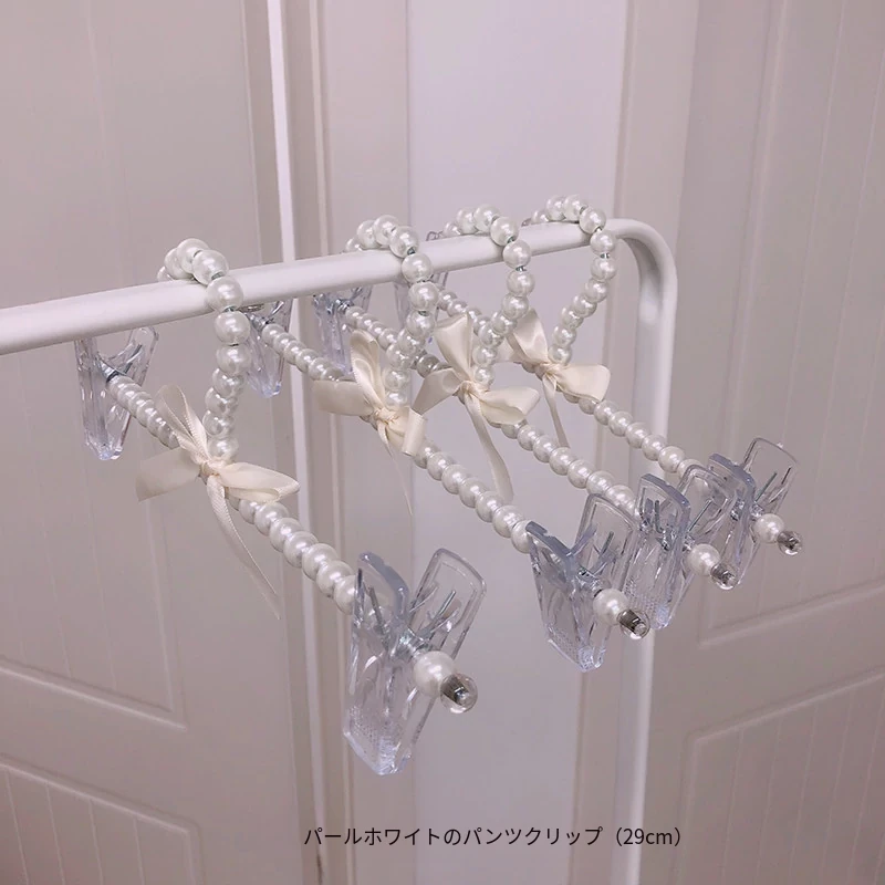 インスタ映え!少女心をくすぐるフェイクパールのキラキラハンガー - おしゃれな衣類収納&干し物サポート、パンツ用クリップ付き!お部屋を可愛く演出する必需品!