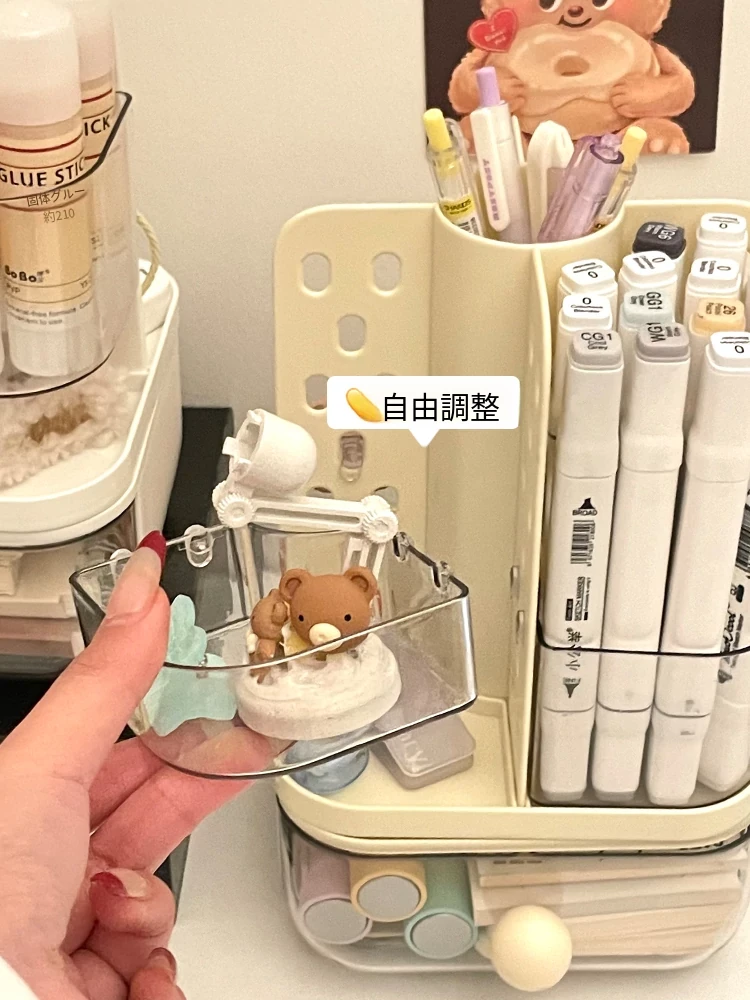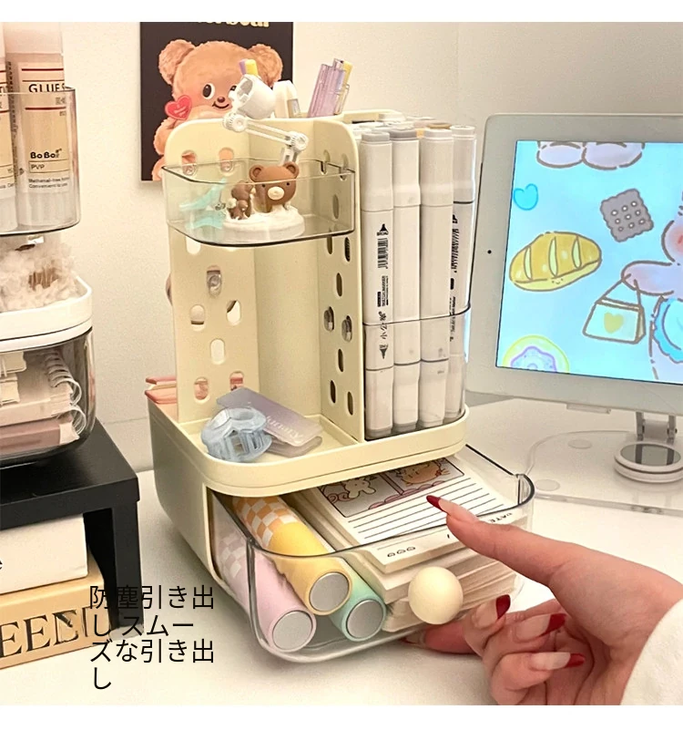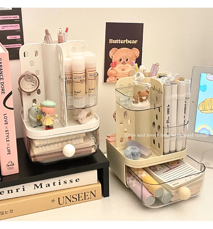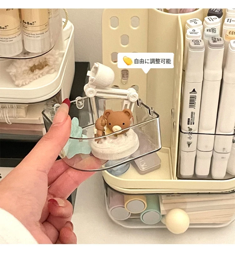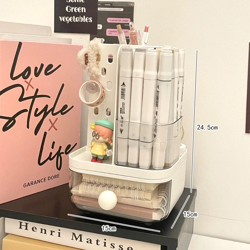 インスタ風デスク用回転収納ボックス - おしゃれな穴あきボード付き、文房具や雑貨をスッキリ整理!学生寮や書斎に最適な便利アイテム!