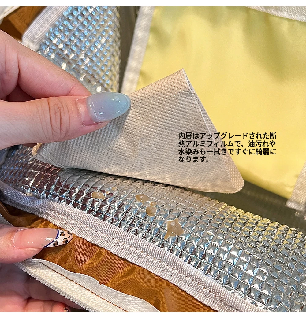 お弁当を持ち運びやすい!厚手アルミ箔のランチバッグ - 小学生や働く人に最適、長時間保温可能な便利なランチボックスバッグ!