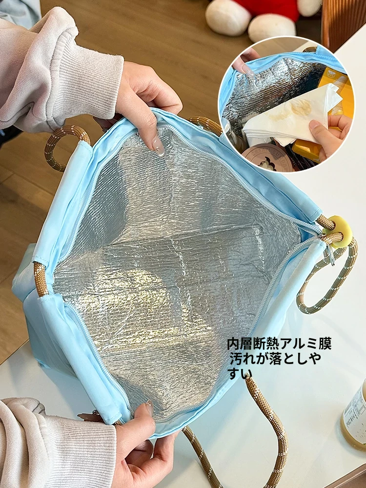 保温性抜群!大容量の手提げ弁当バッグ - 厚手アルミ箔使用で、通勤やオフィスにぴったりのショルダーバッグ!お弁当を美味しく保つ、スタイリッシュで実用的なアイテム!