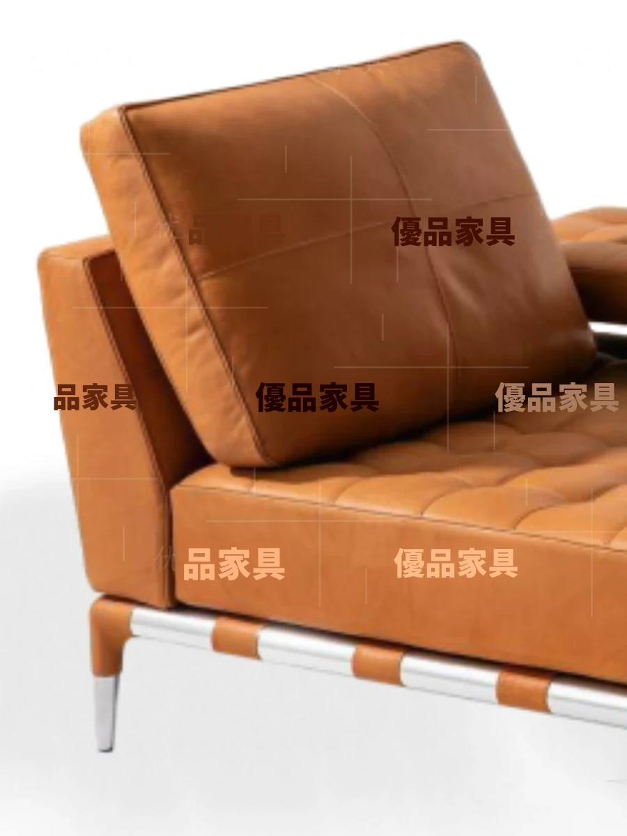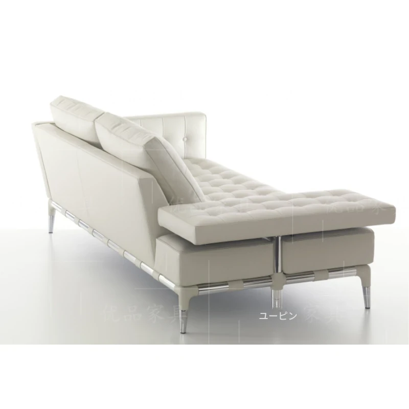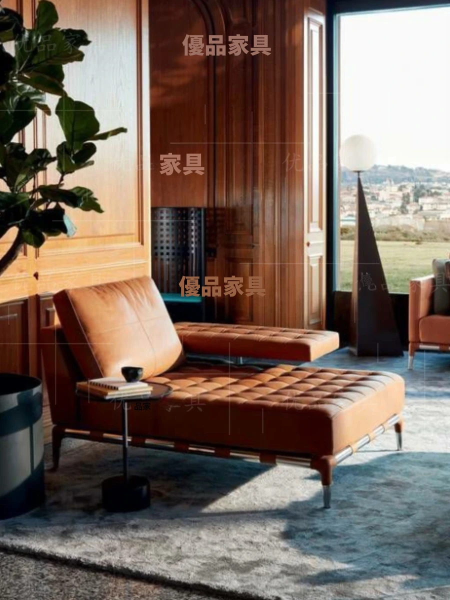 イタリアンシンプルデザインの高級レザーリクライニングソファ。手に優しいアーム付き、靴を履くための便利なベンチ。寝室やベッドサイドにぴったりのスタイリッシュなソファ。