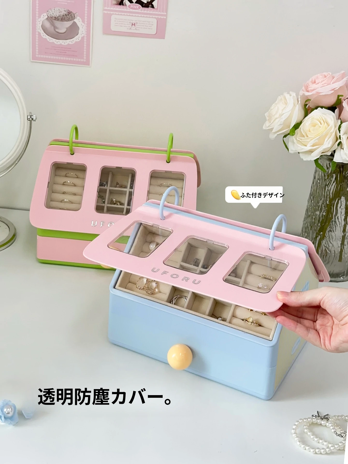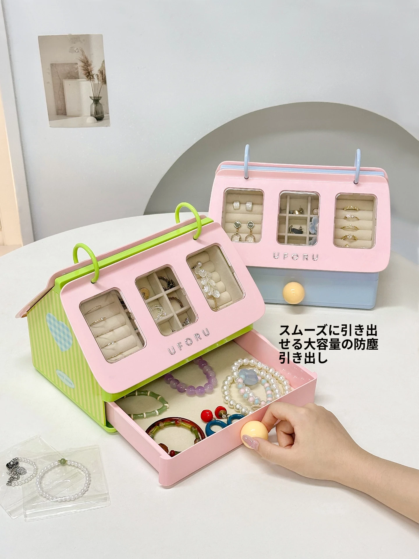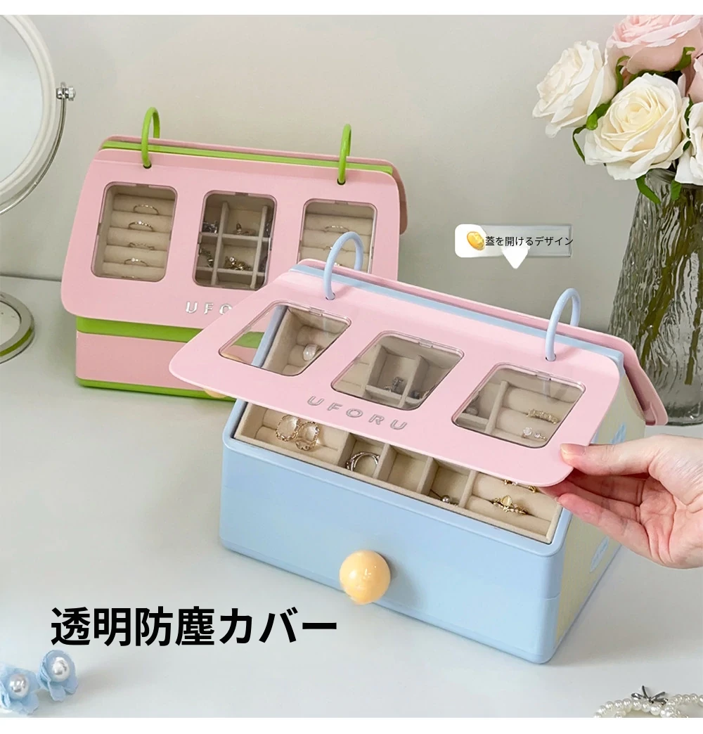 ジュエリーボックス - ピアス、イヤリング、リング、ブレスレット、ネックレスを美しく収納!ゴールドや宝石のアクセサリーを整理整頓する必需品。ヘアゴムやヘアピンもスッキリ収納!あなたの宝物を守る魔法の箱。