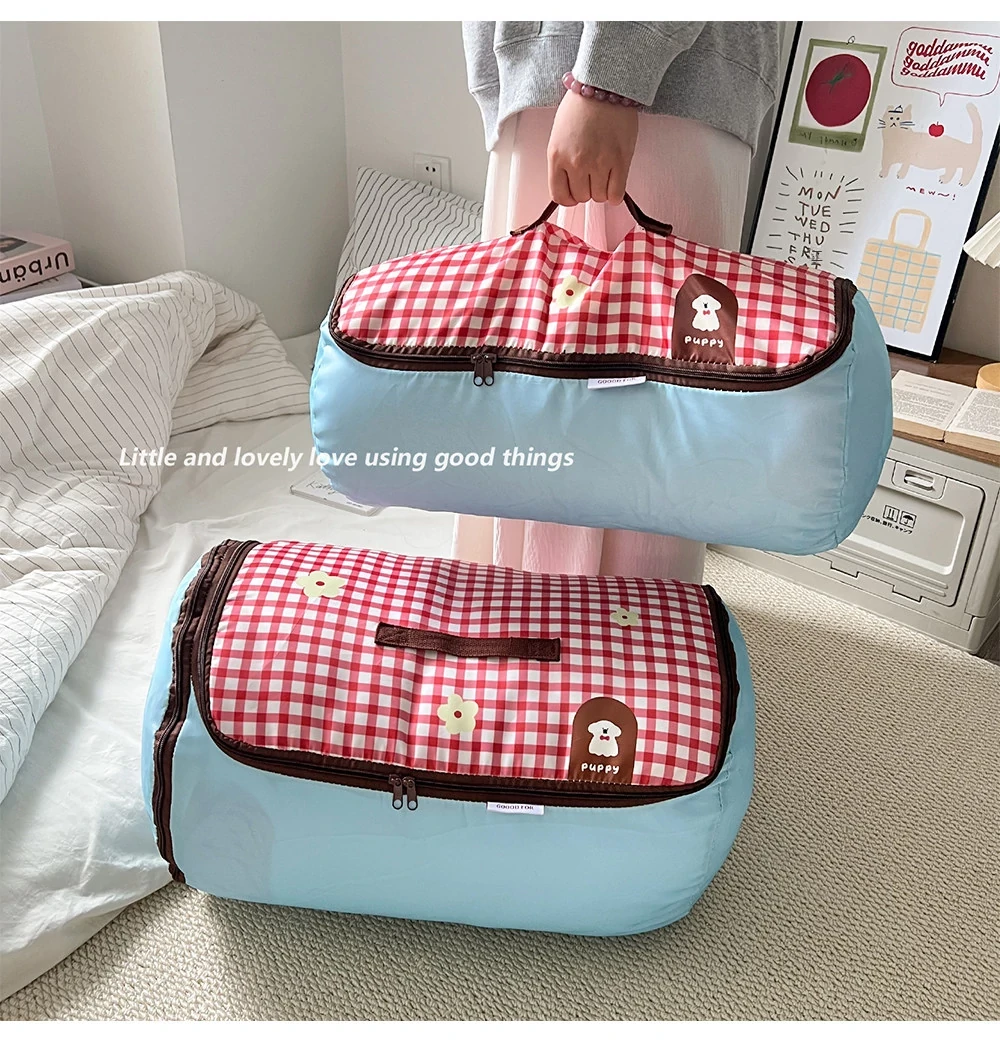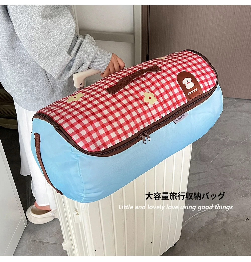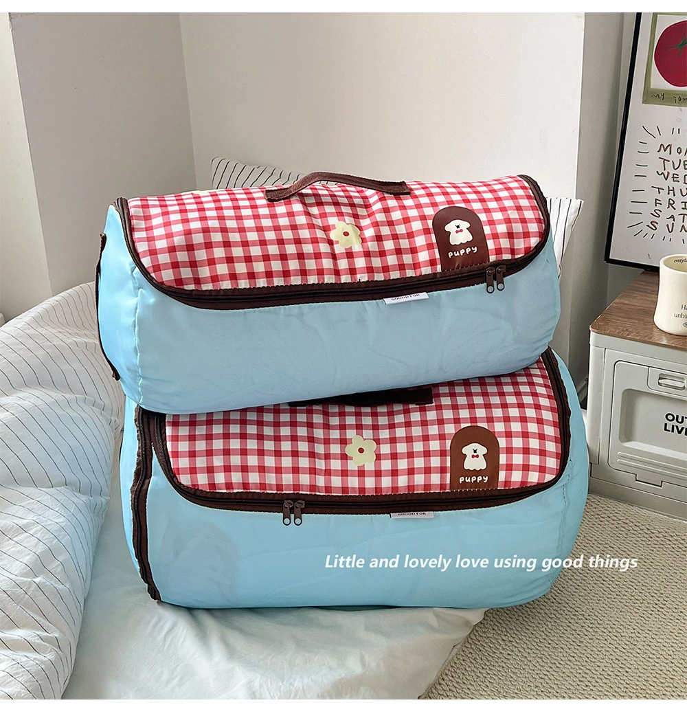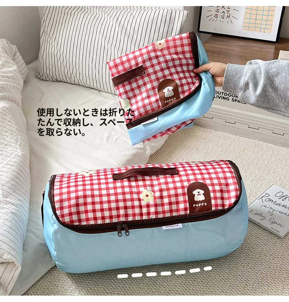 赤いチェックの小型犬【大】ジッパー付き圧縮可能