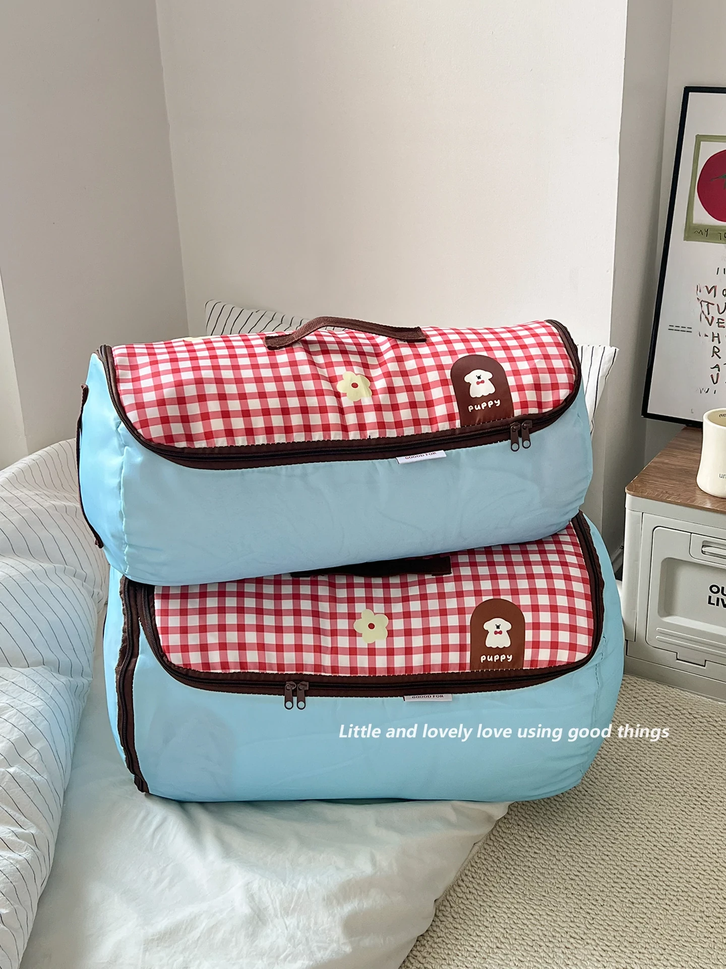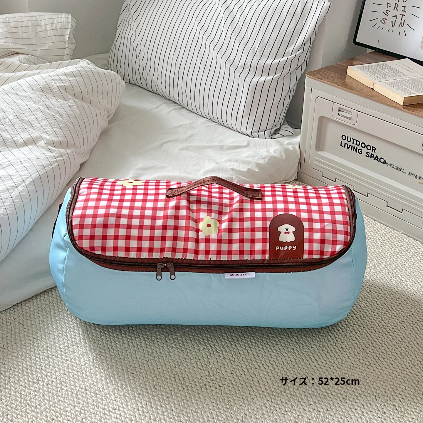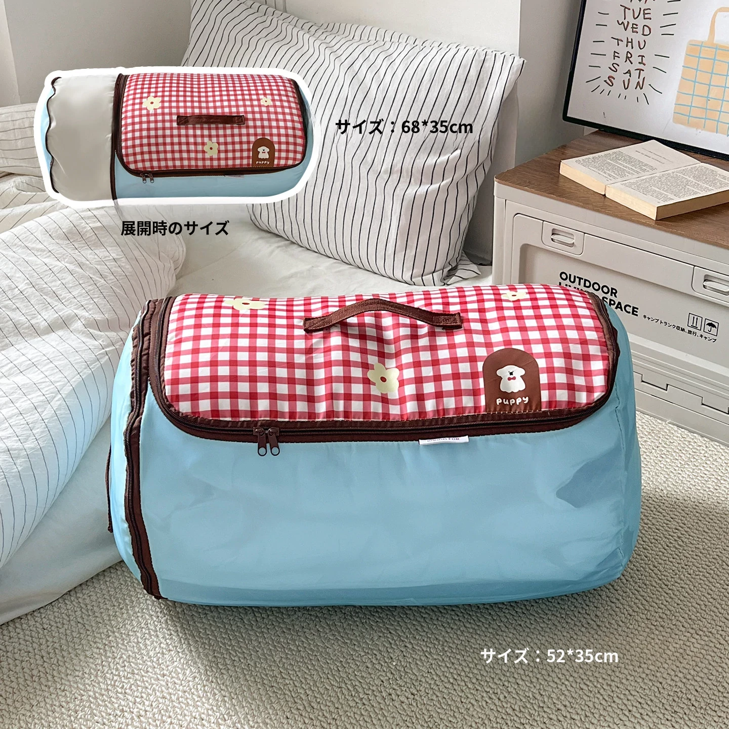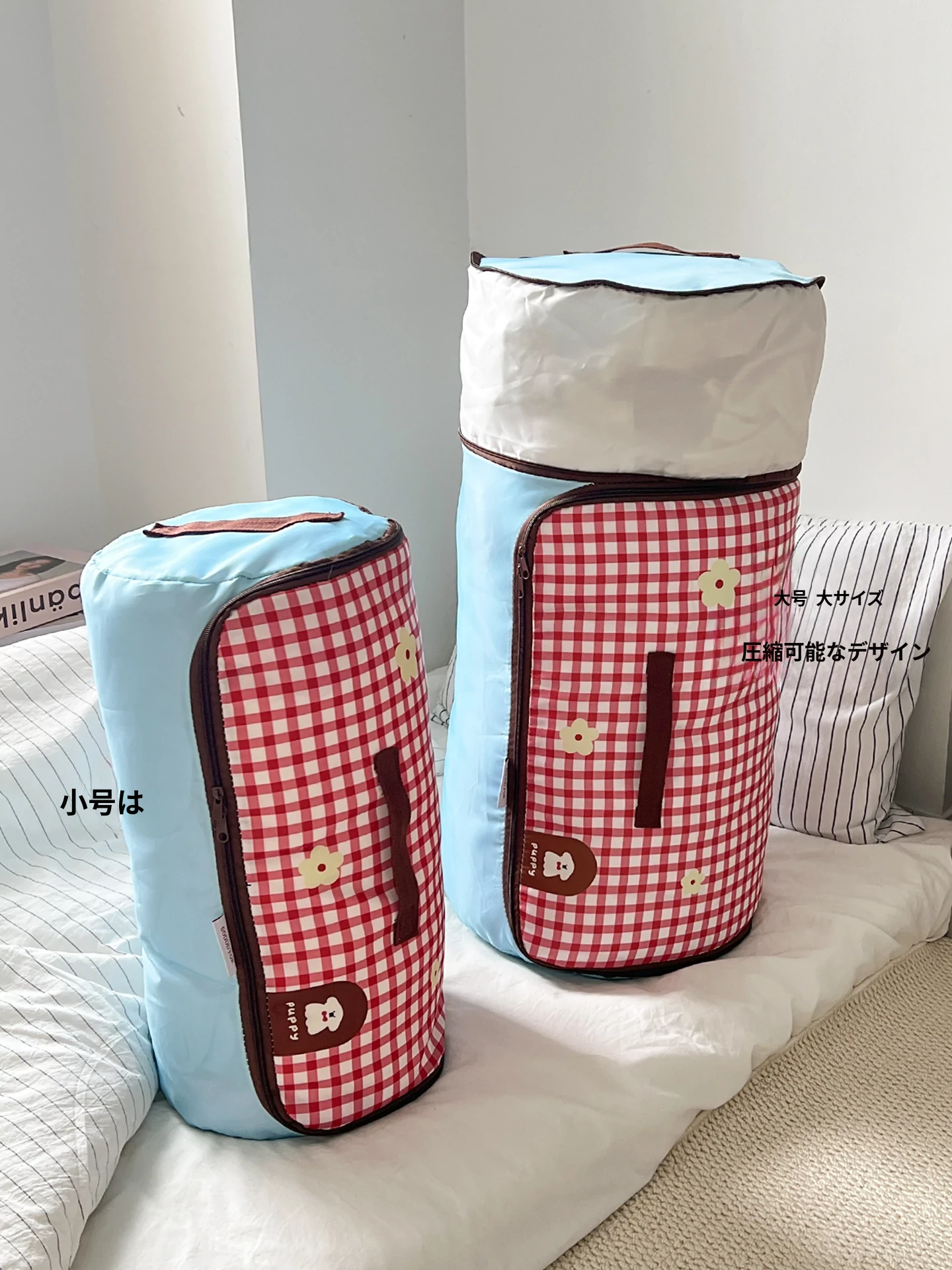 赤いチェックの小型犬【大】ジッパー付き圧縮可能