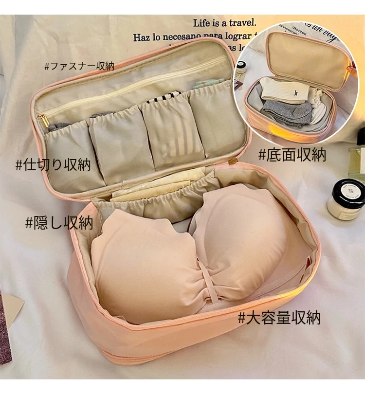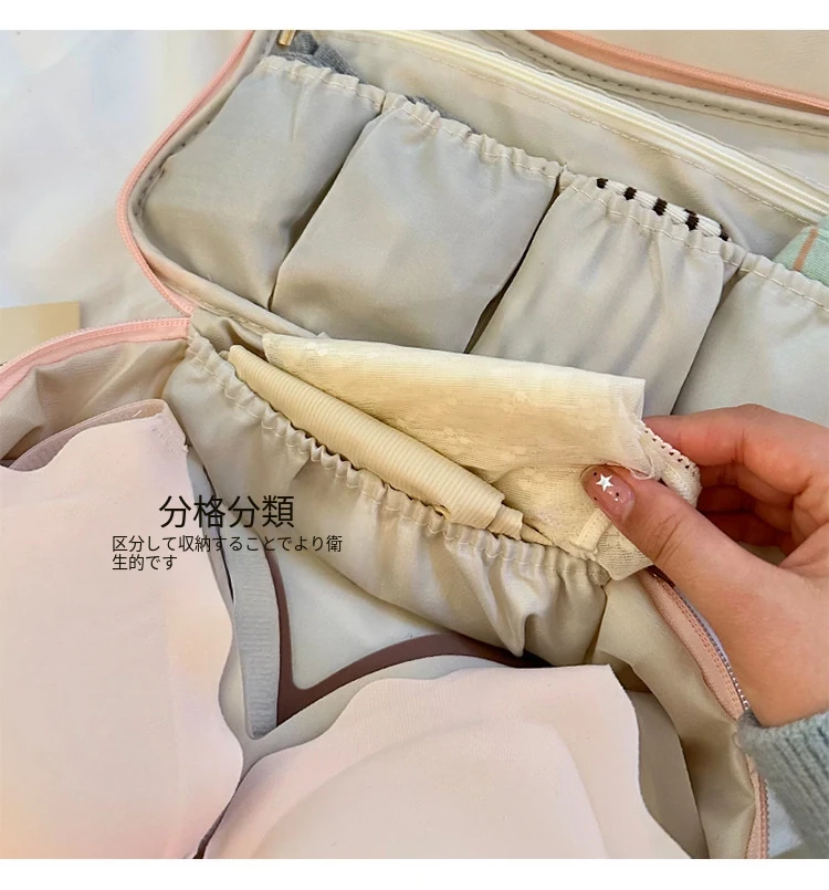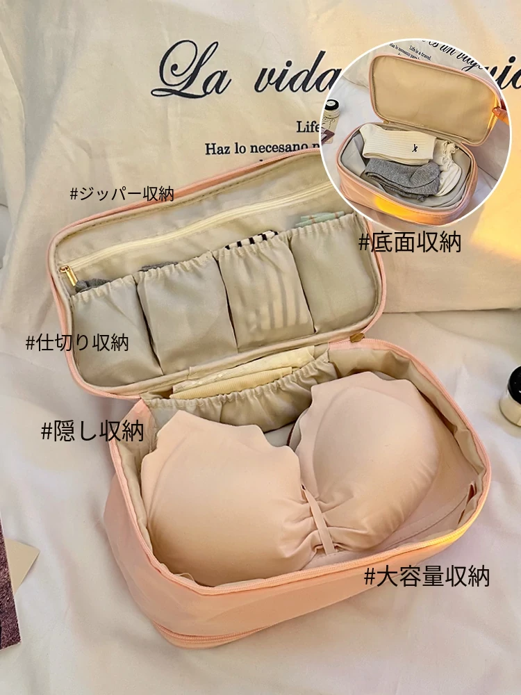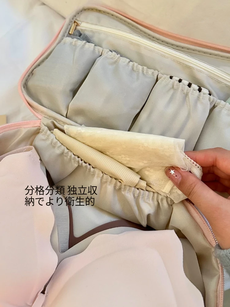 大容量旅行用内衣収納バッグ - 便利な手提げ式・多層分区デザインで靴下やパンツもスッキリ整理!出張や旅行に最適なスーツケースインサイドバッグ!
